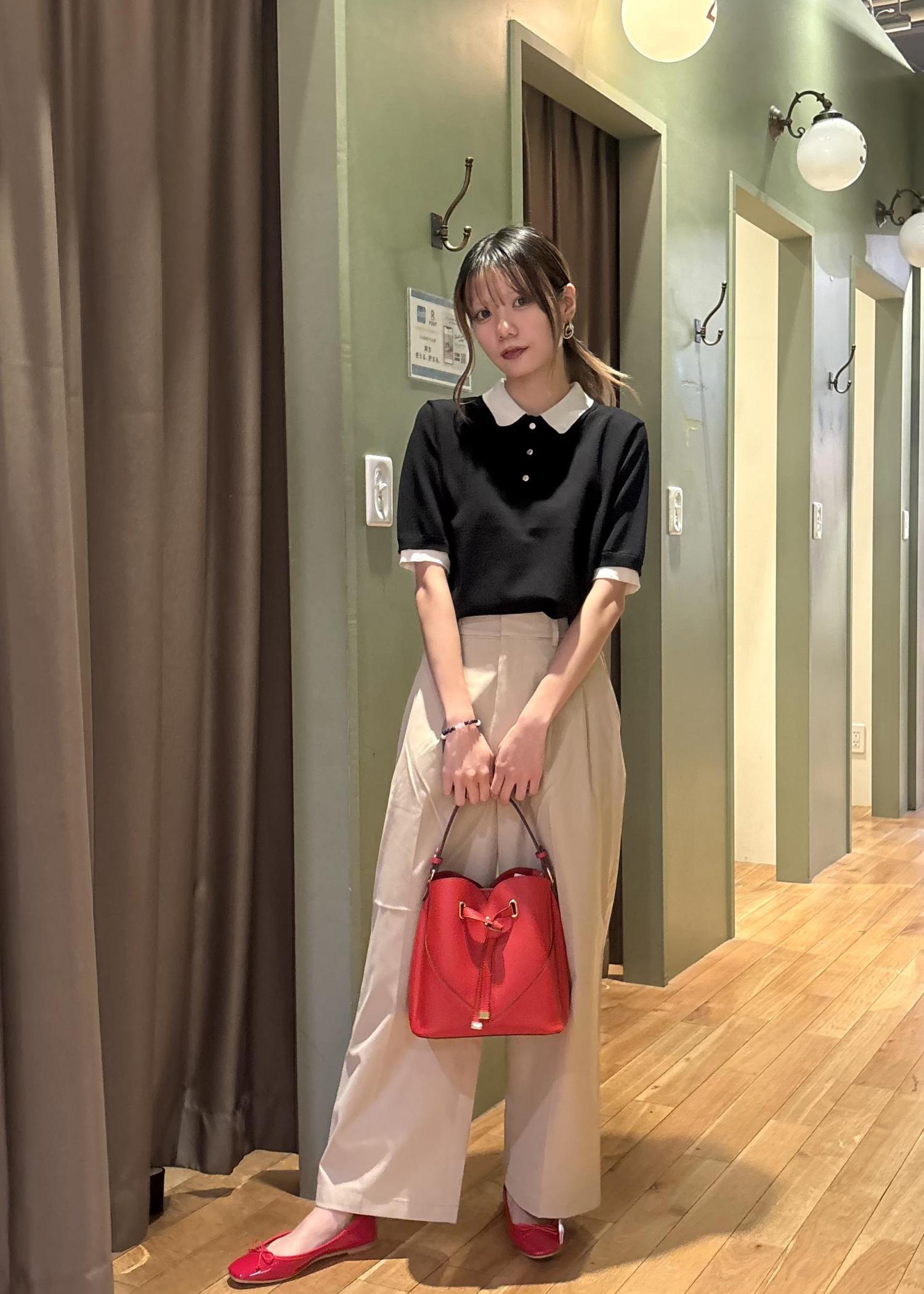 レイヤード風サマーニットポロは5色展開で自分に合った色味を見つけられ、様々なコーデを組むことができてオススメです✨