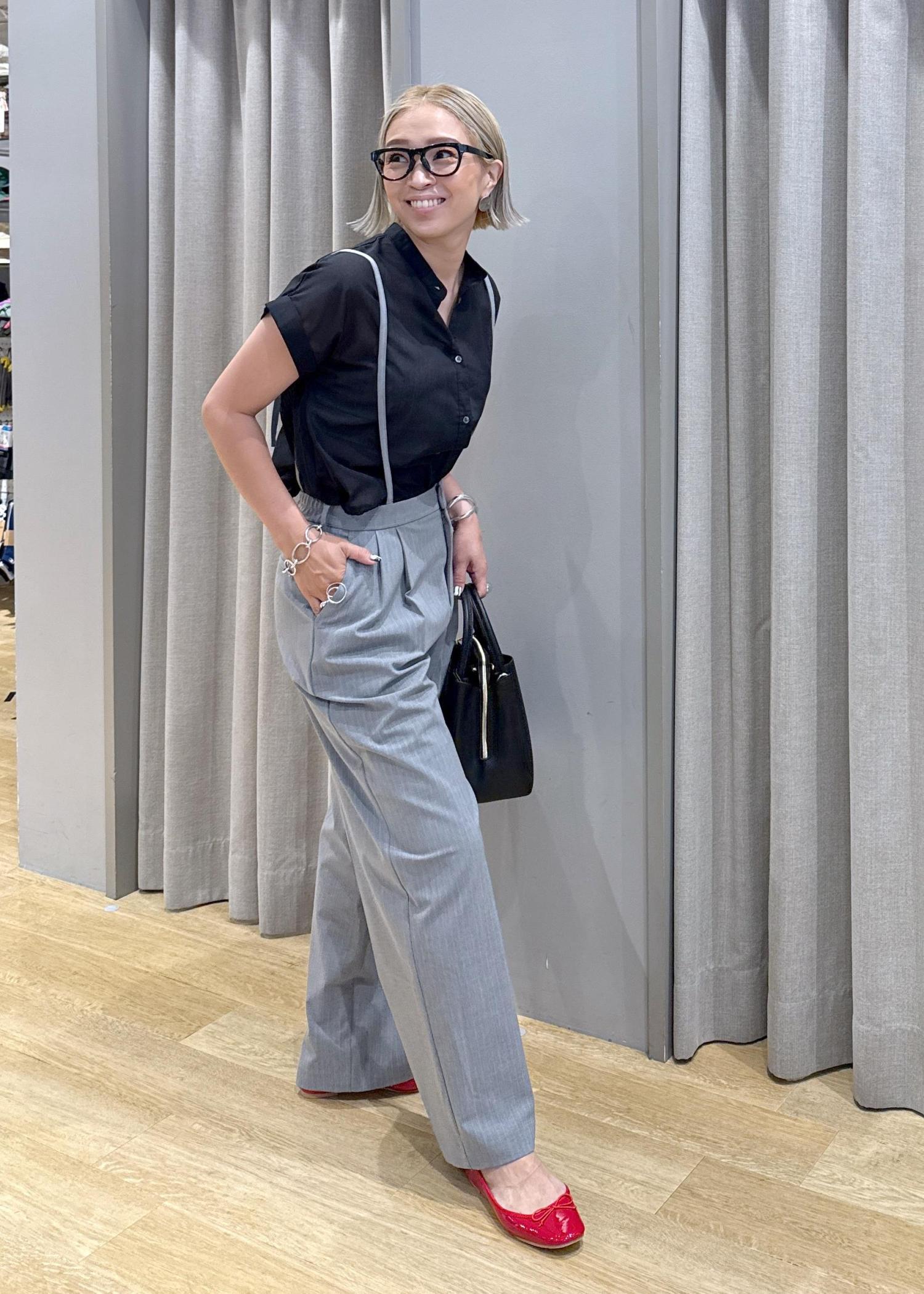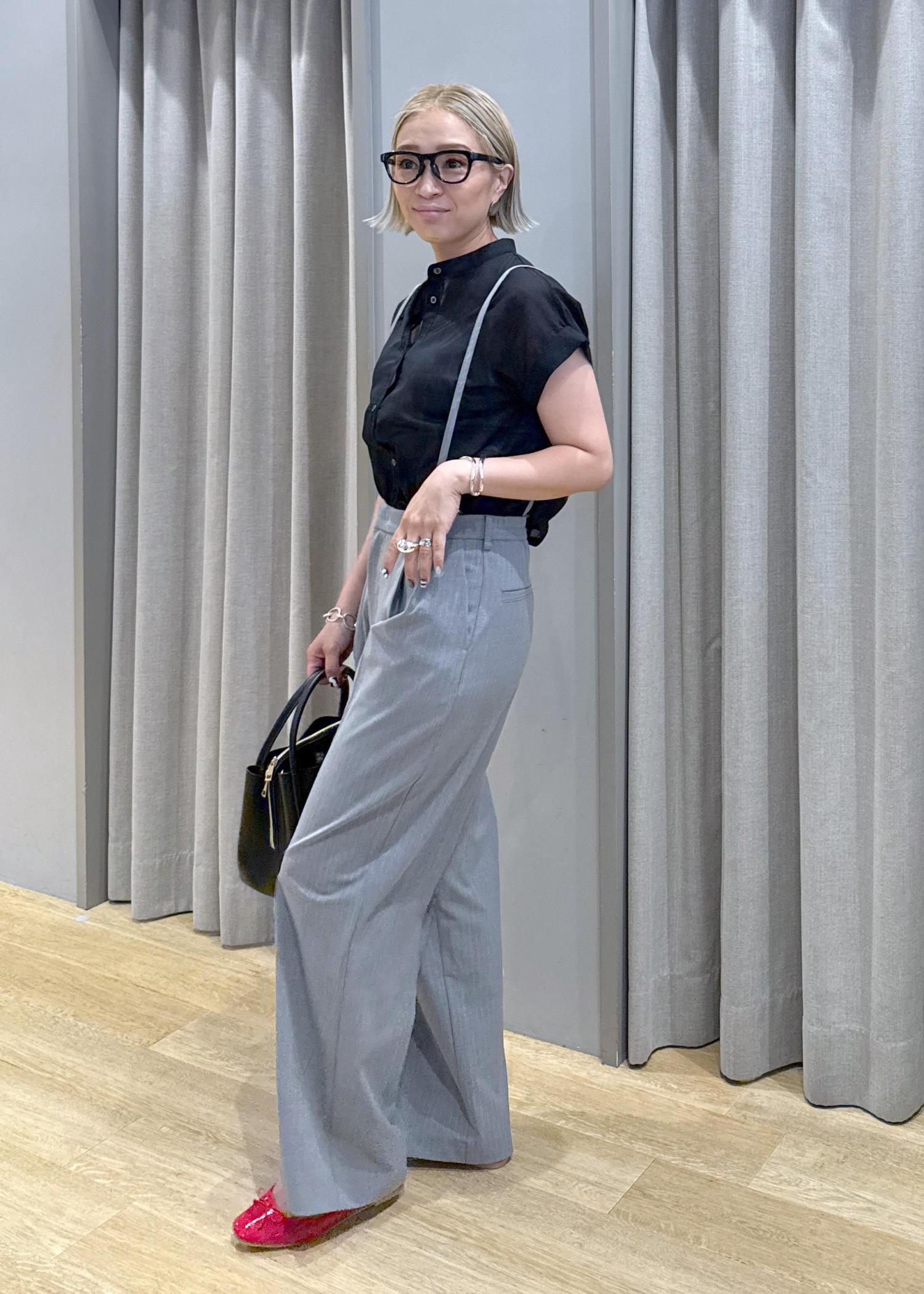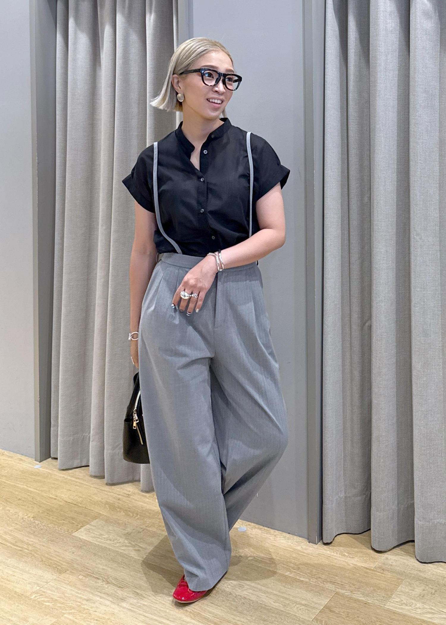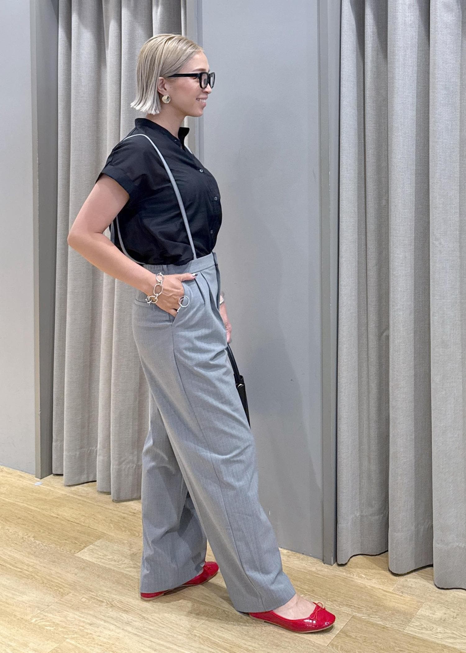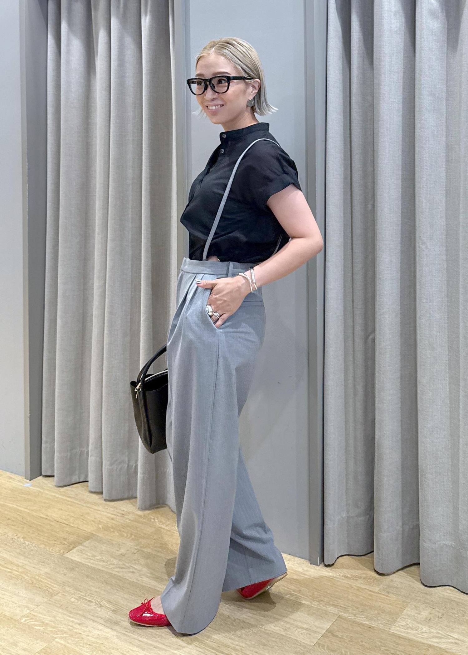 太ももからワイドシルエットなので、下半身の体型をカバーしてくれる柔らかい生地で