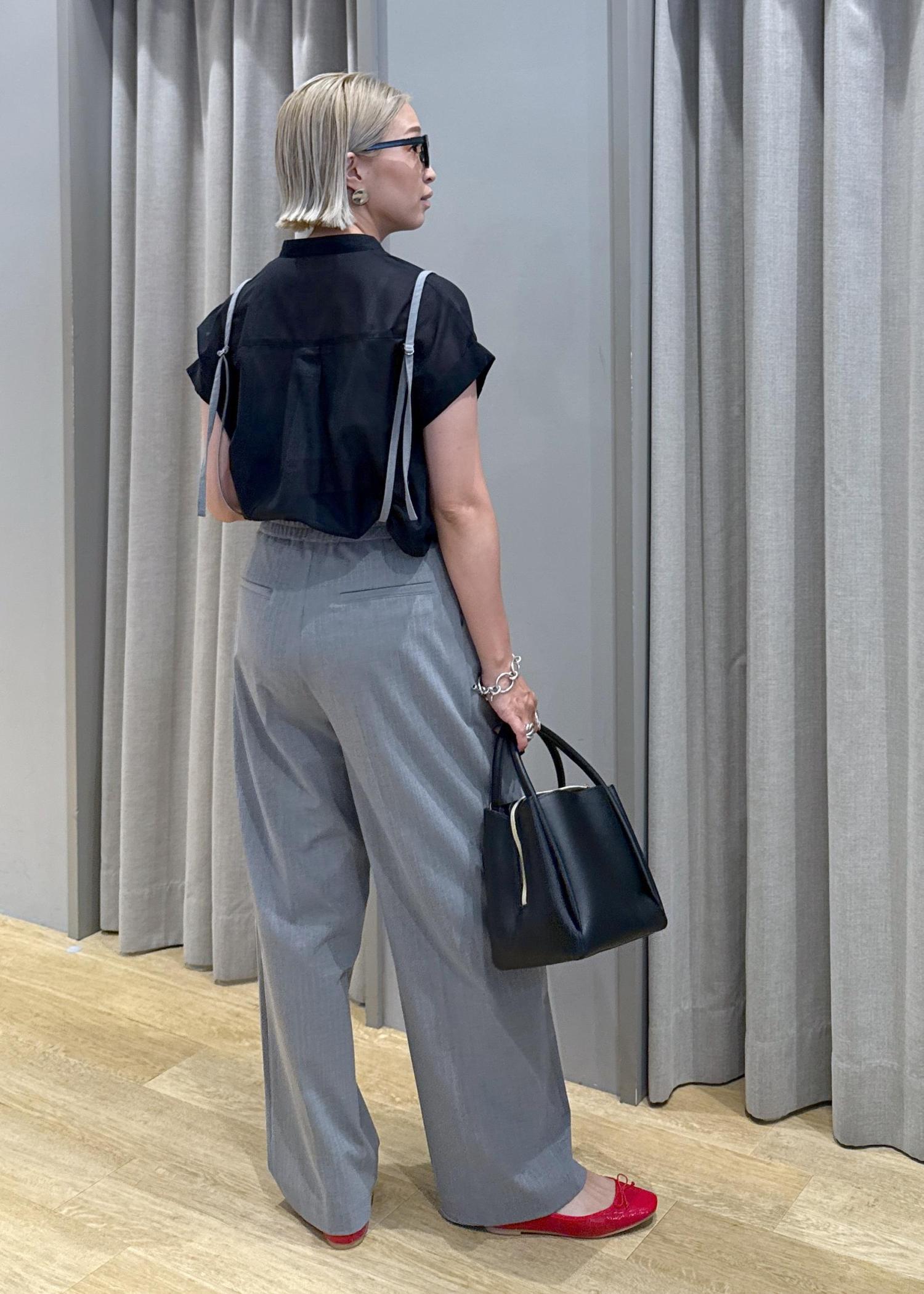 両サイドの内側に絞りが付いていて、絞るとコロンとしたシルエットと丈感をアレンジできます。
