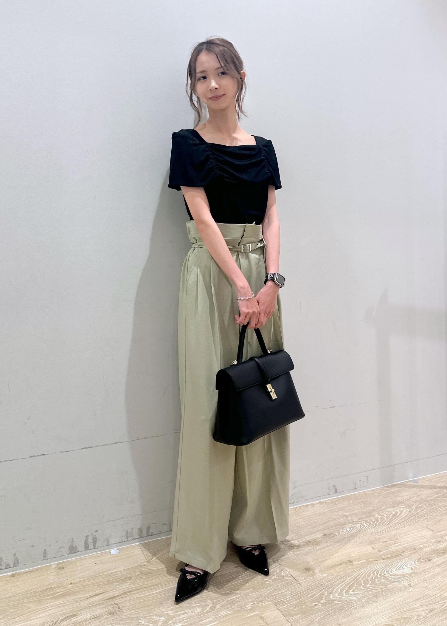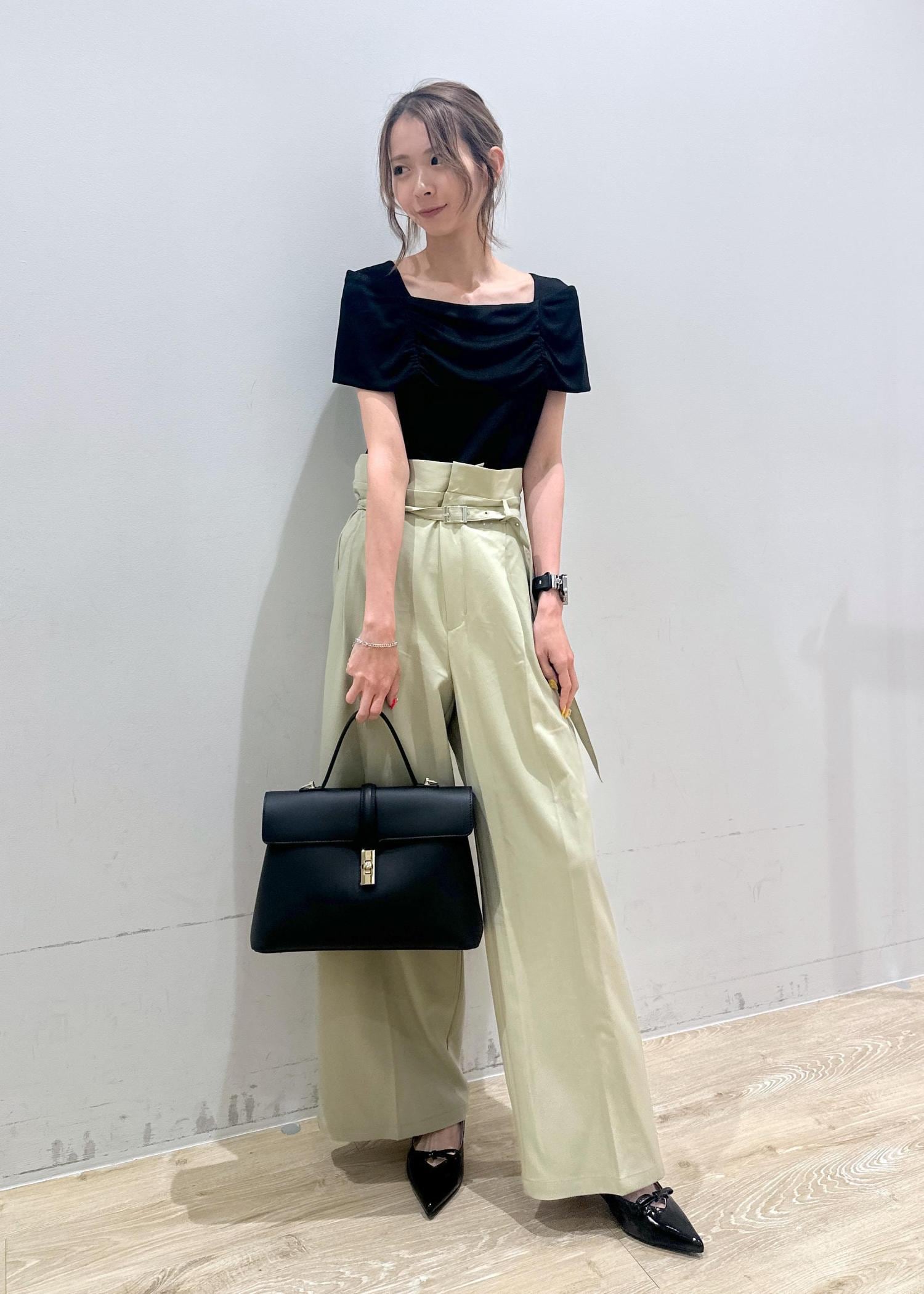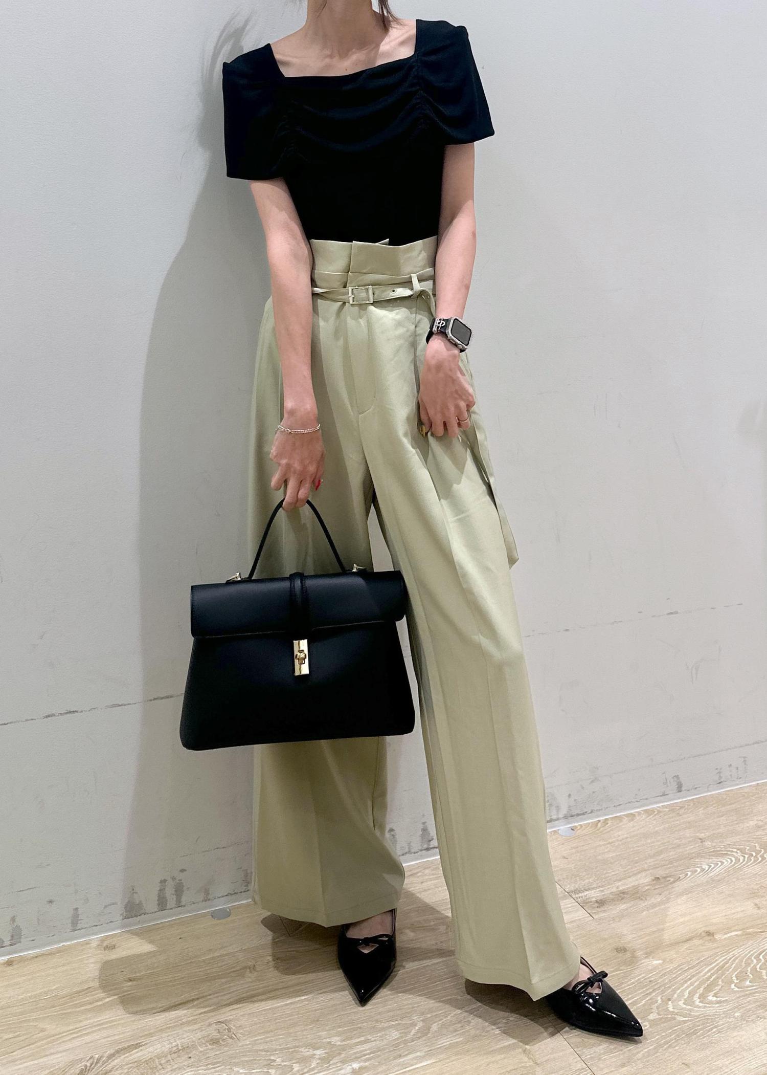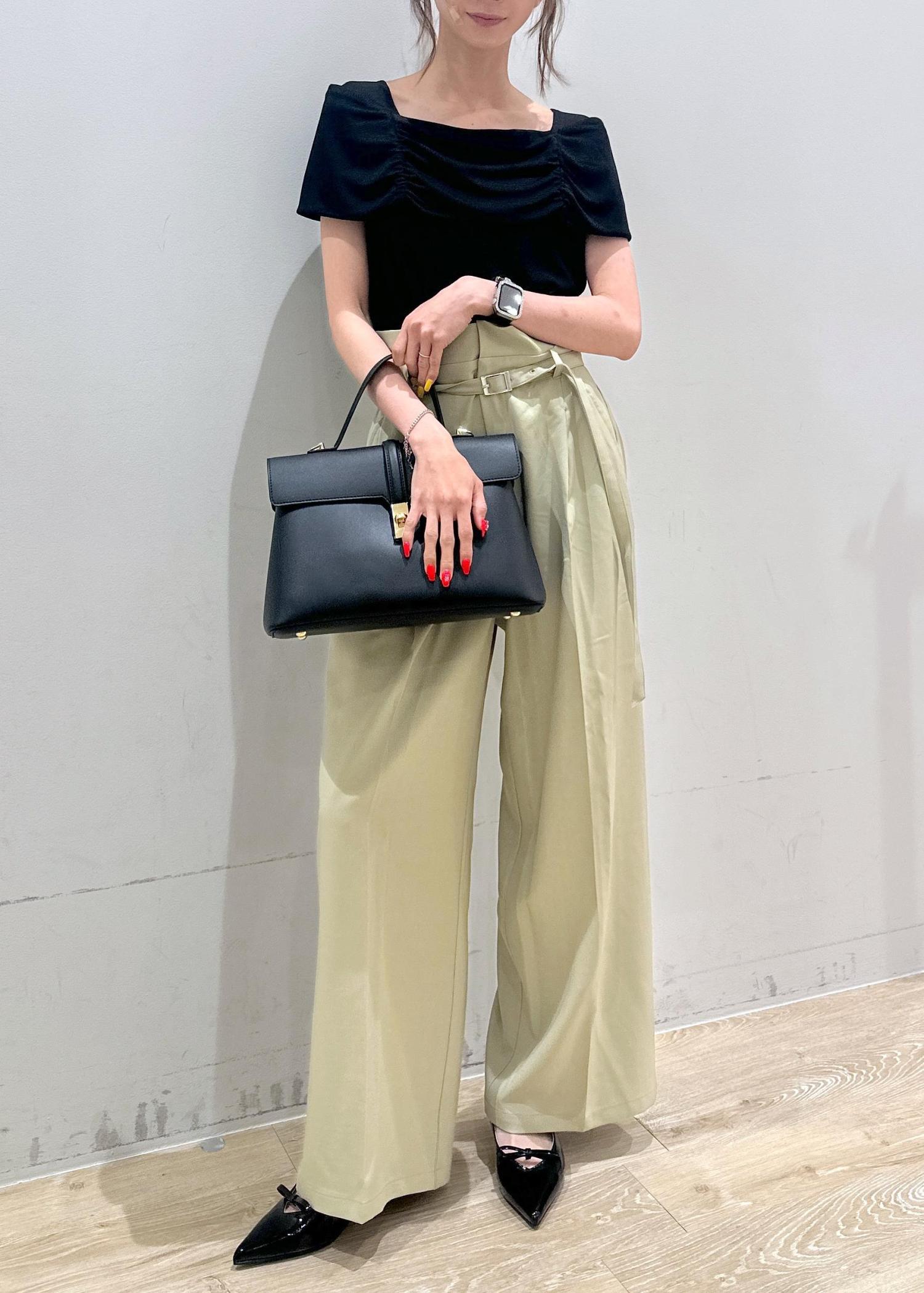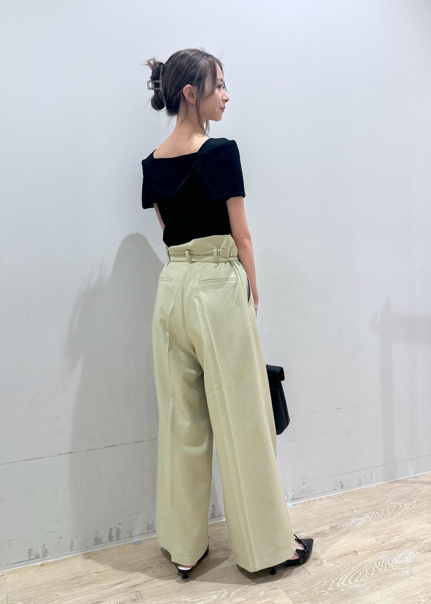 VIS【新色追加】【防シワ/接触冷感】ベルトディテールタックワイドスラックスパンツライトグリーン / S¥6,589レビュー形が綺麗なワイドパンツです