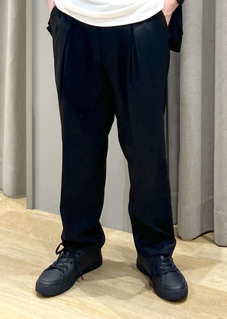 ストレッチの効いたリネン見えの素材で薄手で落ち感のあるキレイめの生地感が特徴。