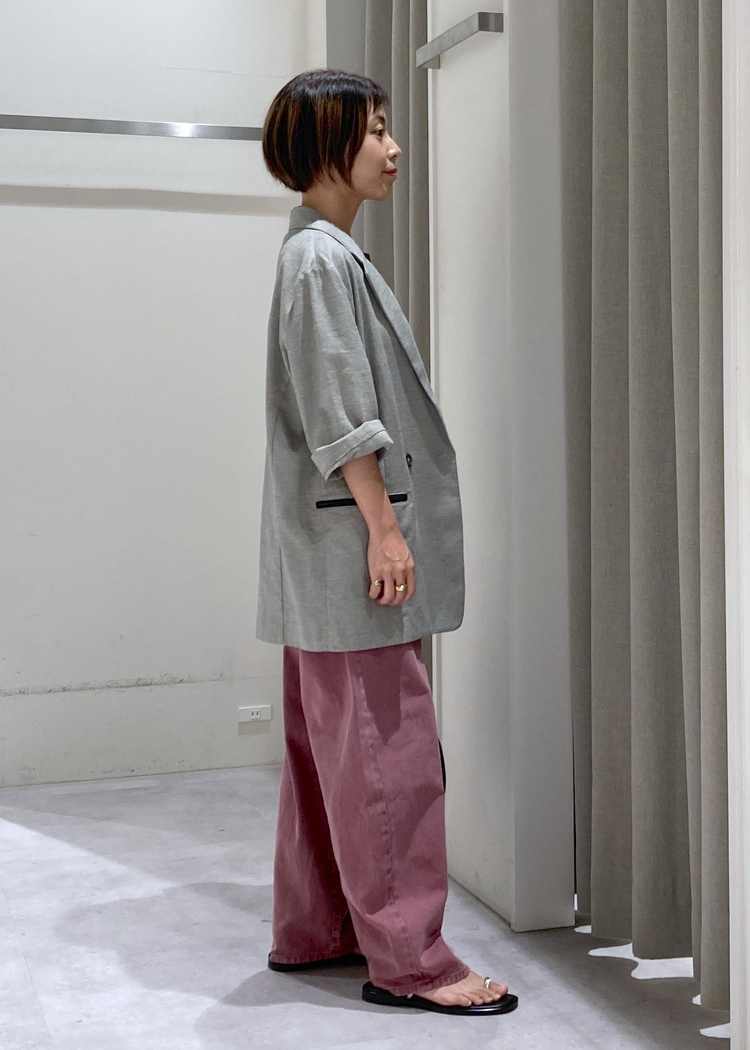 丈も長いので、155cm以下の身長の方は、お直しするか、ローフアップするかなど工夫もしくはクシャッとして履いてもらう必要があるかなと。