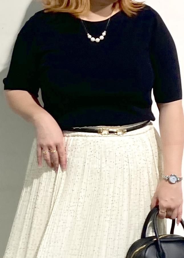 細ベルトなので、ひかえめなウエストマークがしやすいです。 -