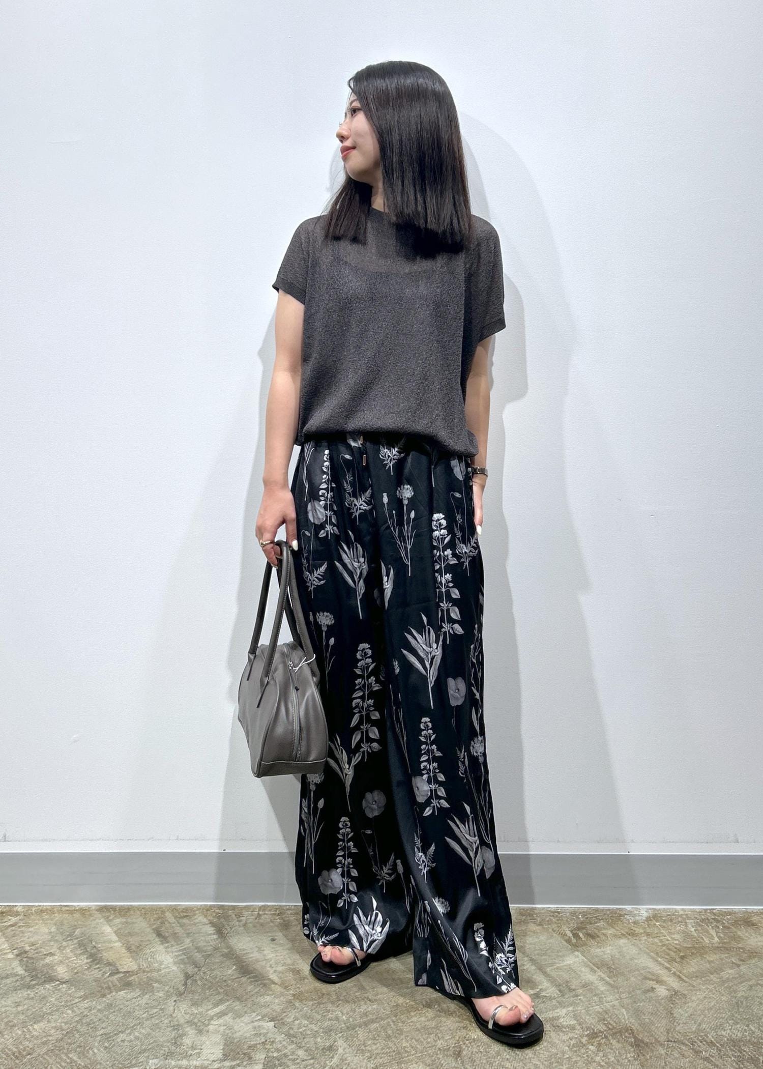 サマーニットにフラワープリントが着映えするイージーパンツを合わせたカジュアルコーディネートです!