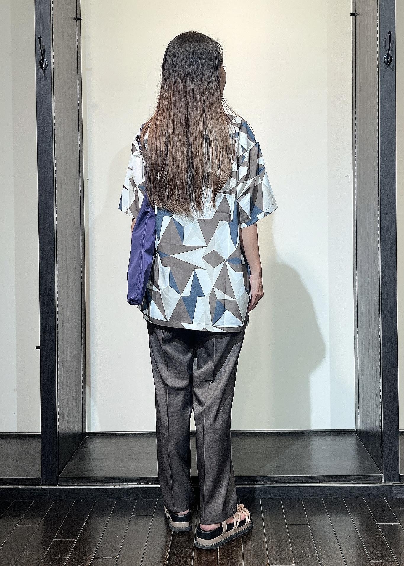 太すぎないワイドテーパードなパンツでシルエットがきれいです。