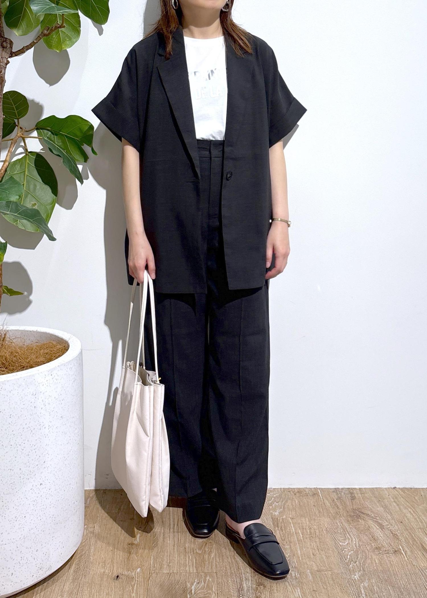 ジャケットとパンツどちらもチャコールカラーをリアルバイし、店頭でも着用率高めのお気に入りコーディネートです♩