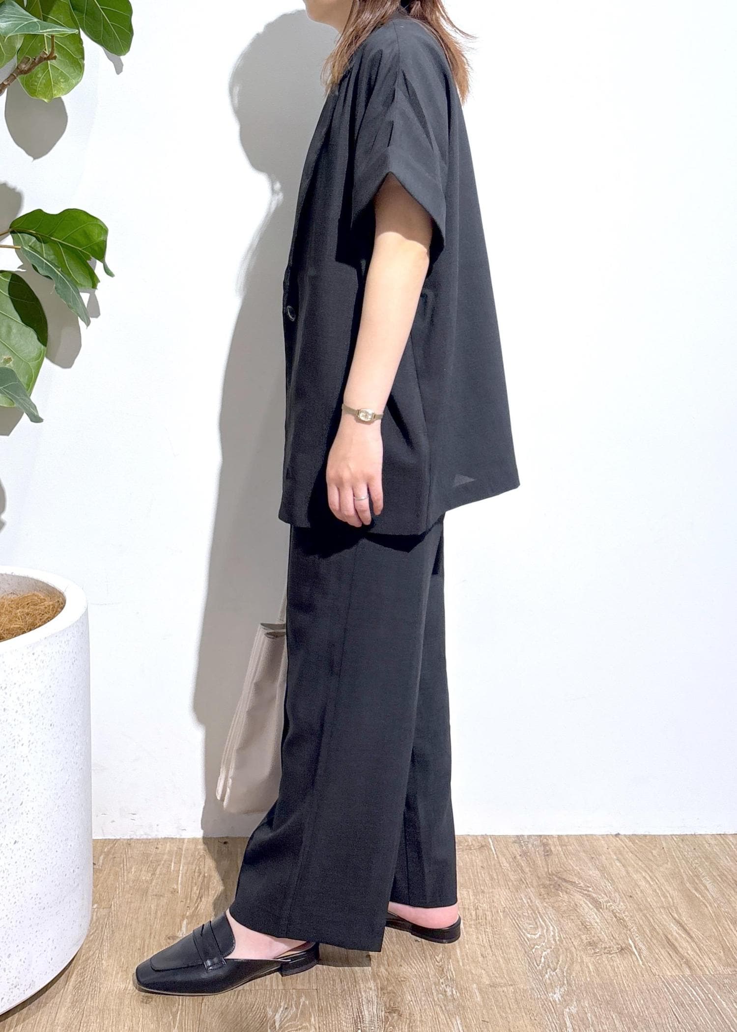 同シリーズのパンツもございますので、セットアップでのスタイリングもおすすめです。 -