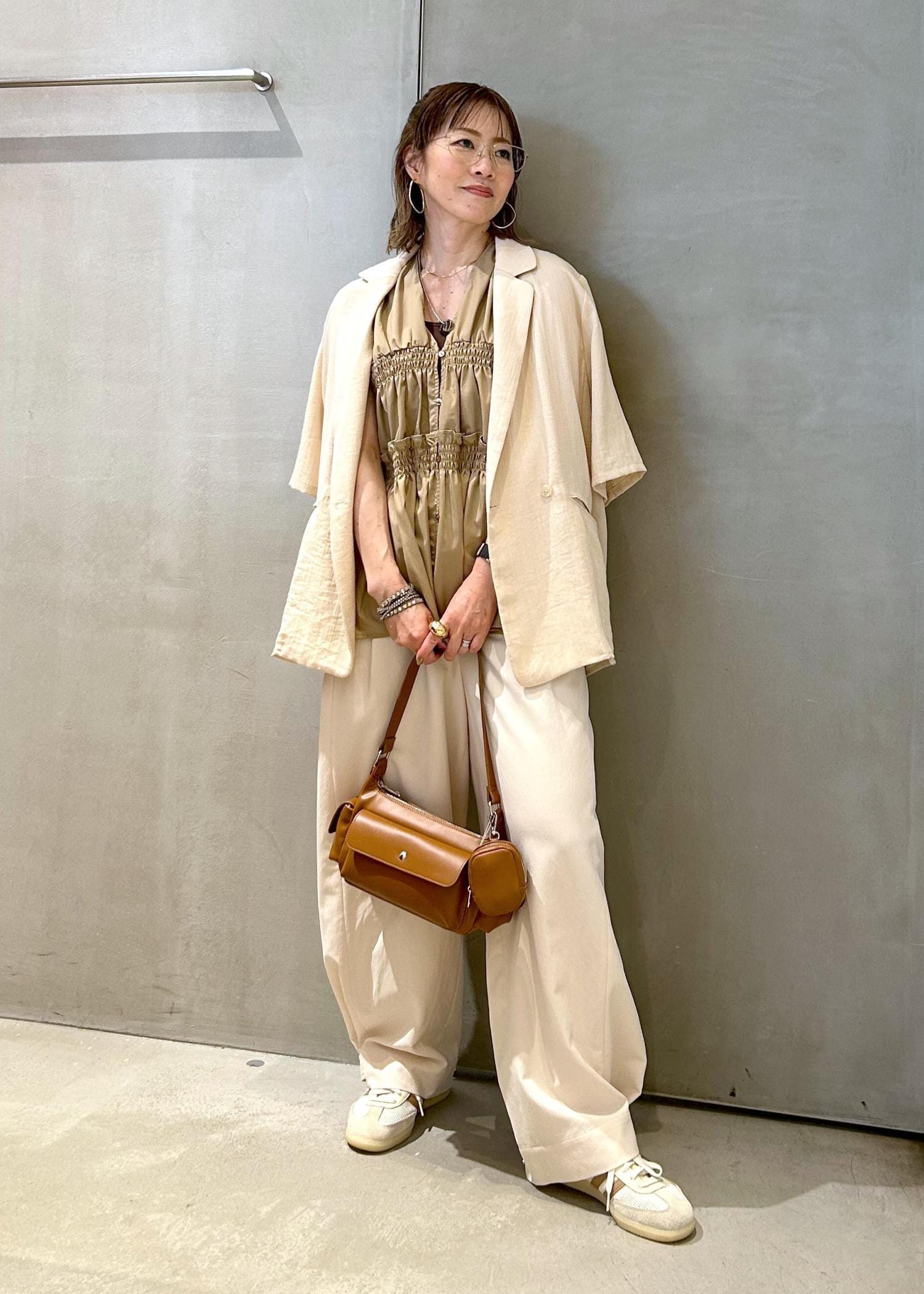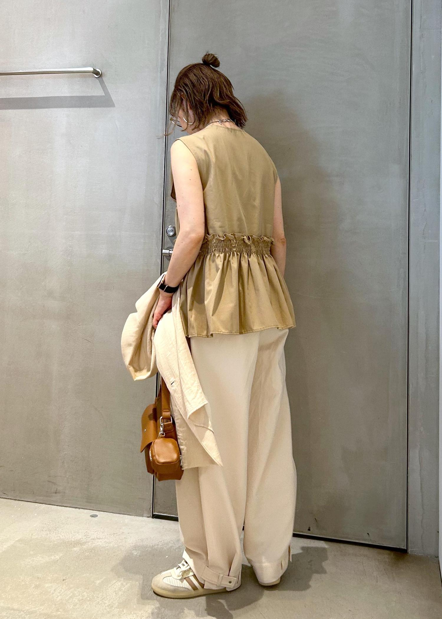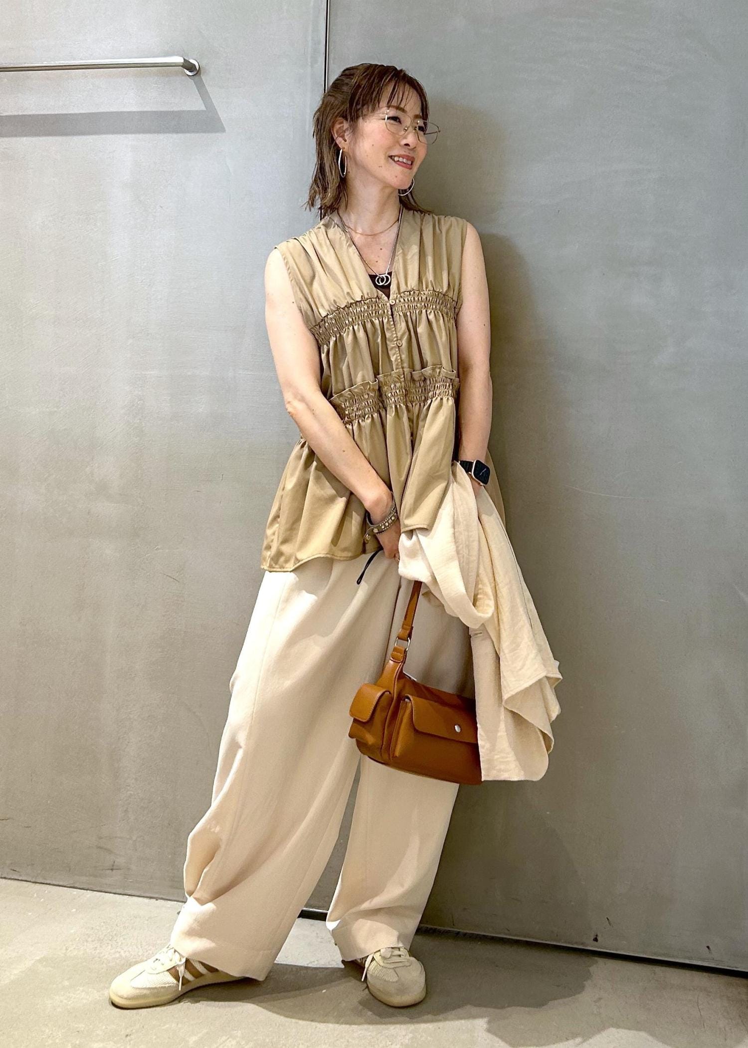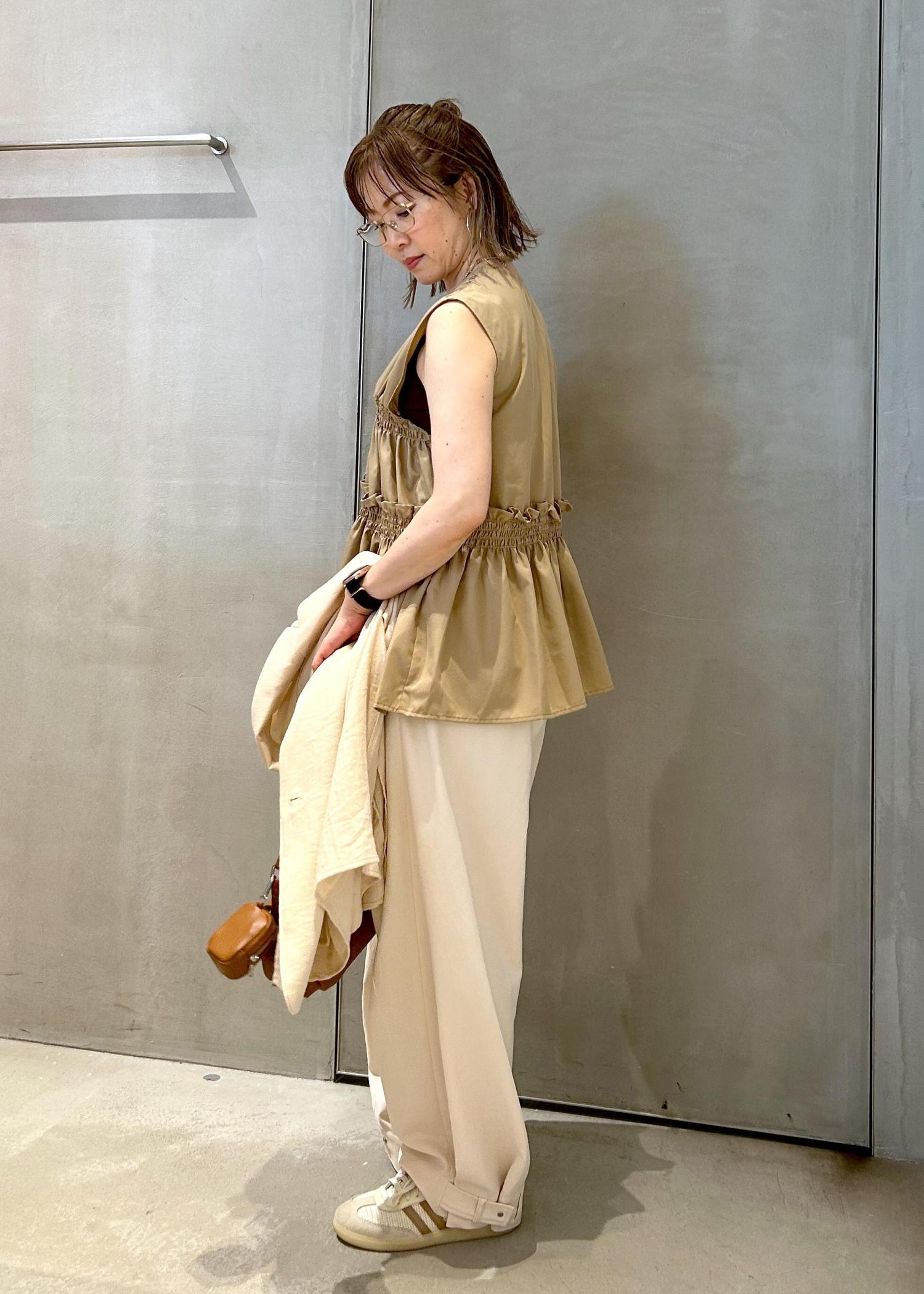 ジレのようにも着まわせる新作のシャツで、大好きなワントーンコーデにまとめました。
