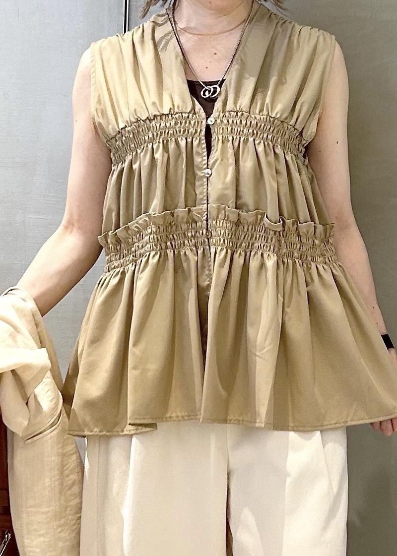 LE CERCLE par ropéフリルギャザーシャツベージュ / F¥7,150レビューシャーリングと細かいフリルがポイント。