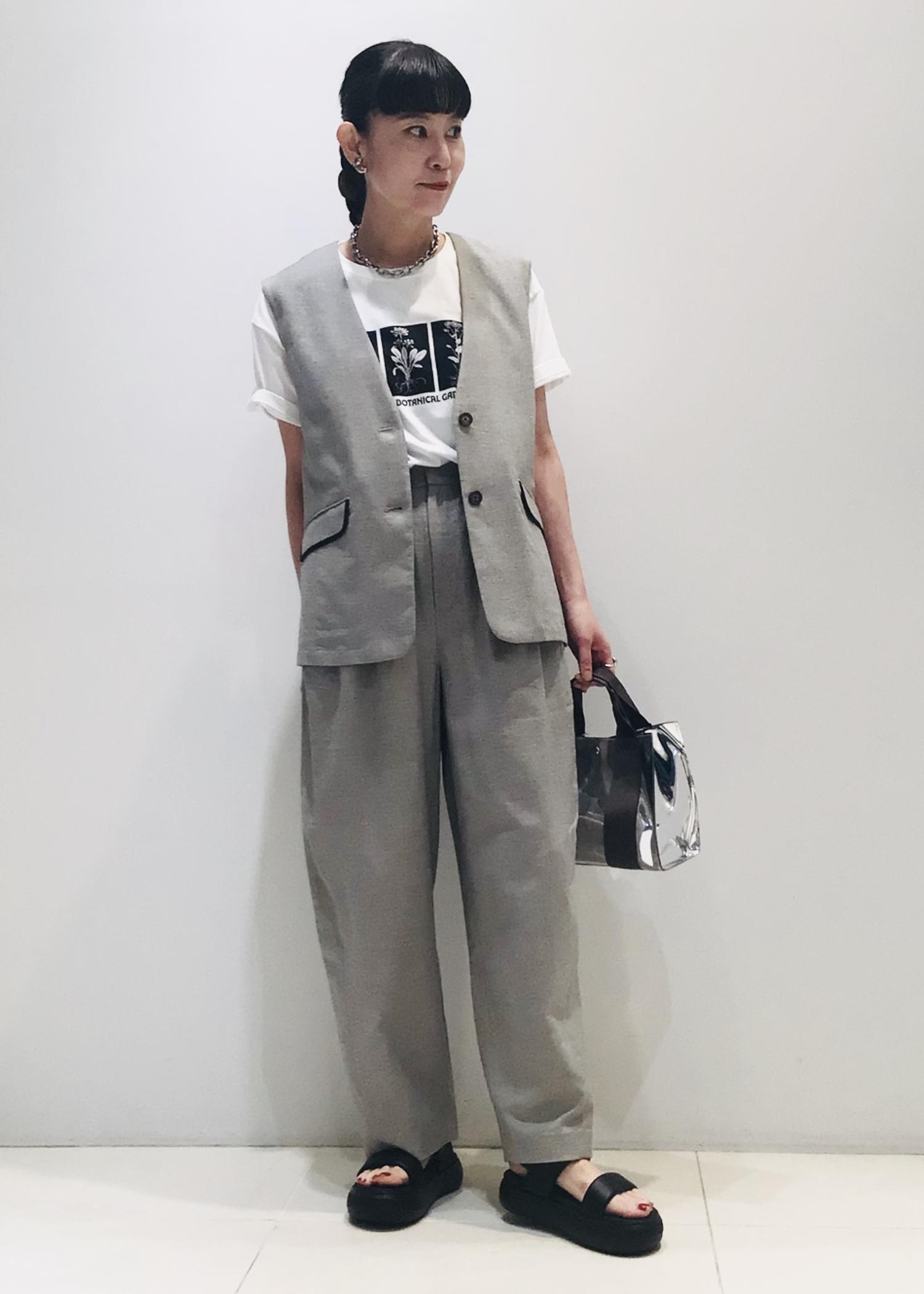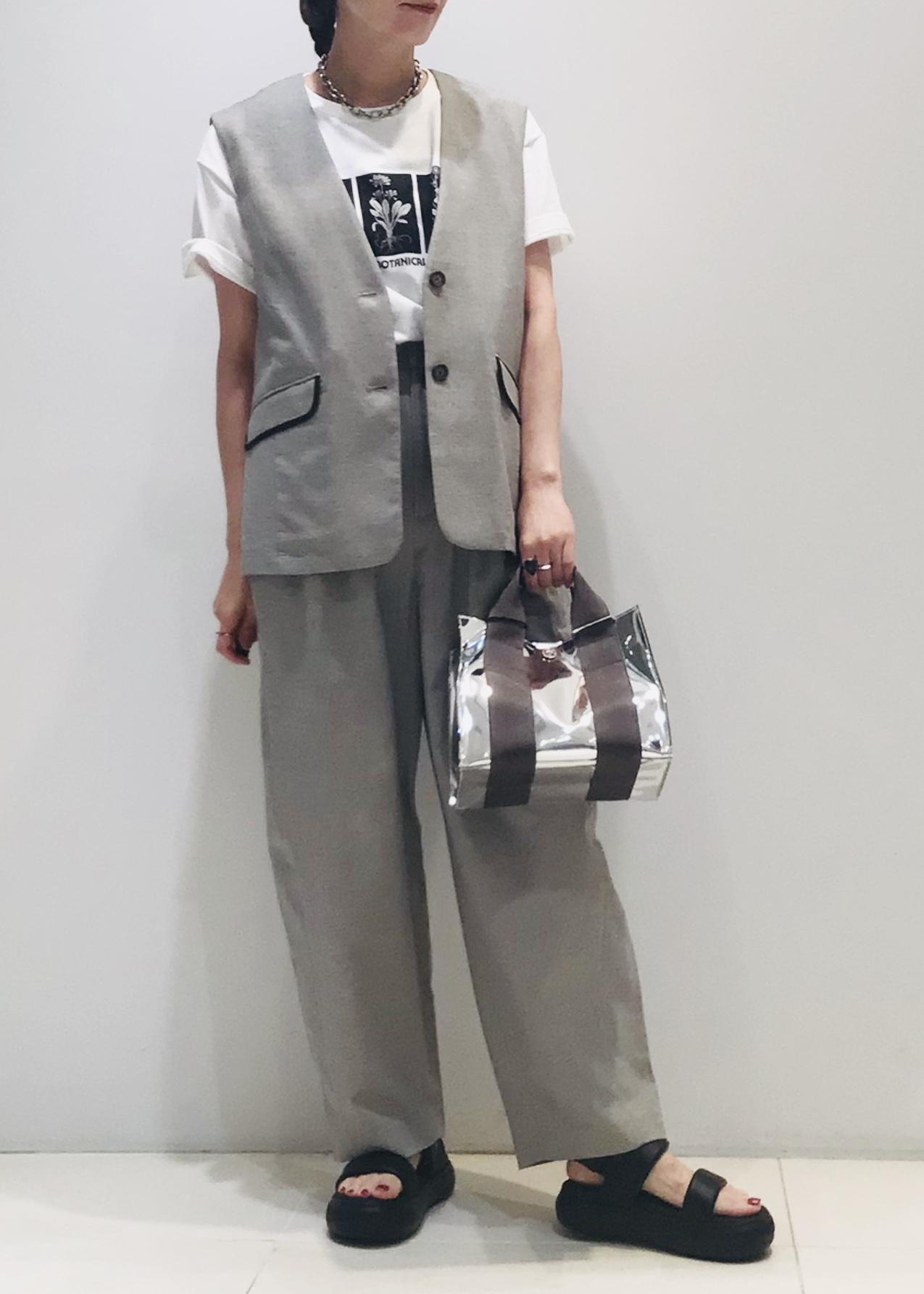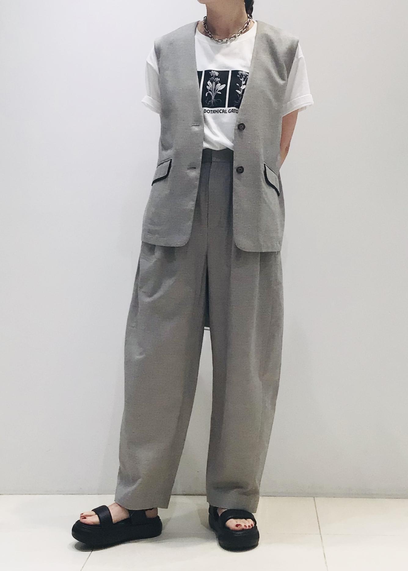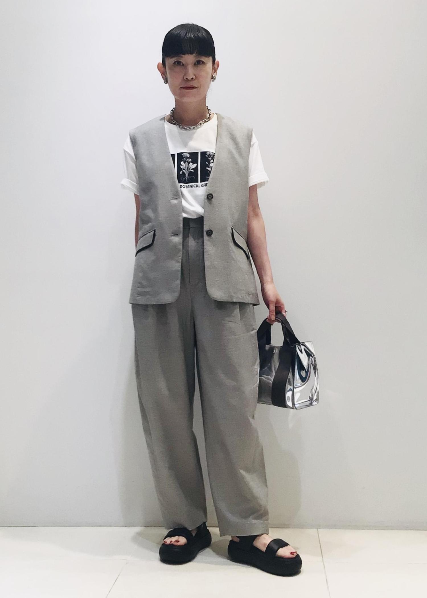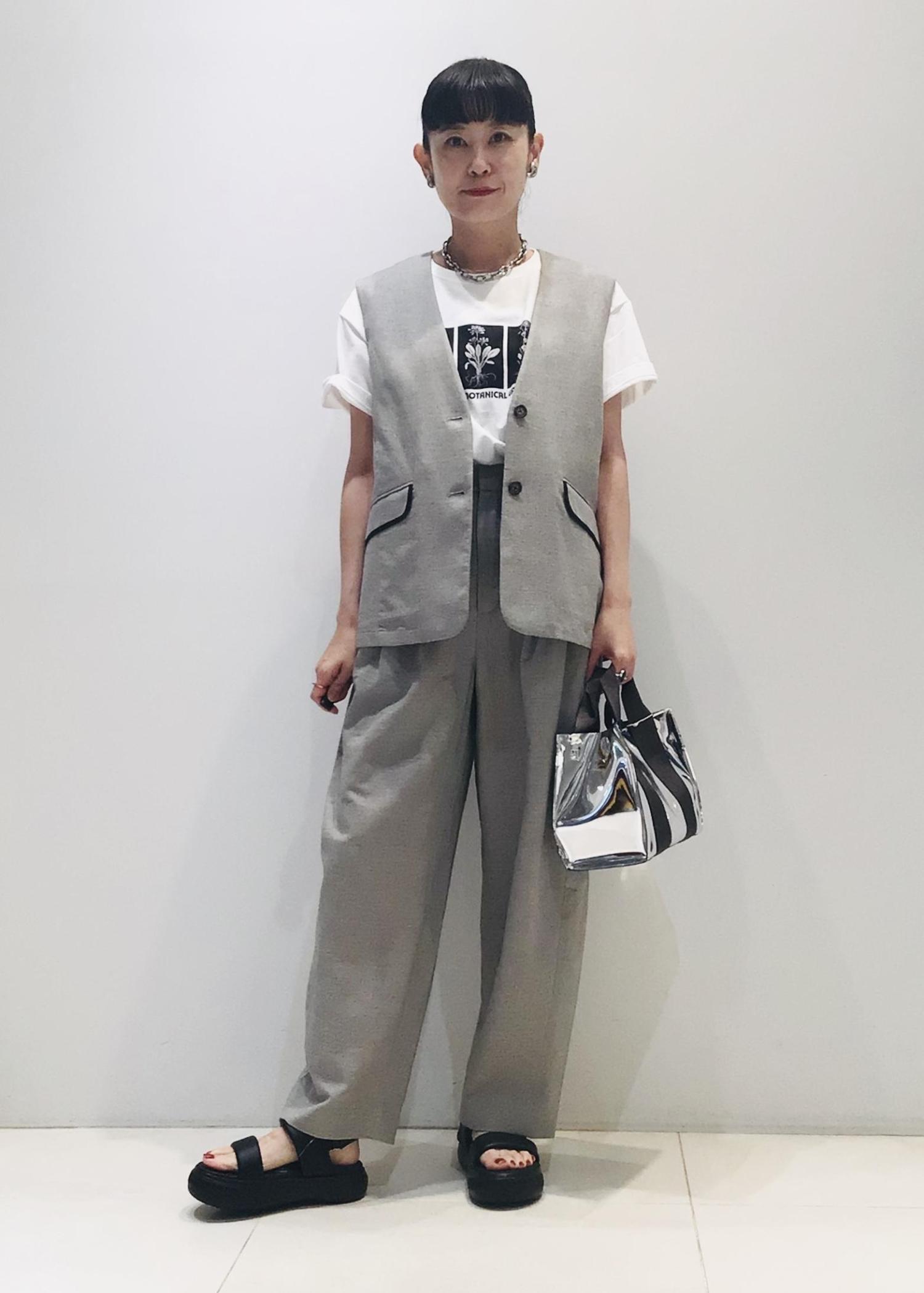 今日はベスト×パンツコーデにTシャツを合わせカジュアルよりのスタイリングにしてみました