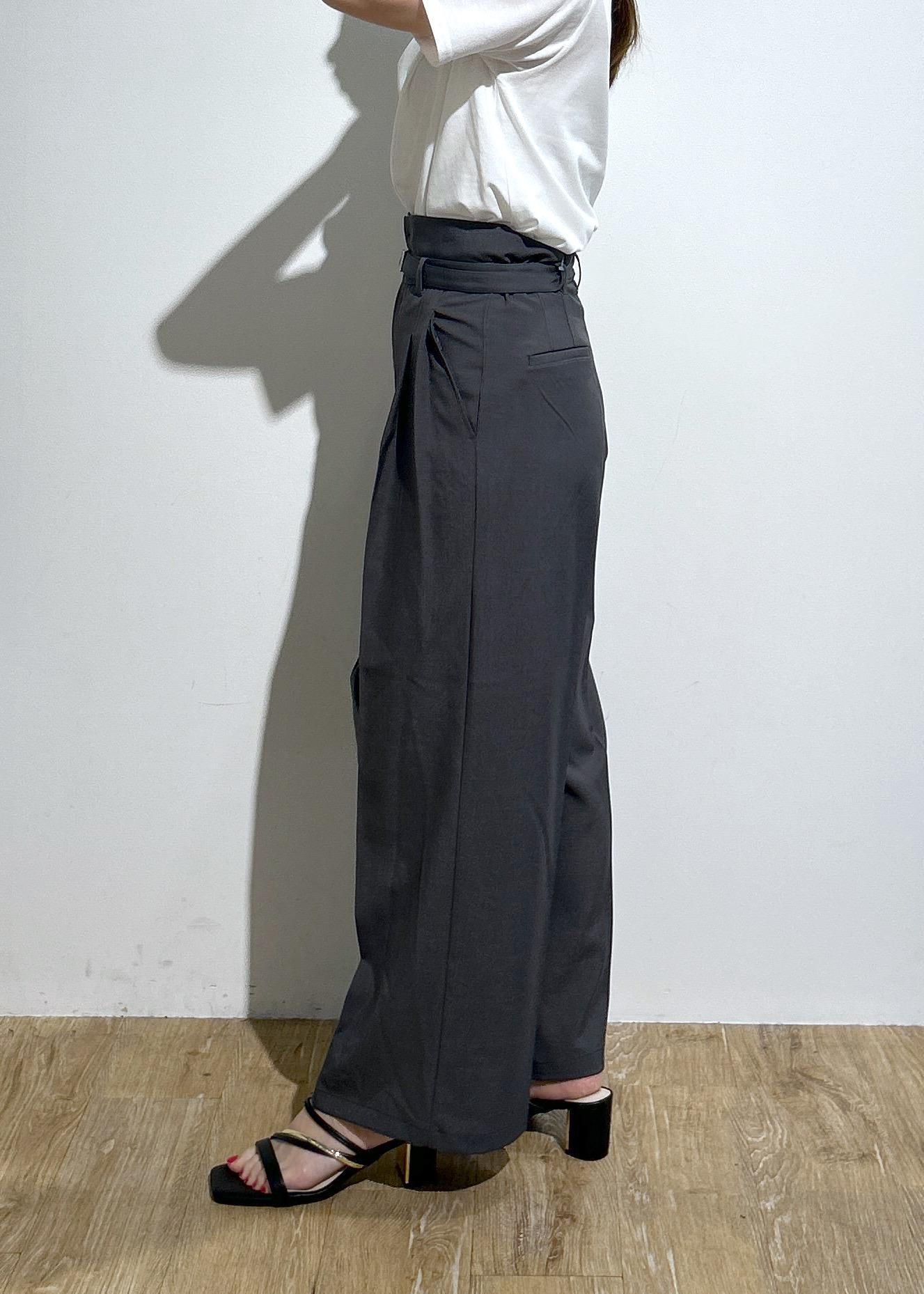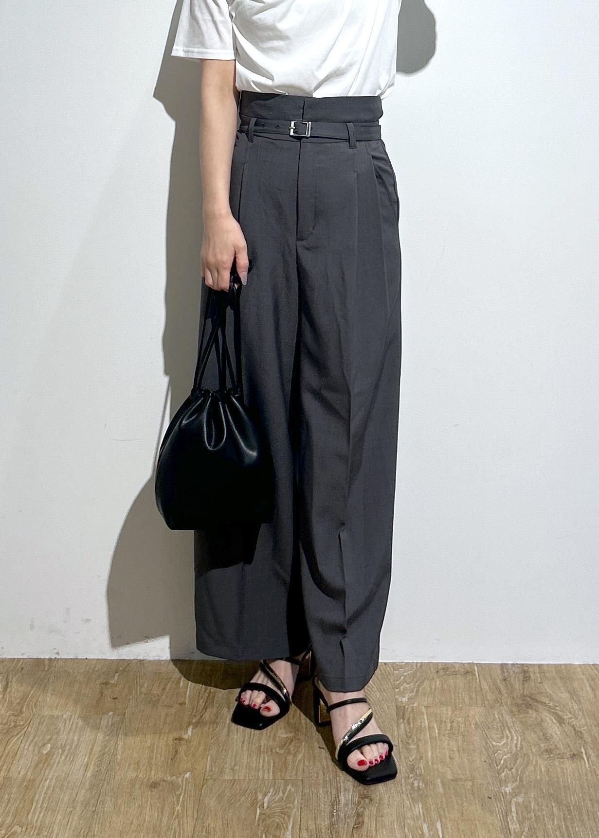 VIS【新色追加】【防シワ/接触冷感】ベルトディテールタックワイドスラックスパンツチャコール / SS¥6,589レビュー履くだけでスタイルアップが期待◎