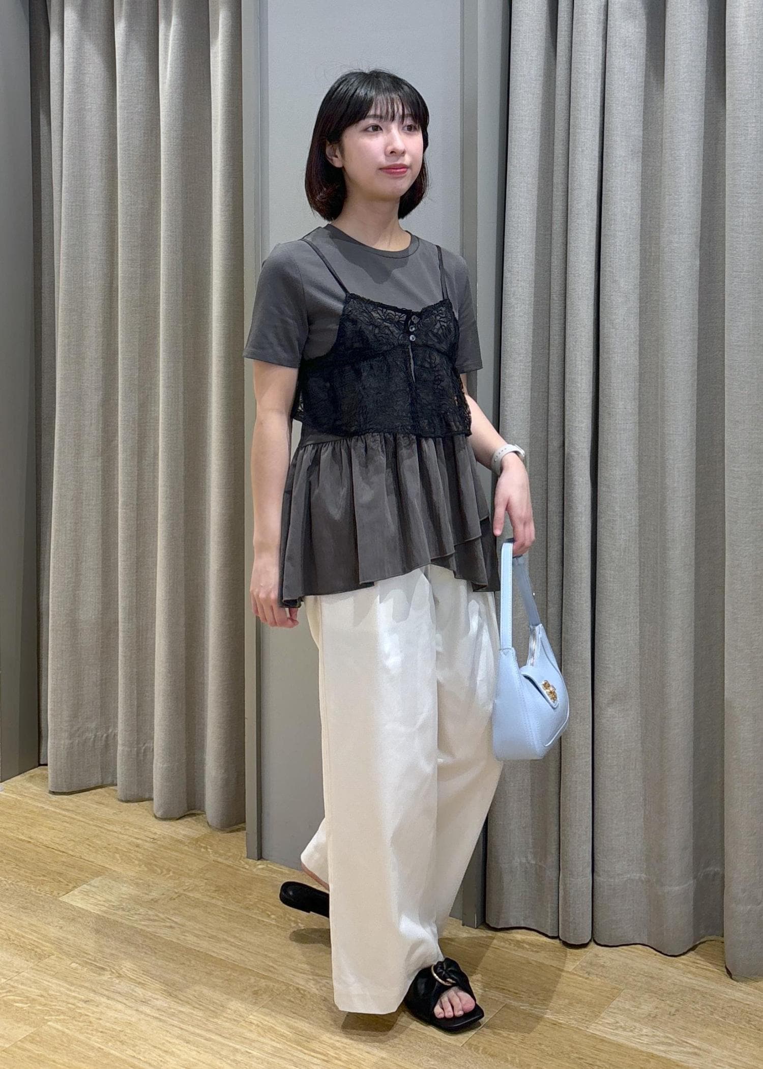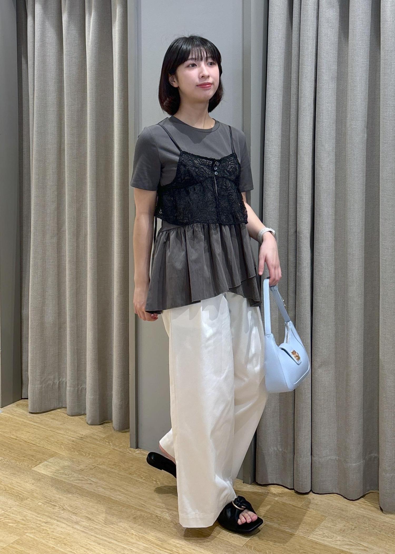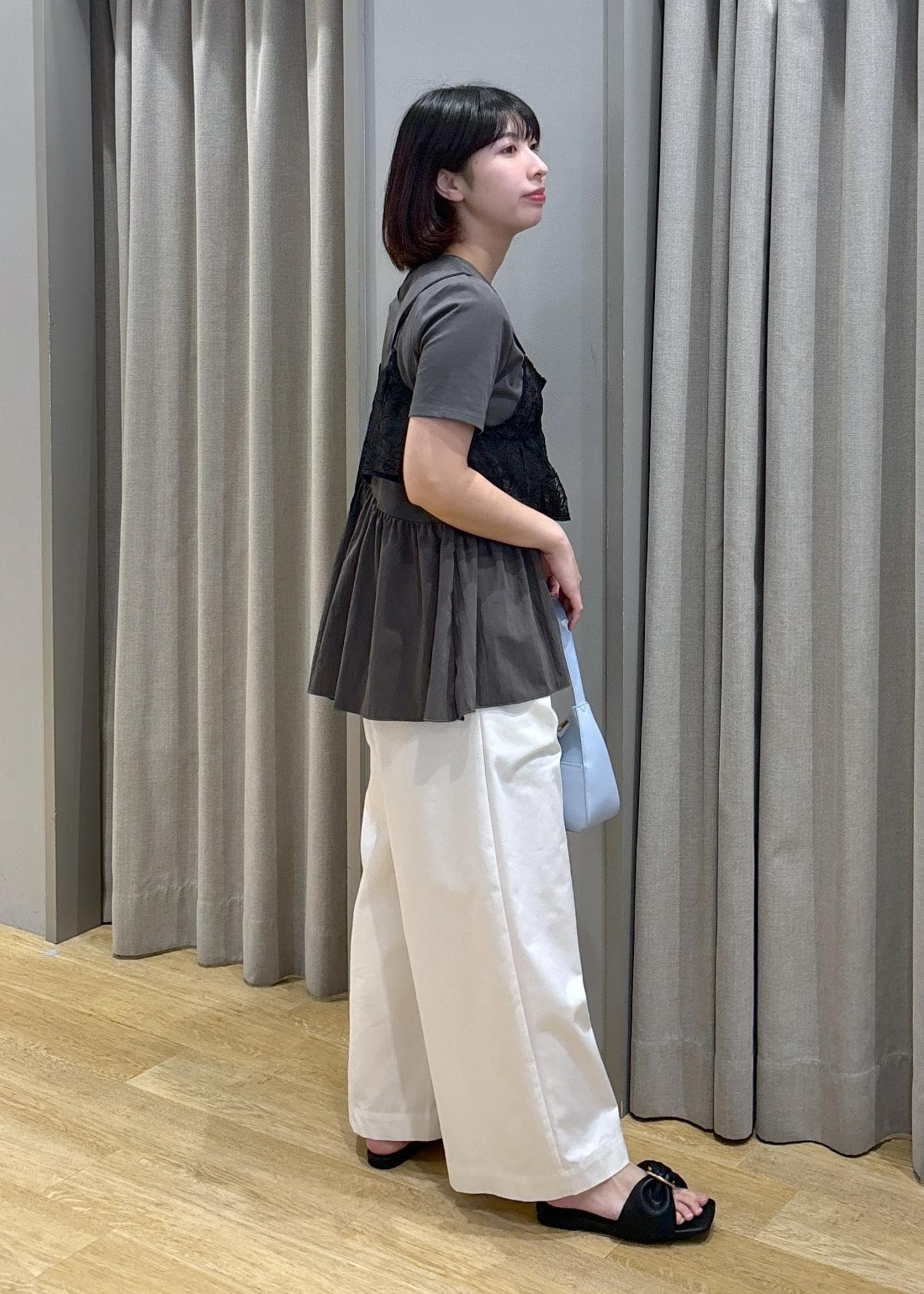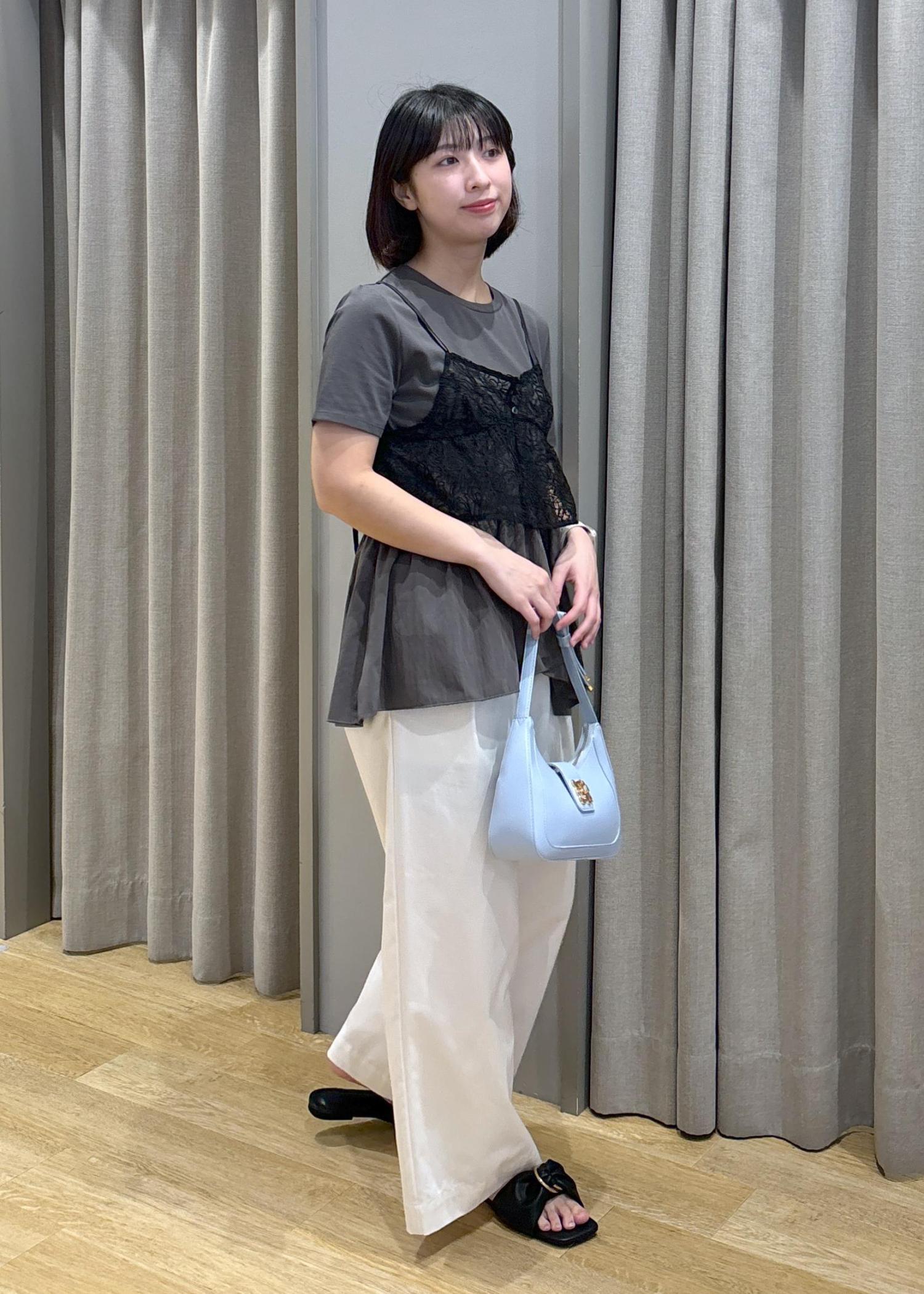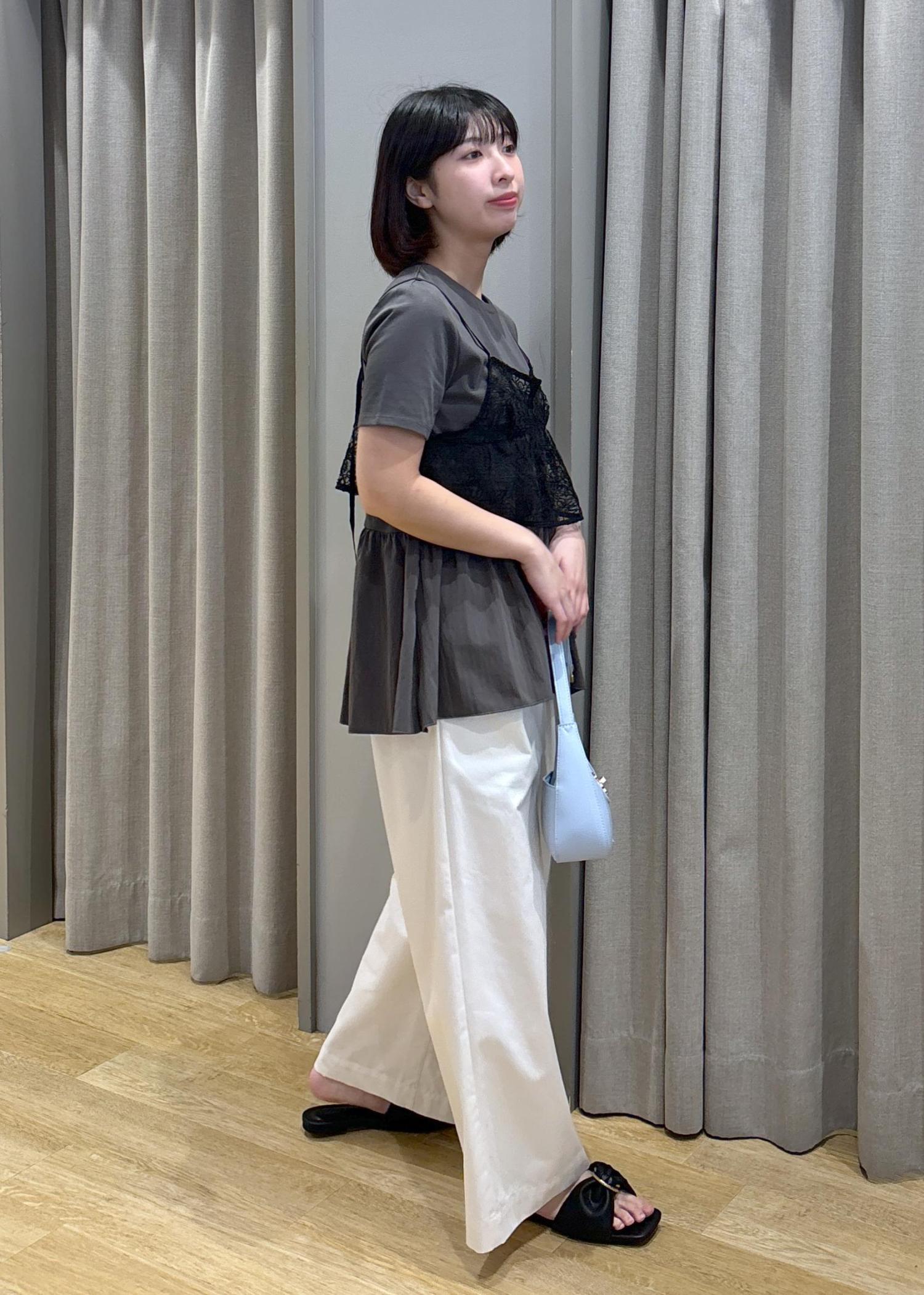 ホワイトのカラーは透け感があるので薄い色のインナーの着用をおすすめします!