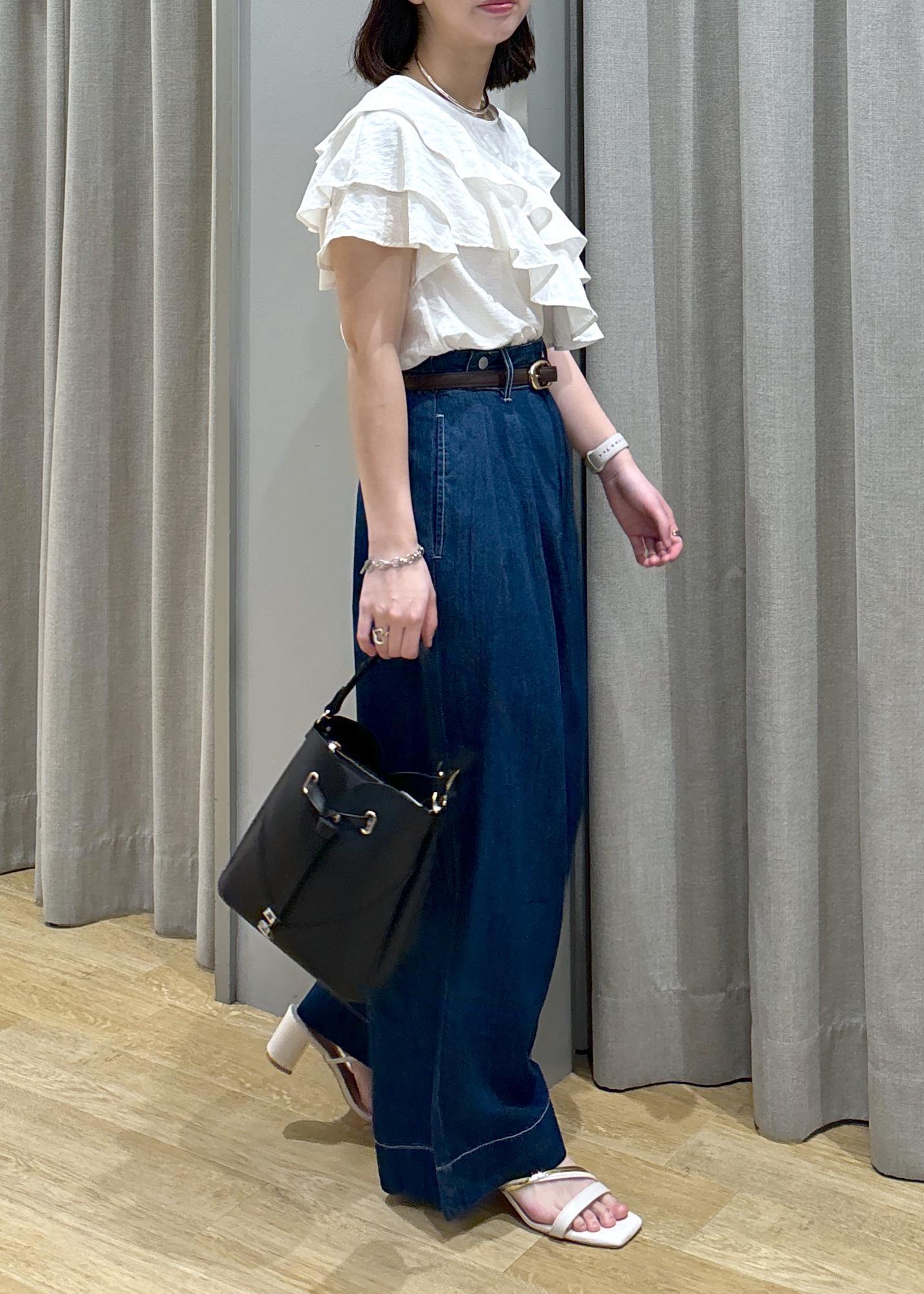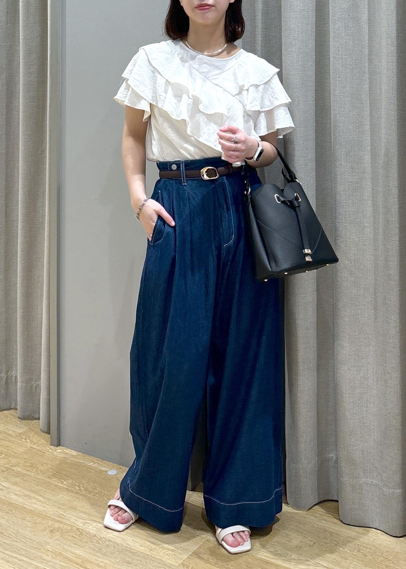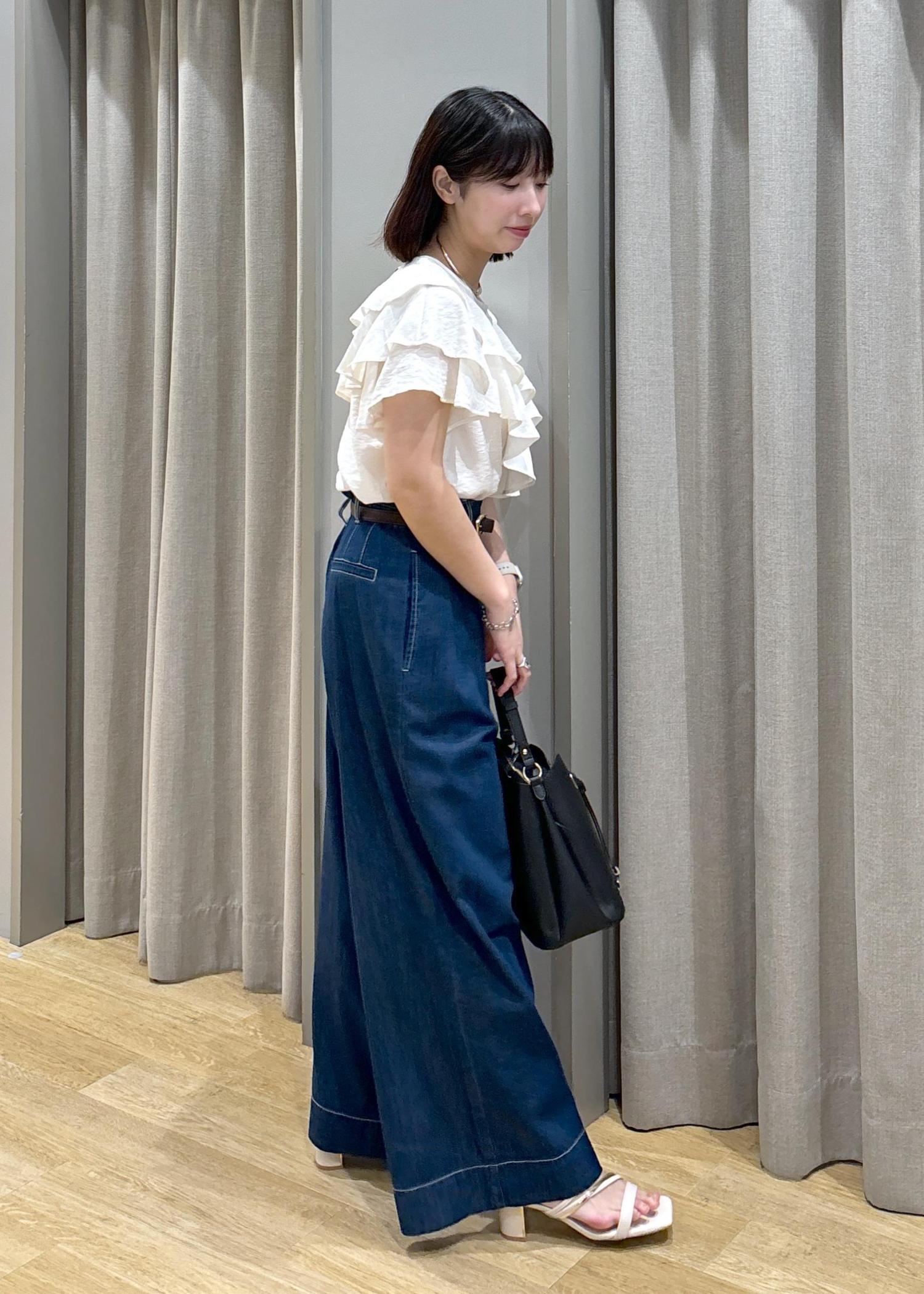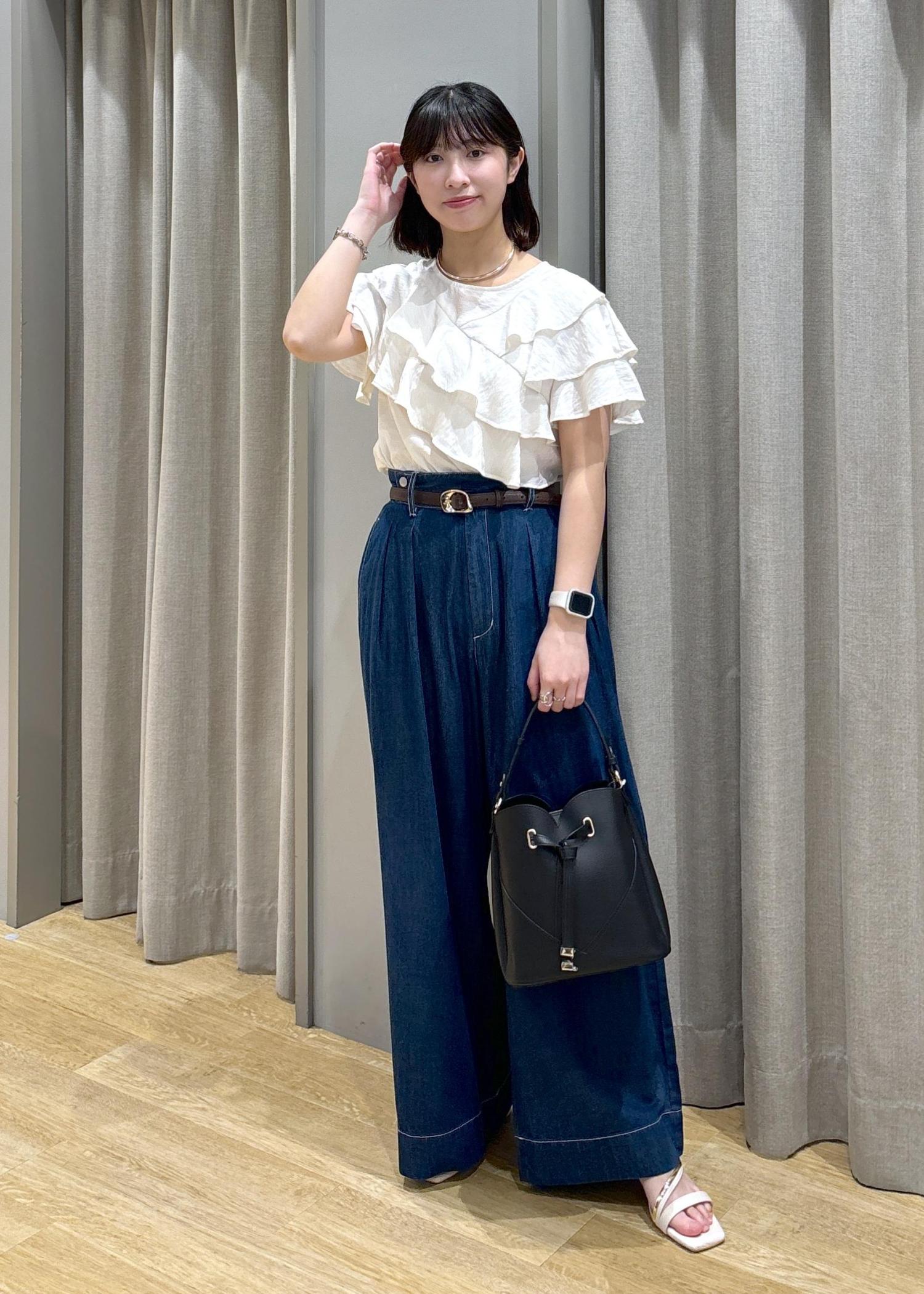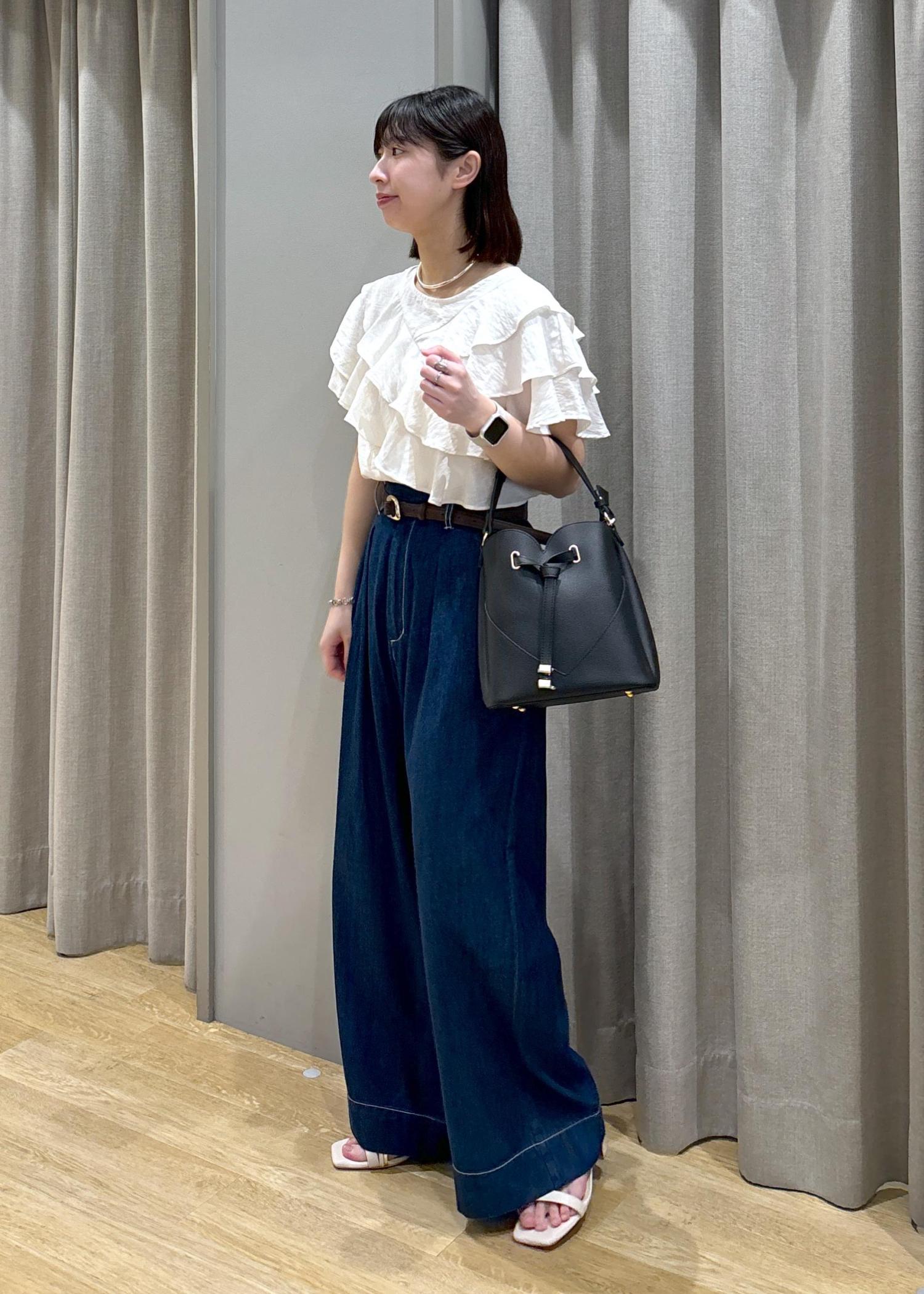 アウトレットVISフリルティアードブラウスオフホワイト / F¥4,391レビュー身長158cm、Fサイズ着用。