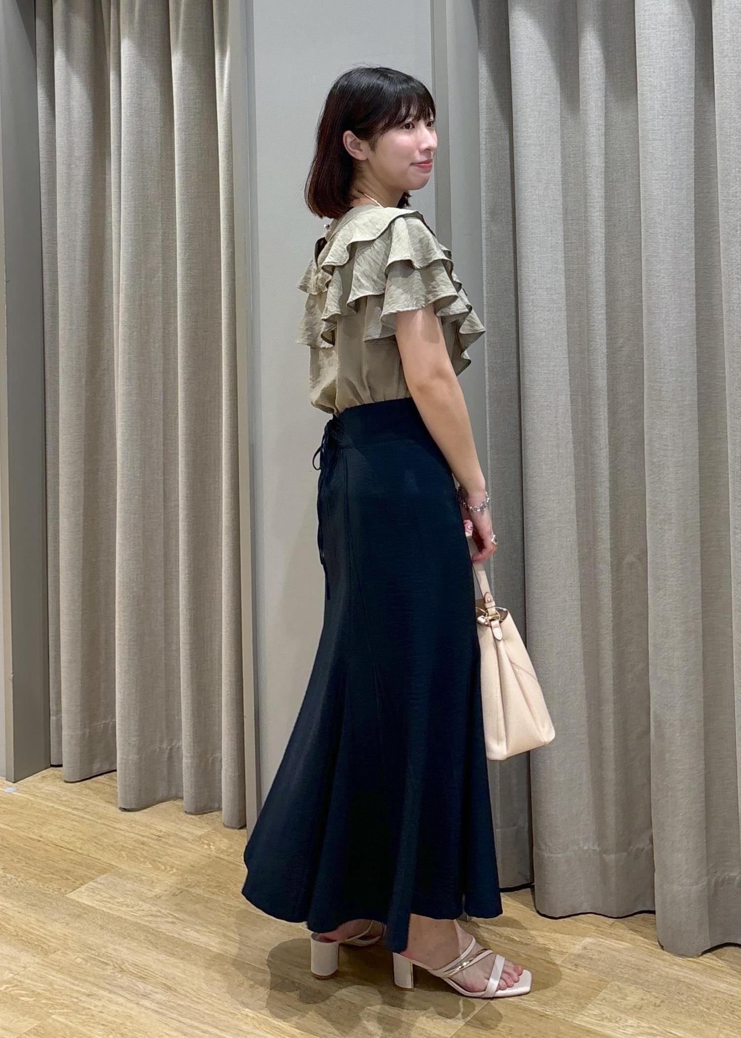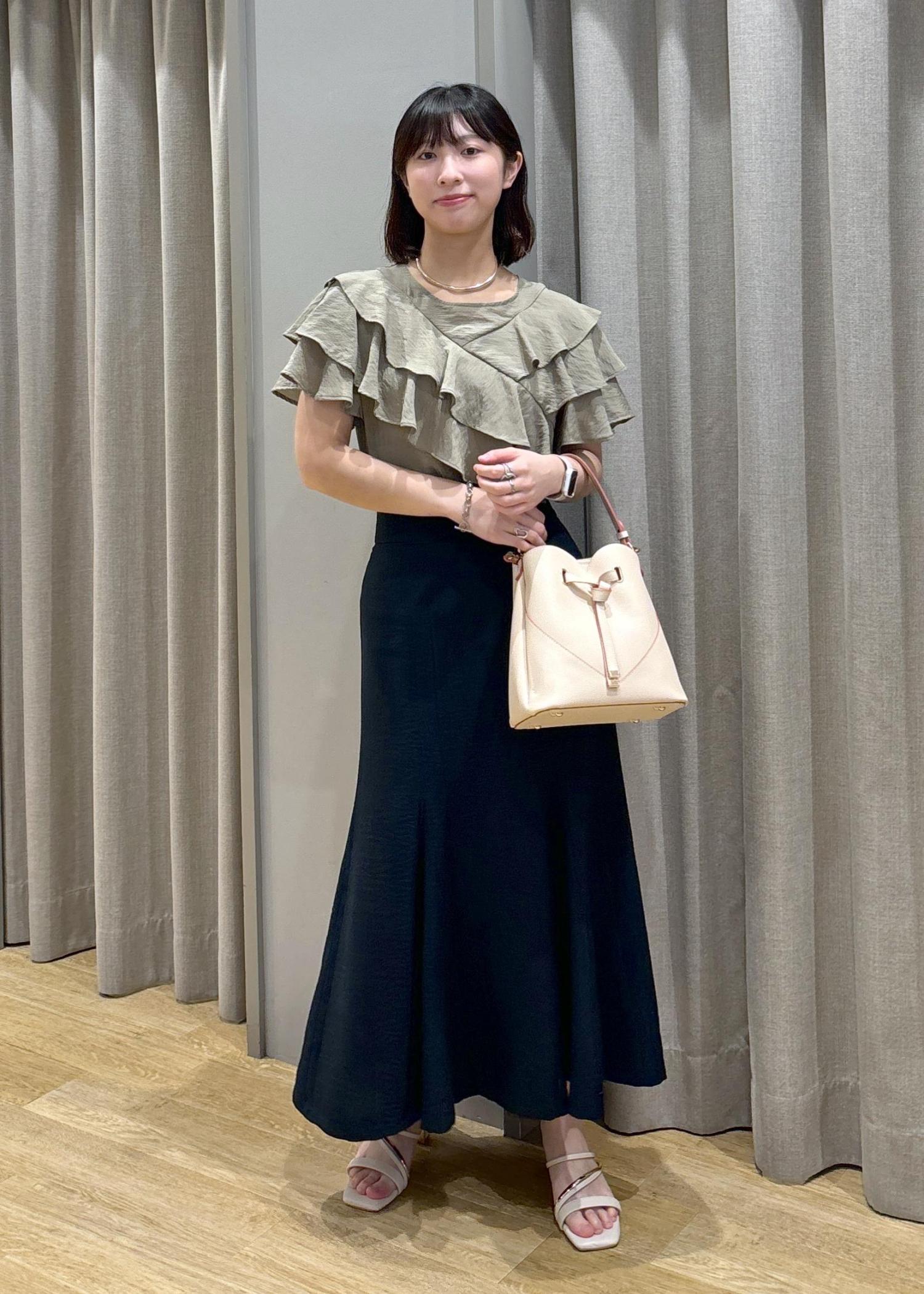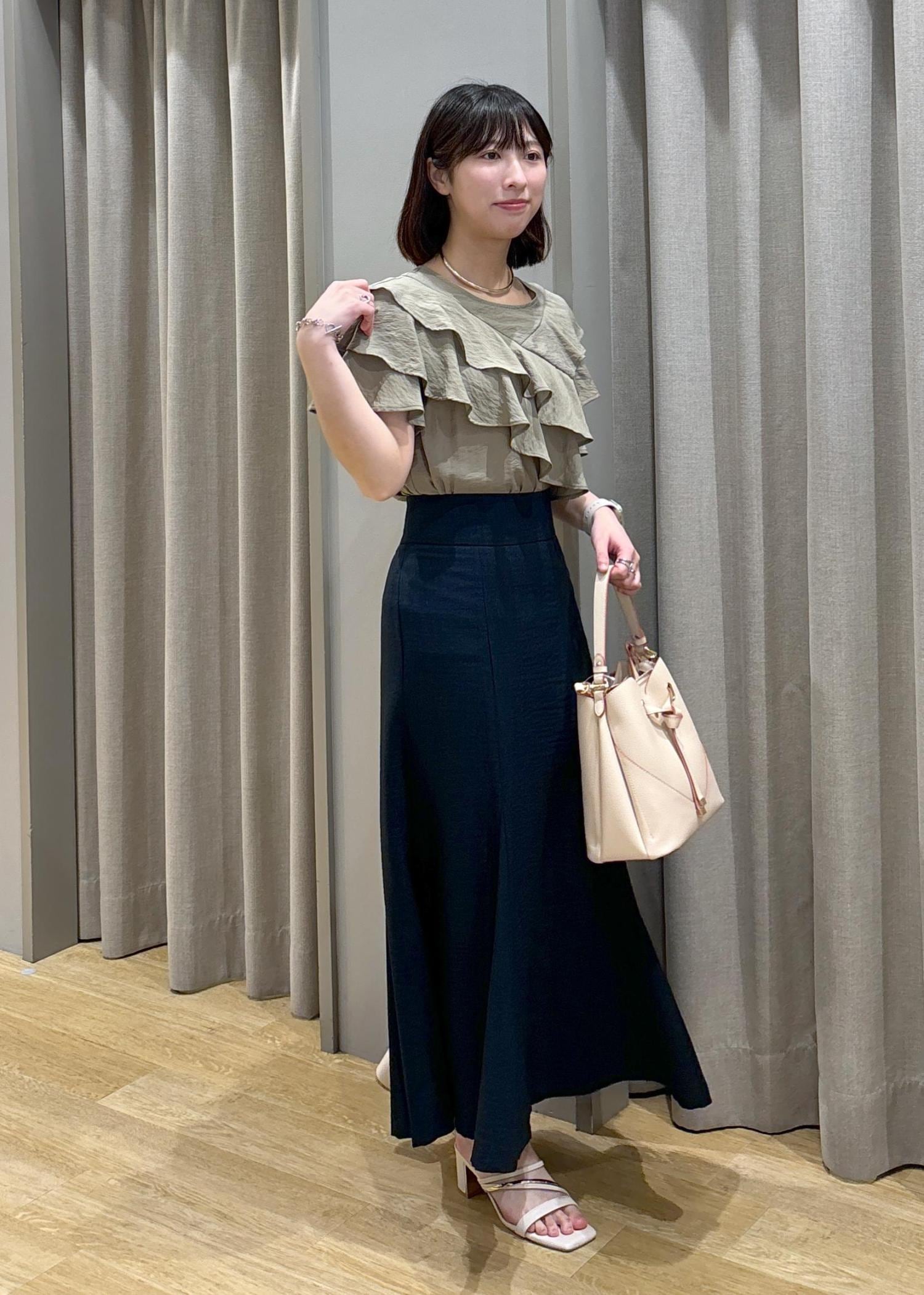 アウトレットVISフリルティアードブラウスカーキ / F¥4,391レビュー身長158cm、Fサイズ着用。