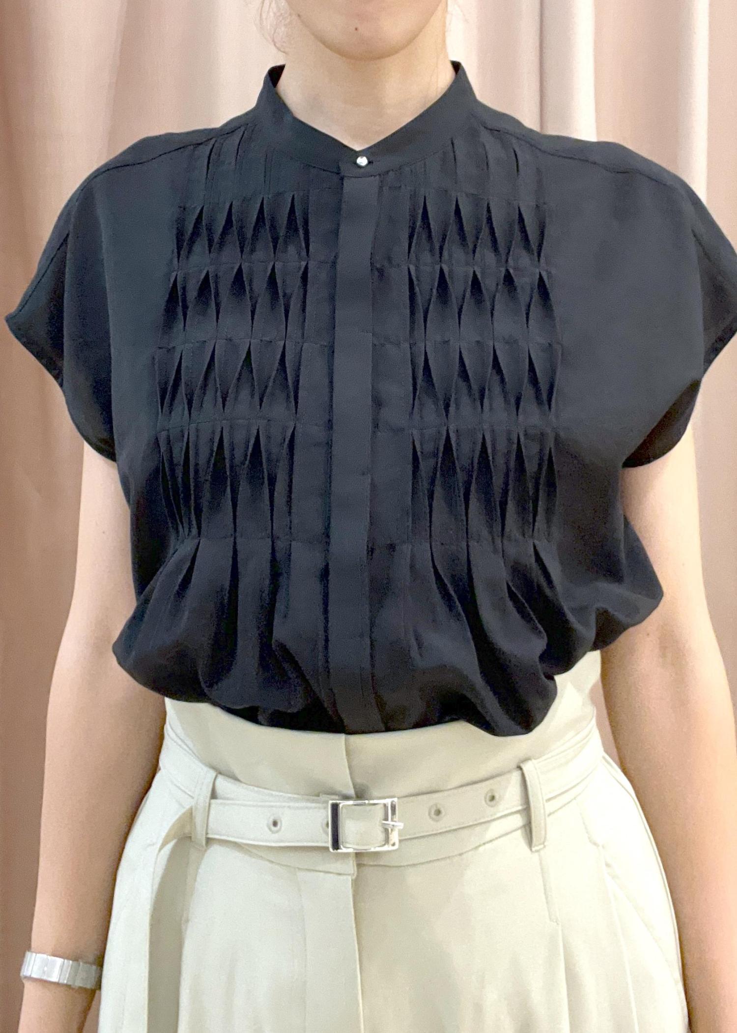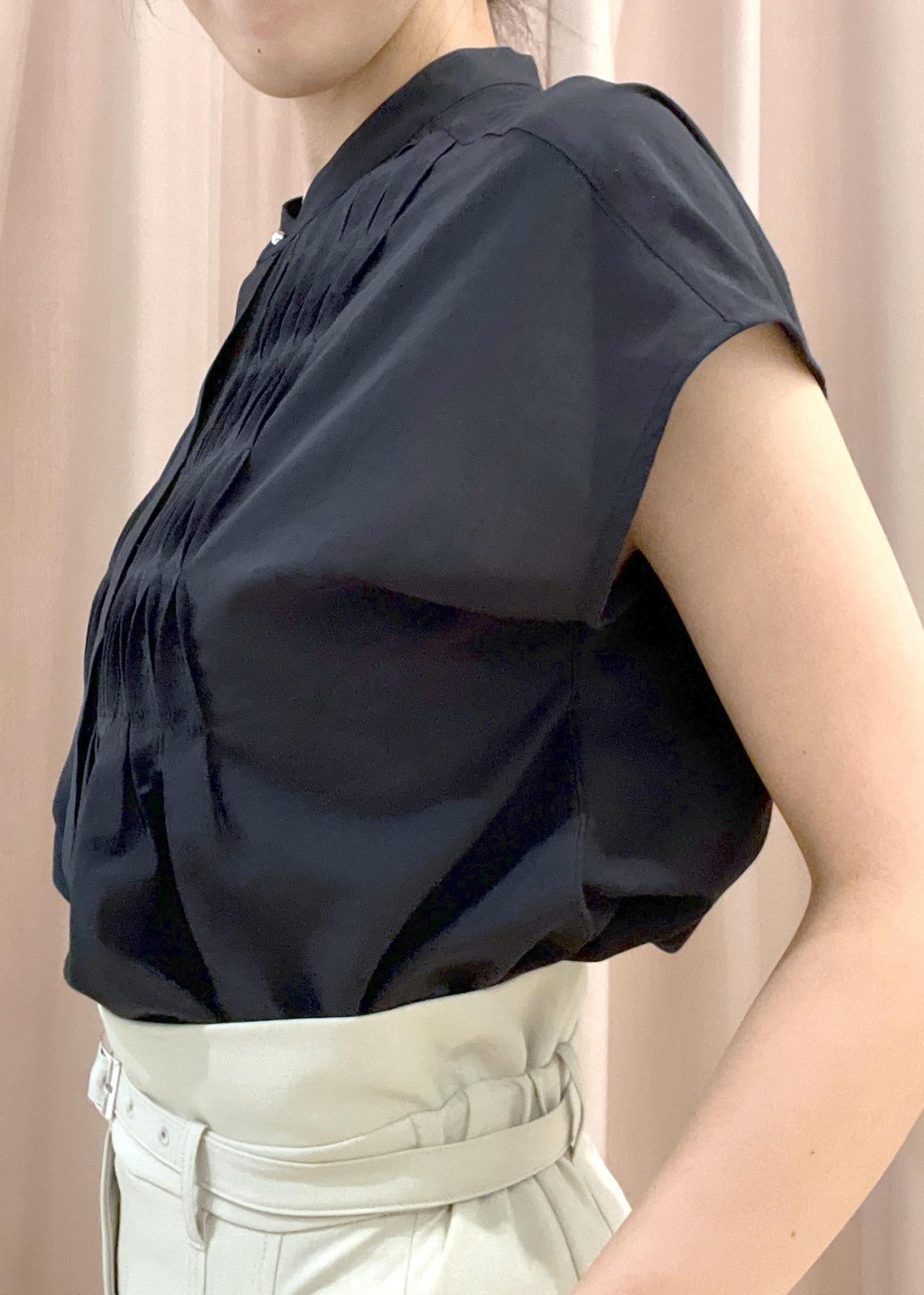 胸元のピンタックデザインが上品なブラウスです。