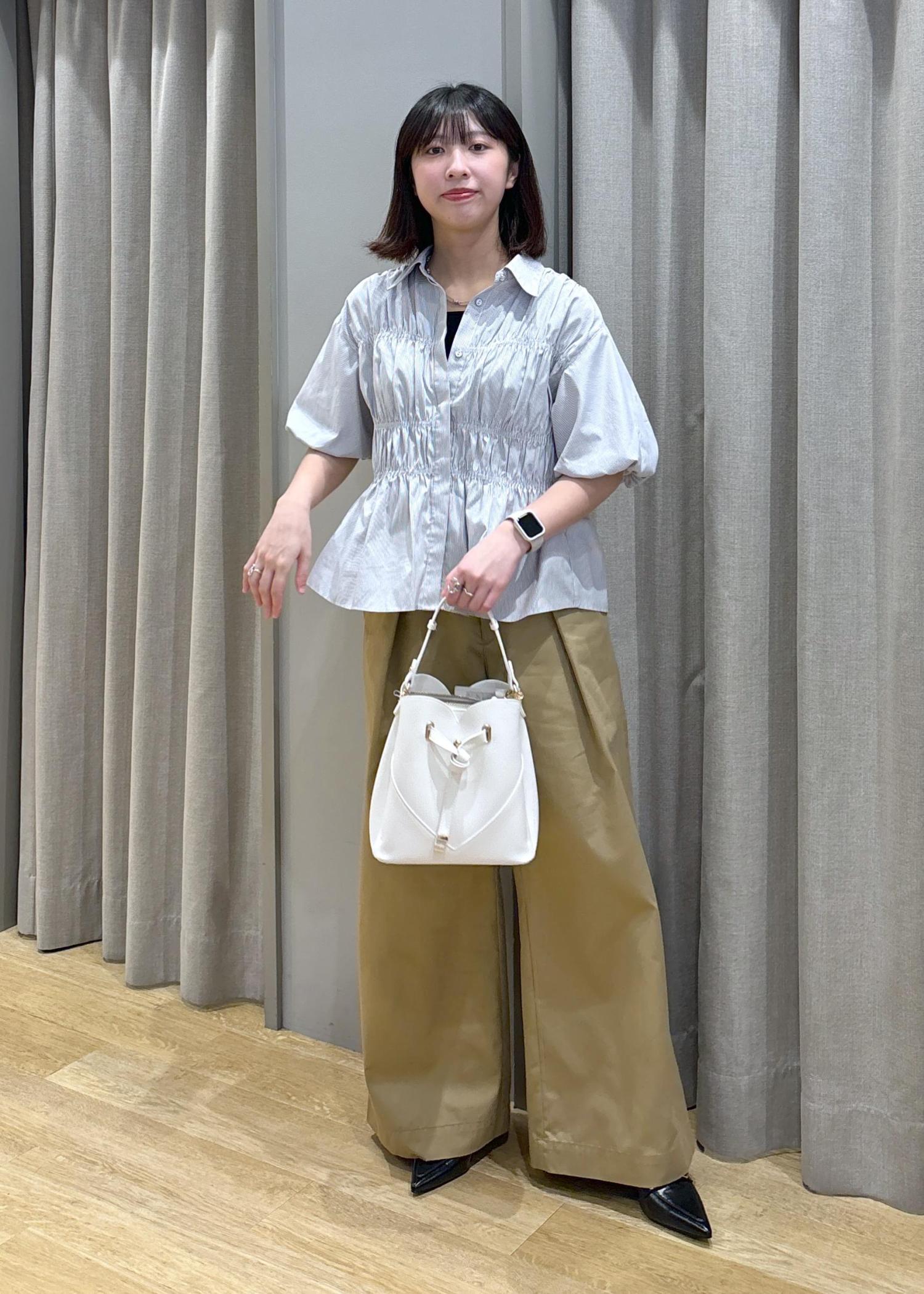 VIS【新色追加】【店頭人気】シャーリングバルーンシャツグレー / F¥5,489レビュー身長158cm、Fサイズ着用。