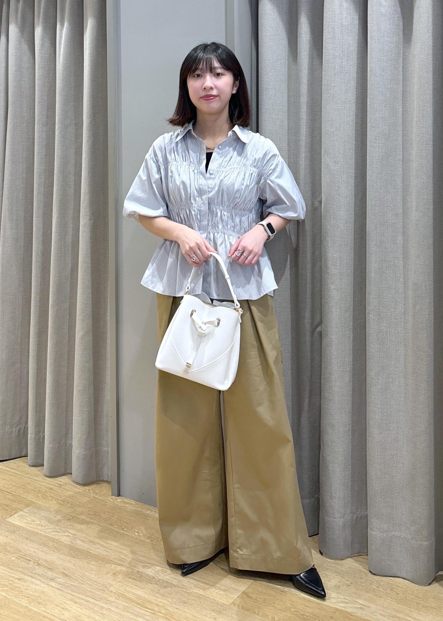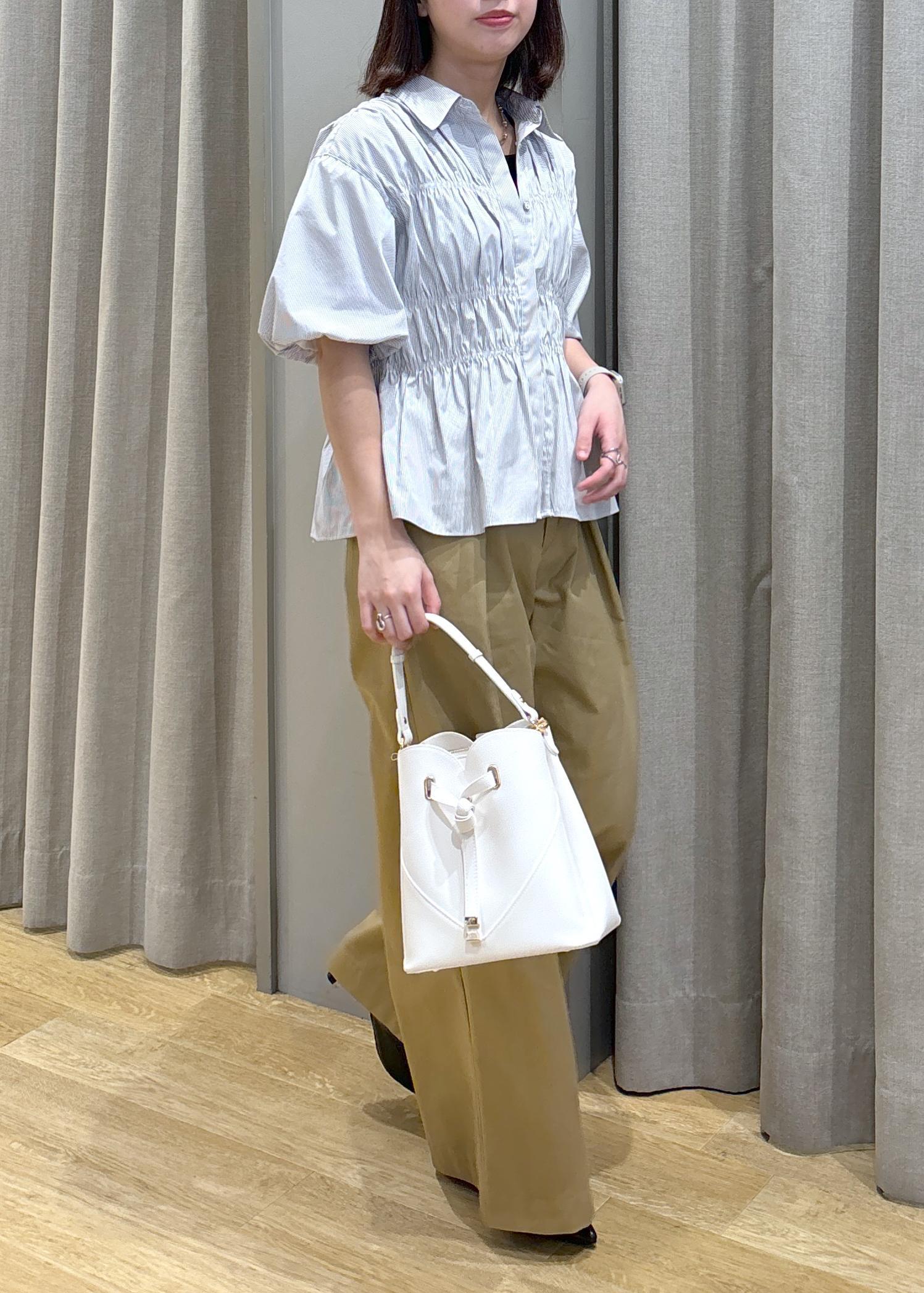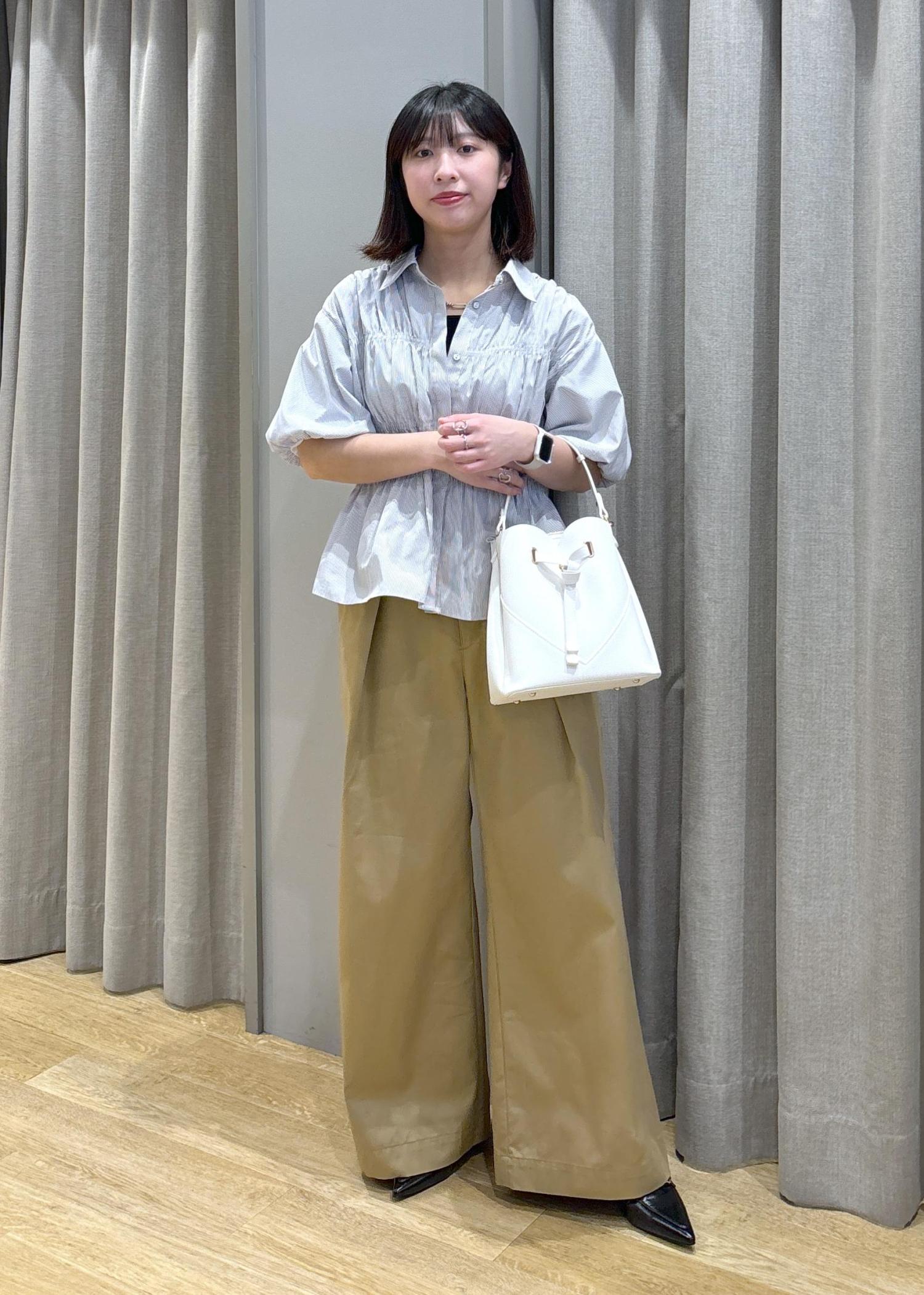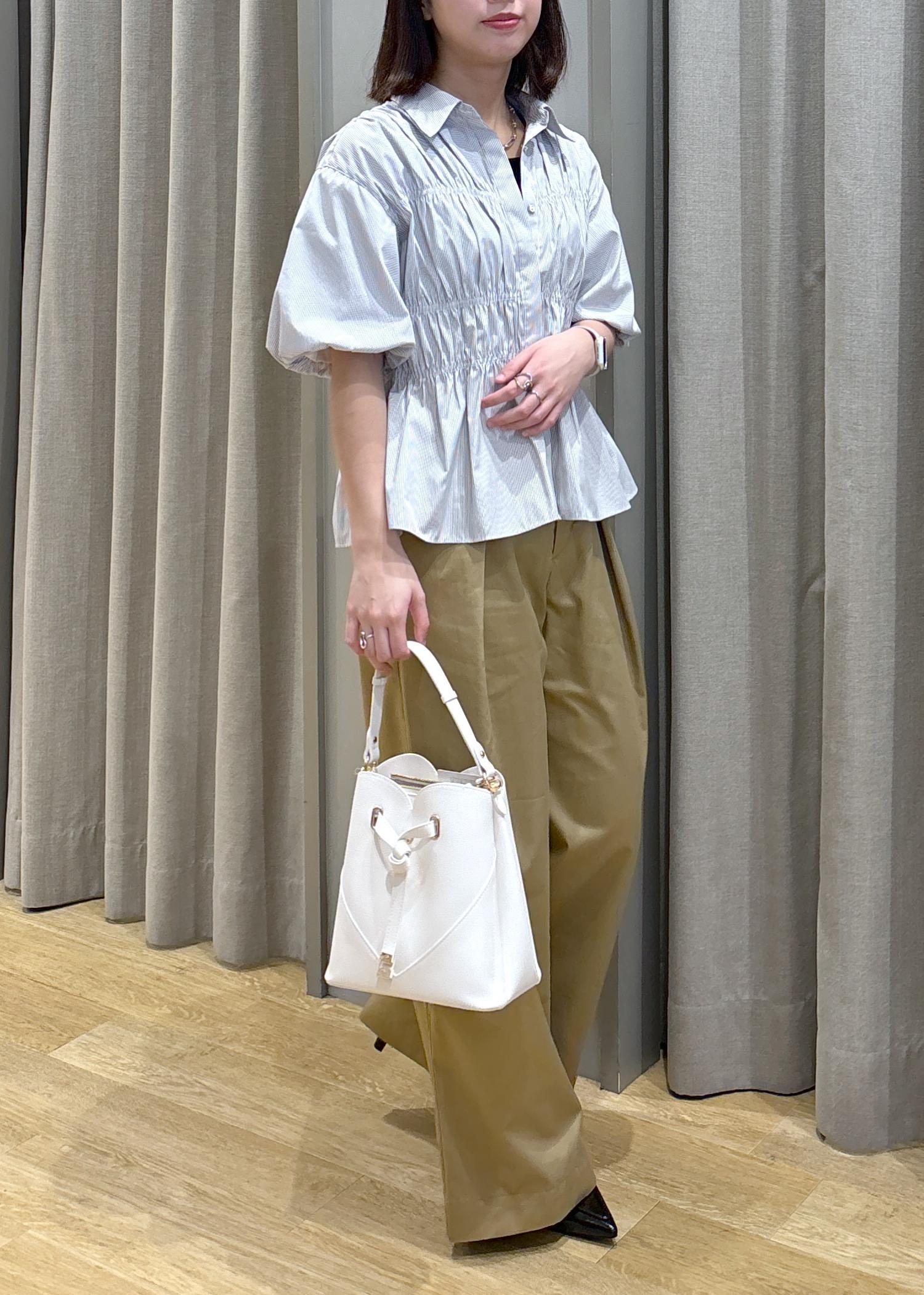 シャーリングバルーンシャツ×マリンデザインバギーパンツ