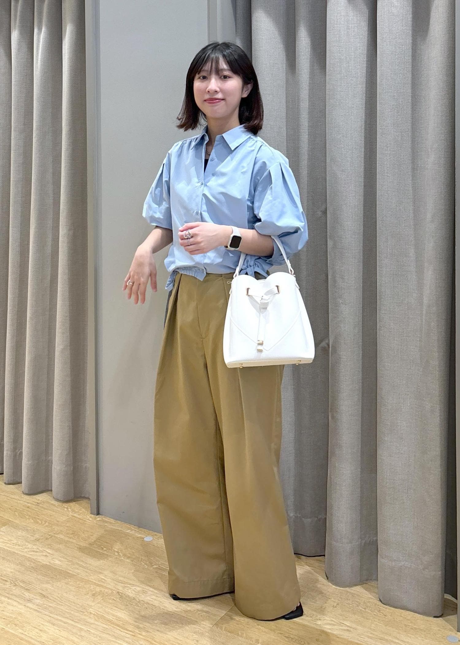 アウトレットVISドロストボリュームスリーブシャツ(レース・無地)サックス / F¥3,557レビュー身長158cm、Fサイズ着用。