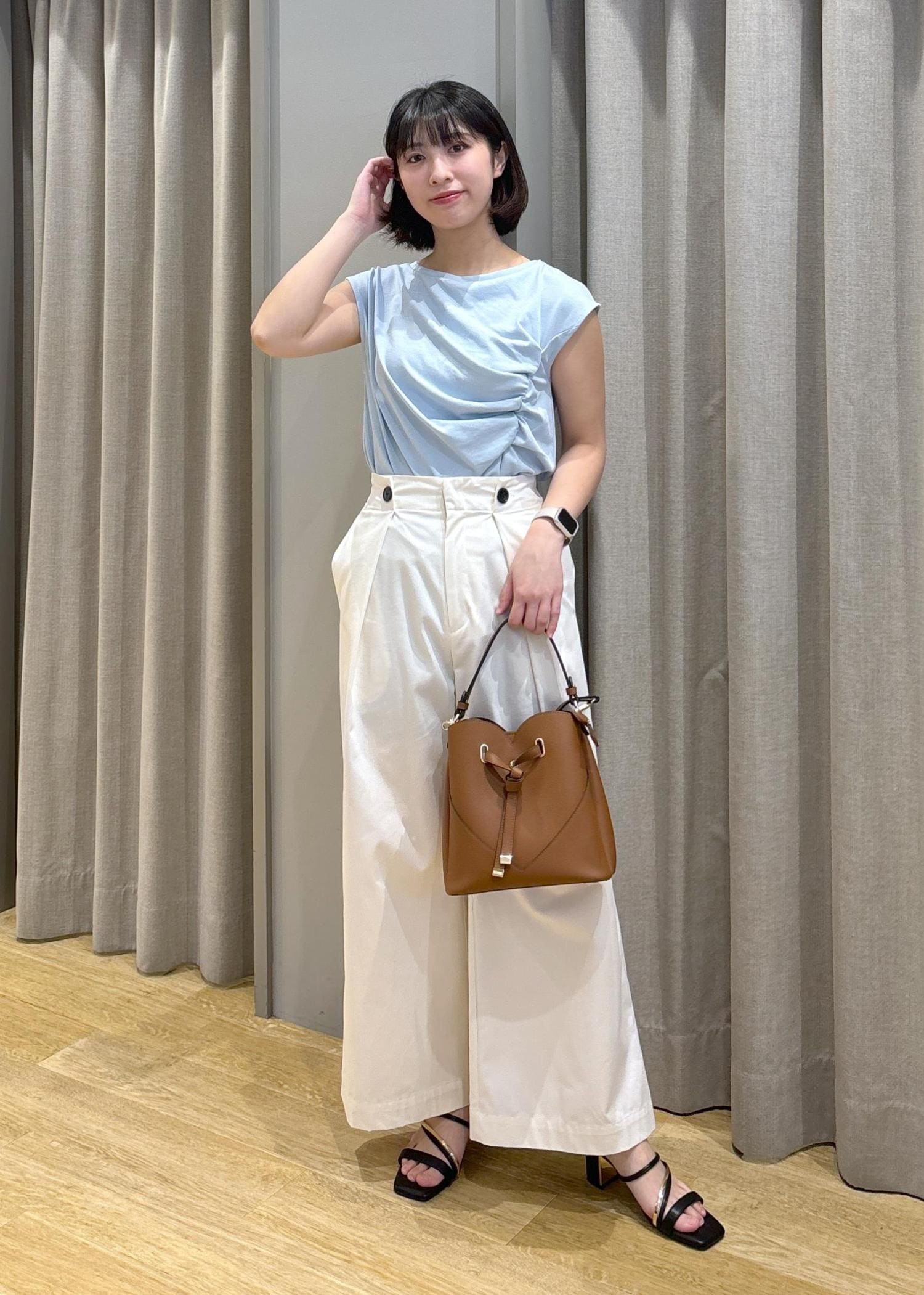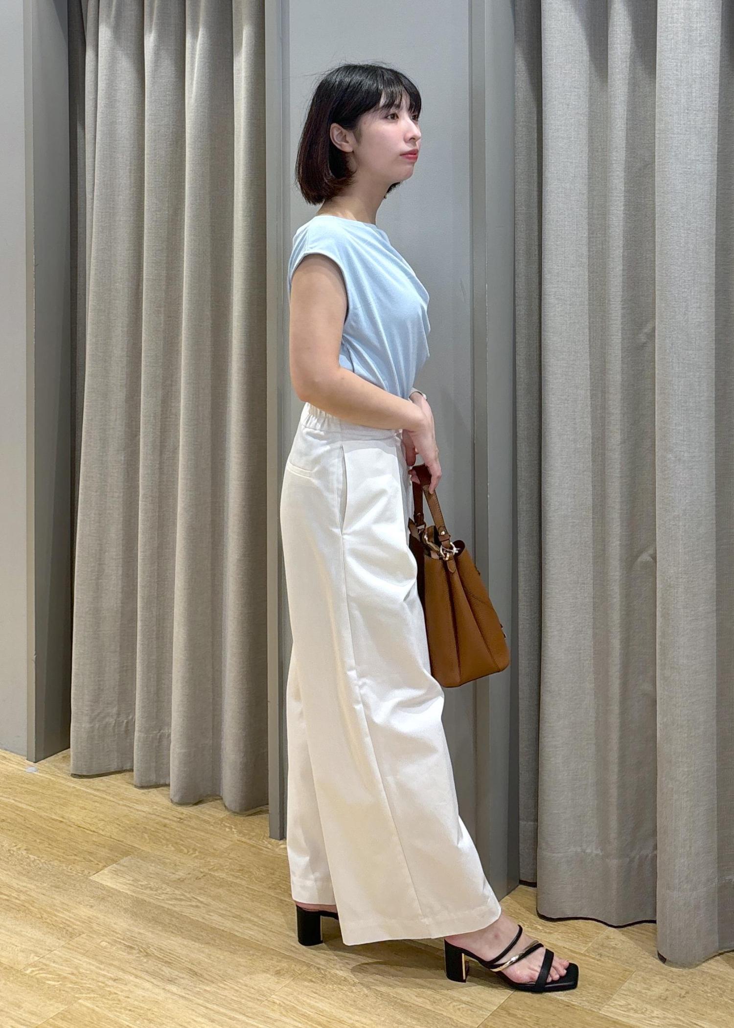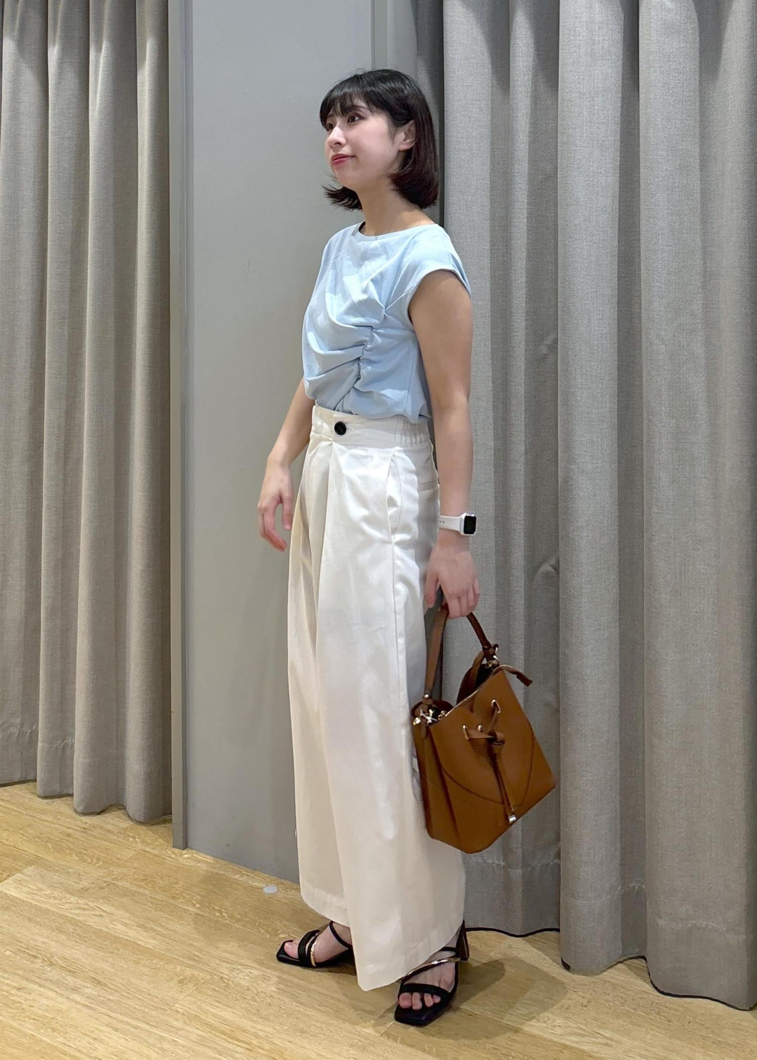 デザイントップスなのでシンプルなボトムと相性が良いです!