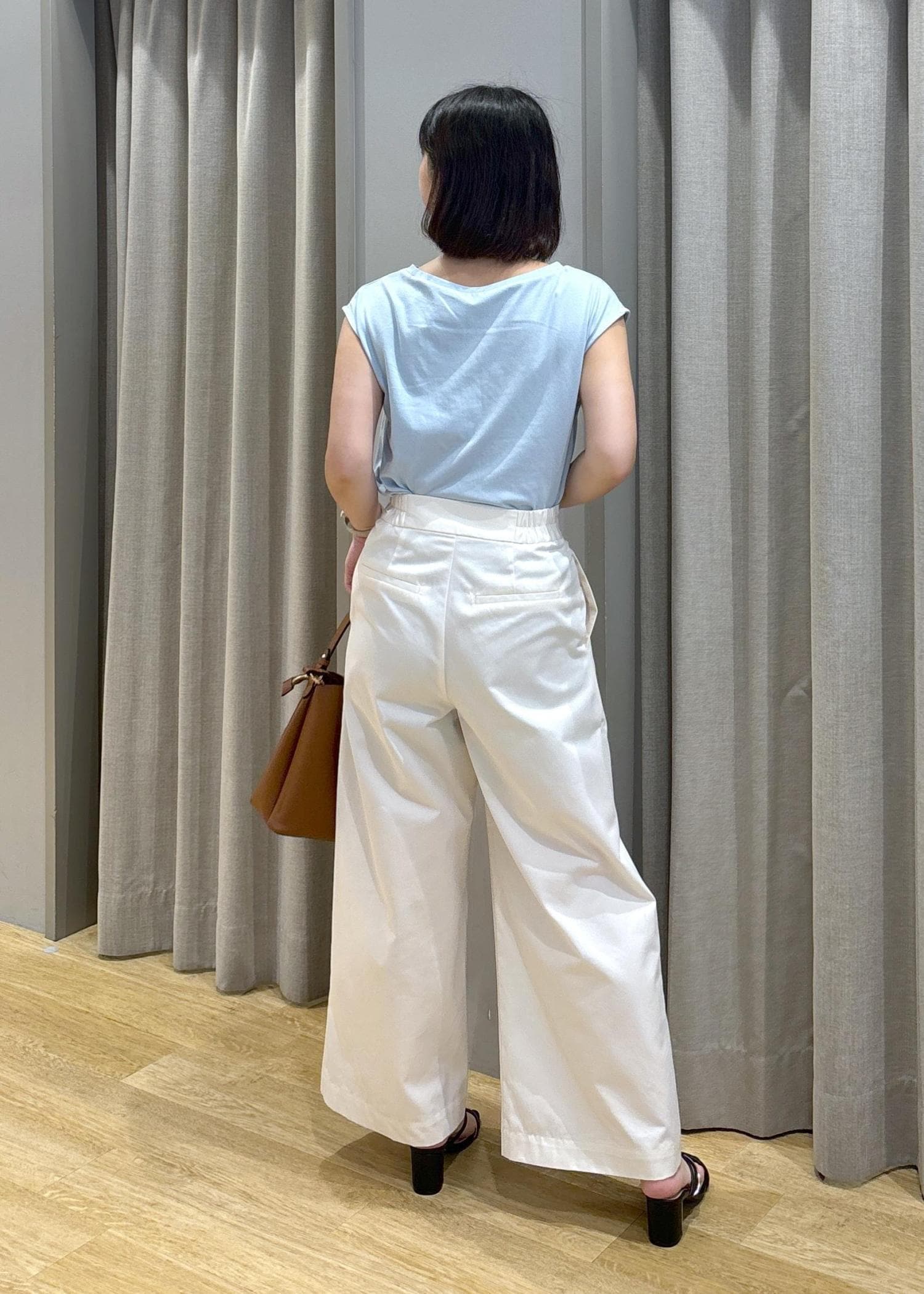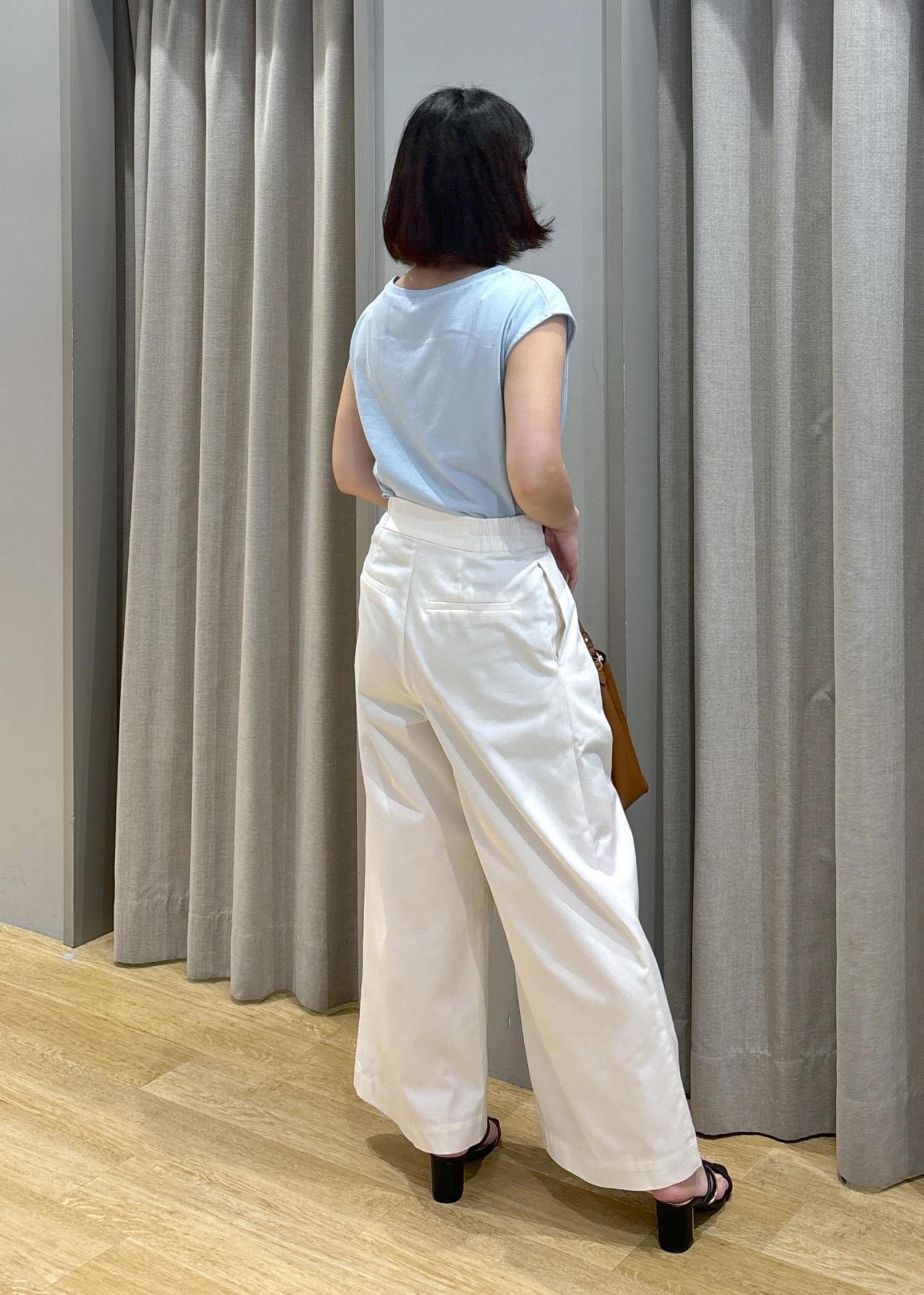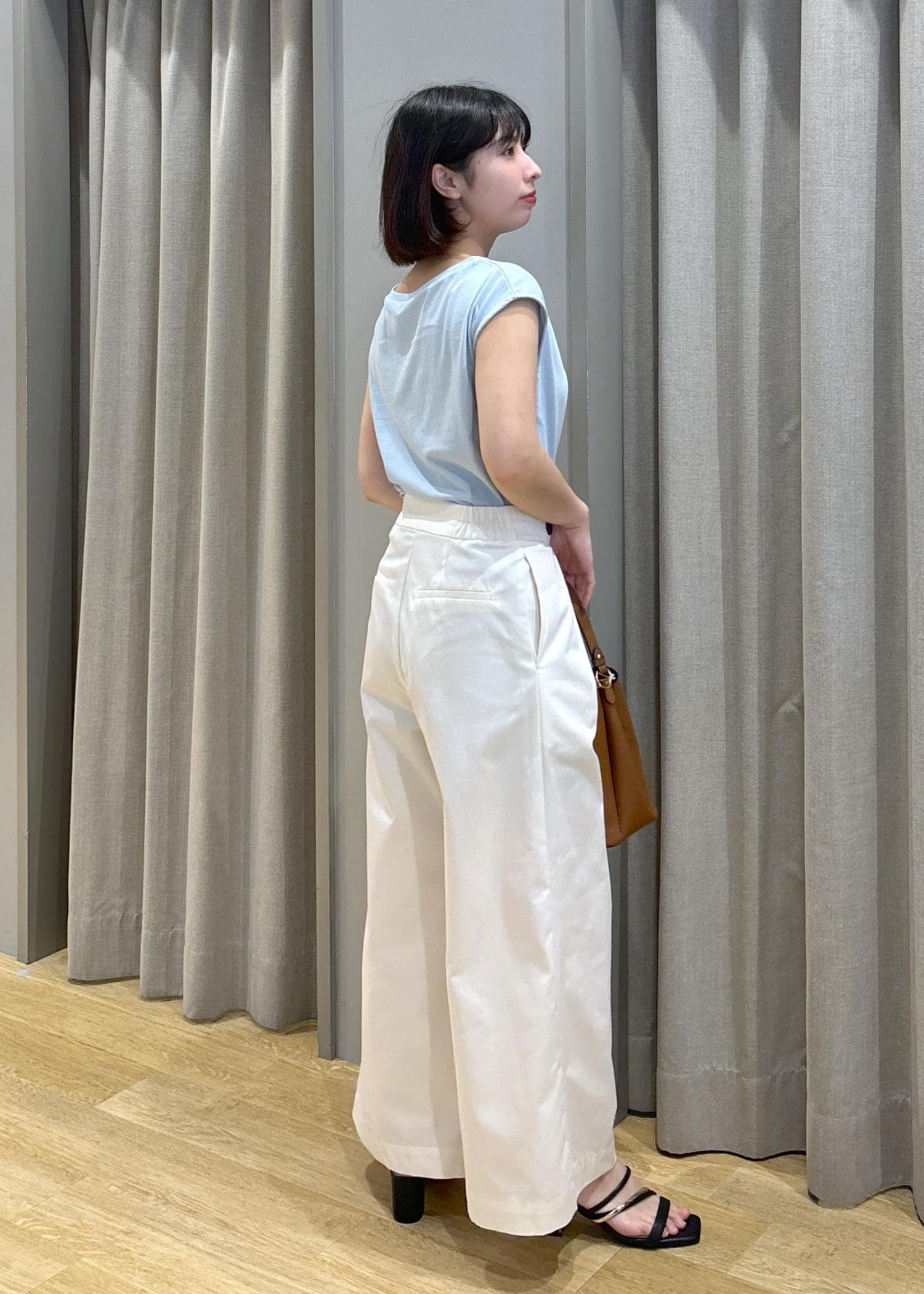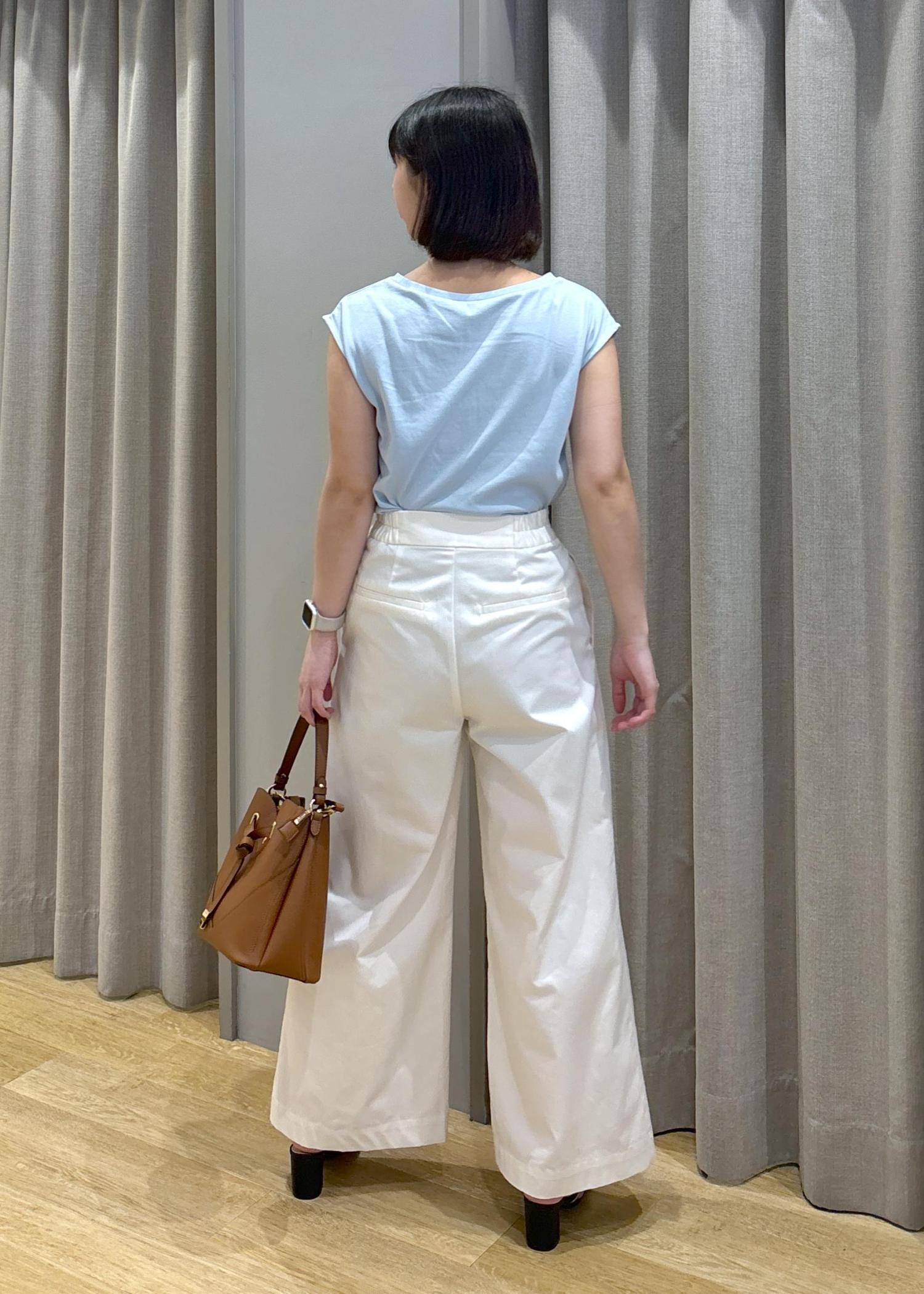 デザイントップスなのでシンプルなボトムと相性が良いです!