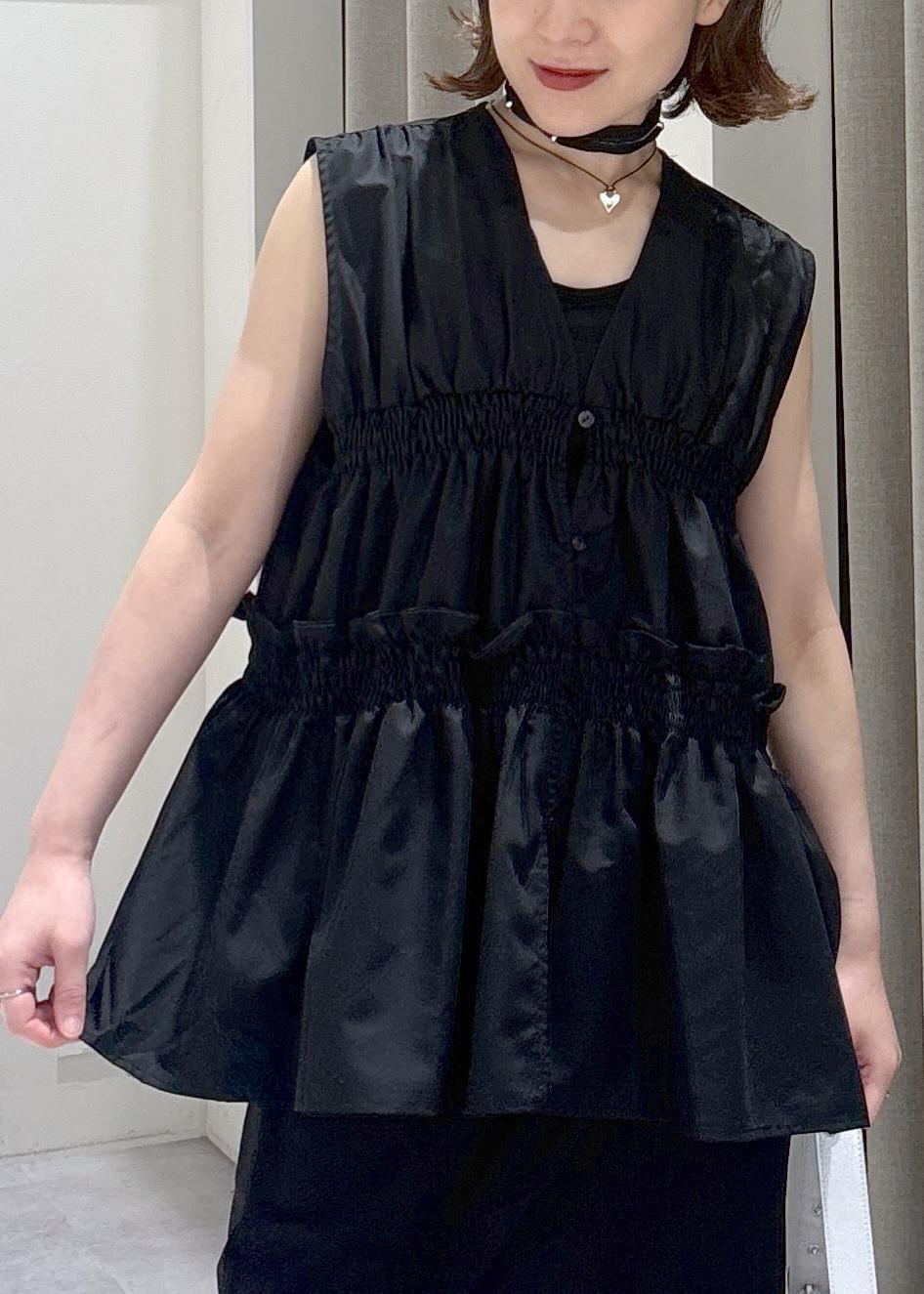 LE CERCLE par ropéフリルギャザーシャツブラック / F¥7,150レビュー膨らみのないペプラムデザイン