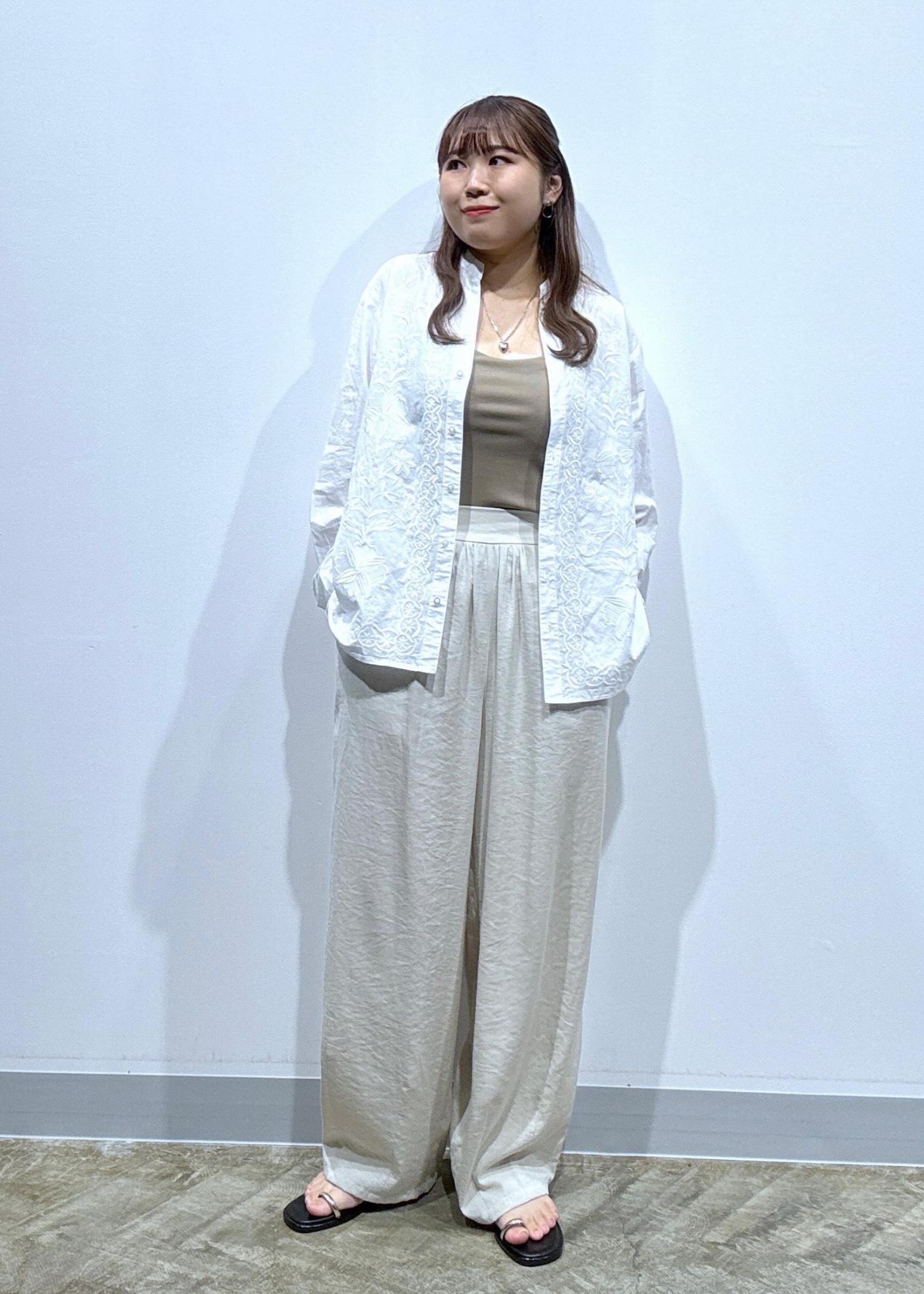 LE CERCLE par ropé麻調リラックスワイドパンツホワイト系 / F¥4,345レビュー通気性抜群!