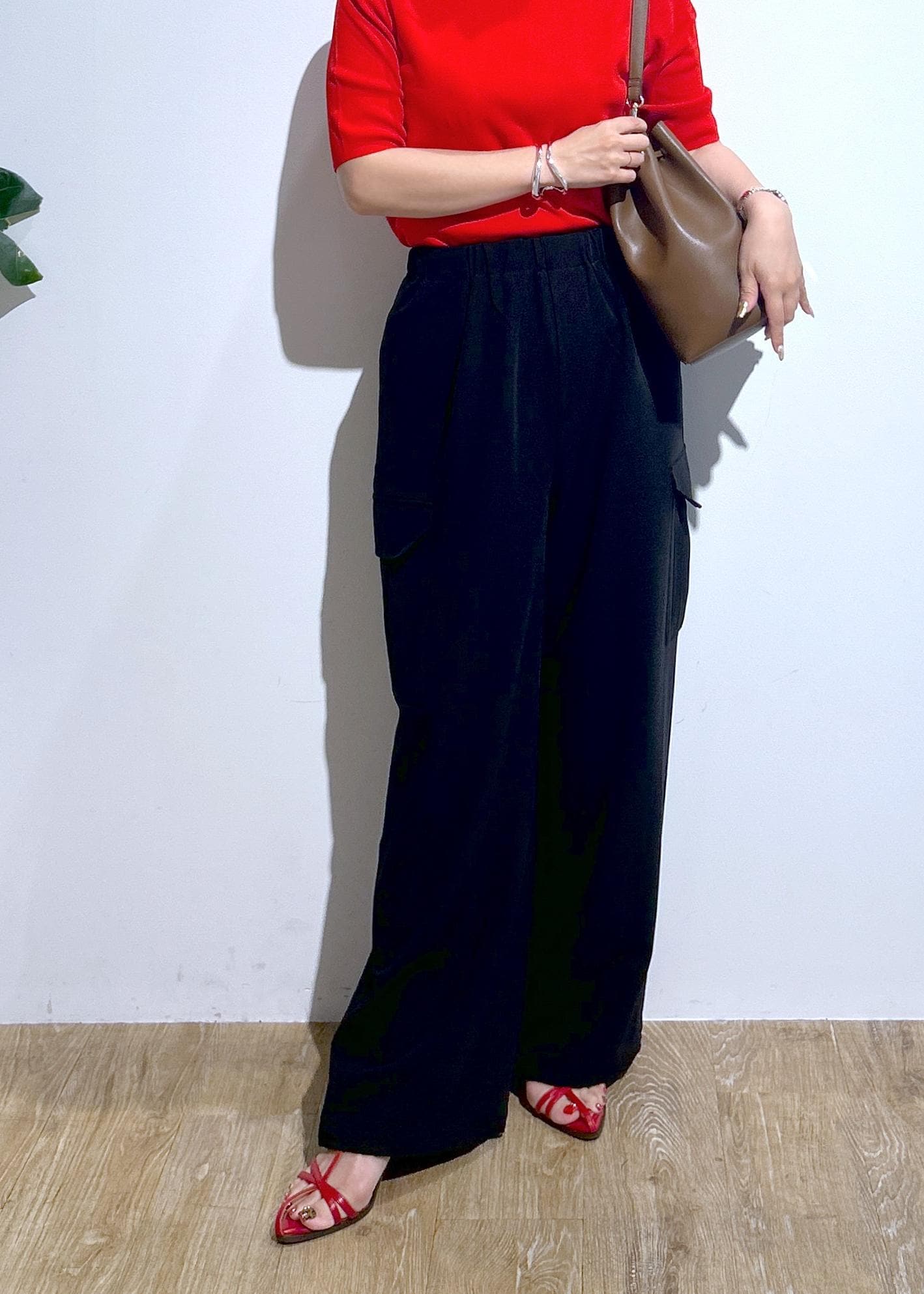 裾部分にドロスト紐があり、キュッと絞ってカーゴパンツ風に履くのも◯