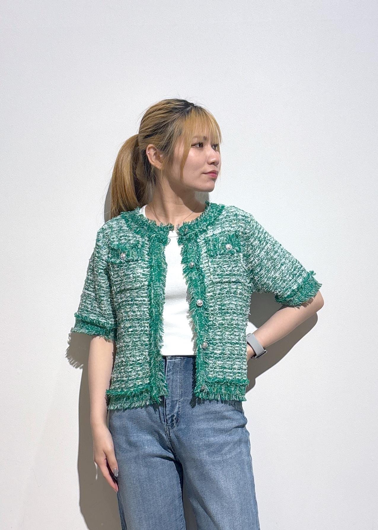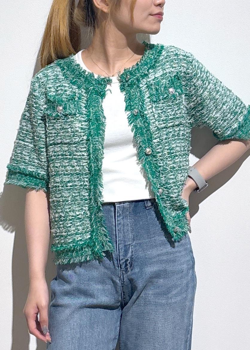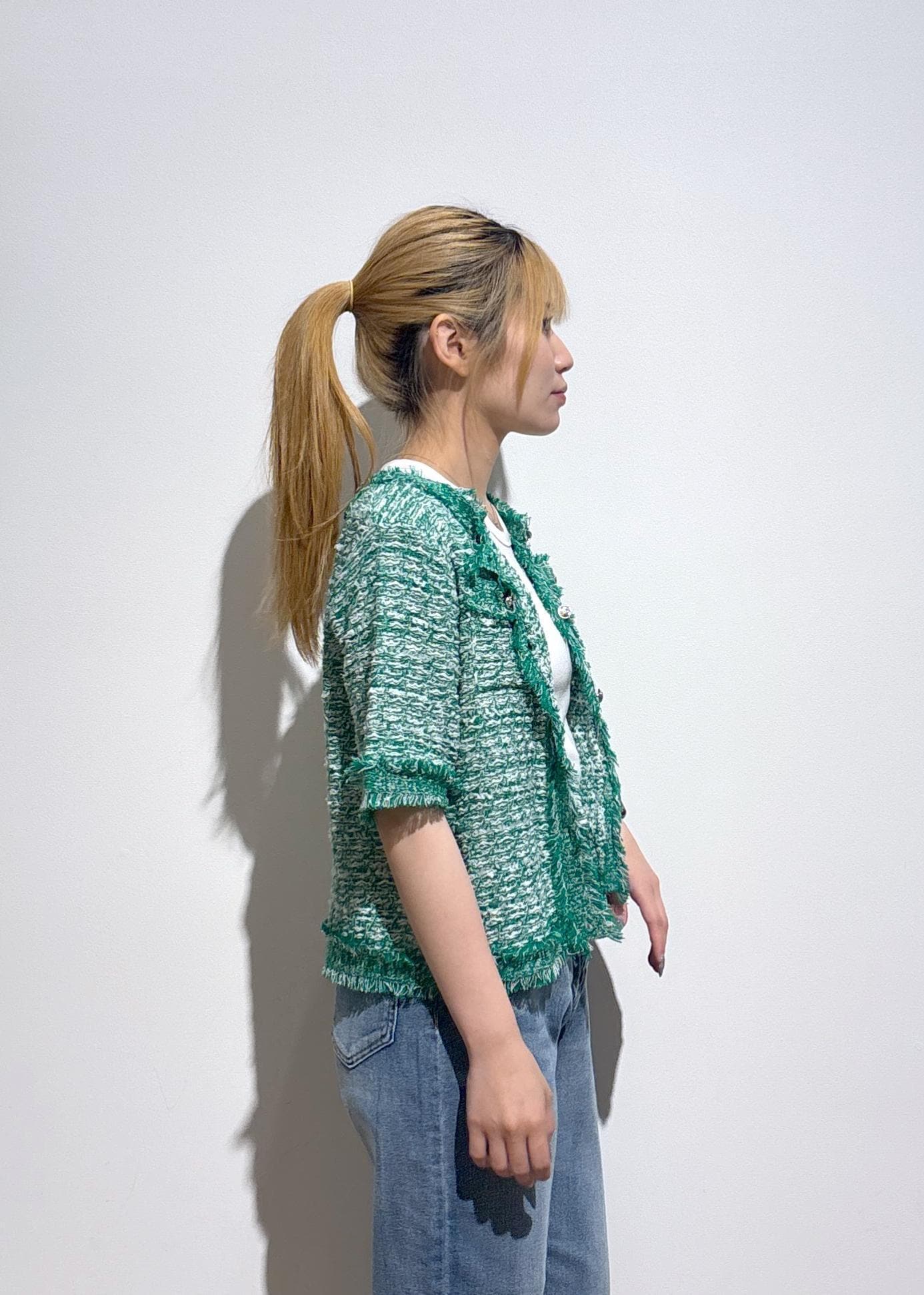 ROPÉ PICNIC【サマー・ツイード】ハーフスリーブカーディガングリーン / 38¥5,489レビュー1枚で着映えするサマーツイードのカーディガン!