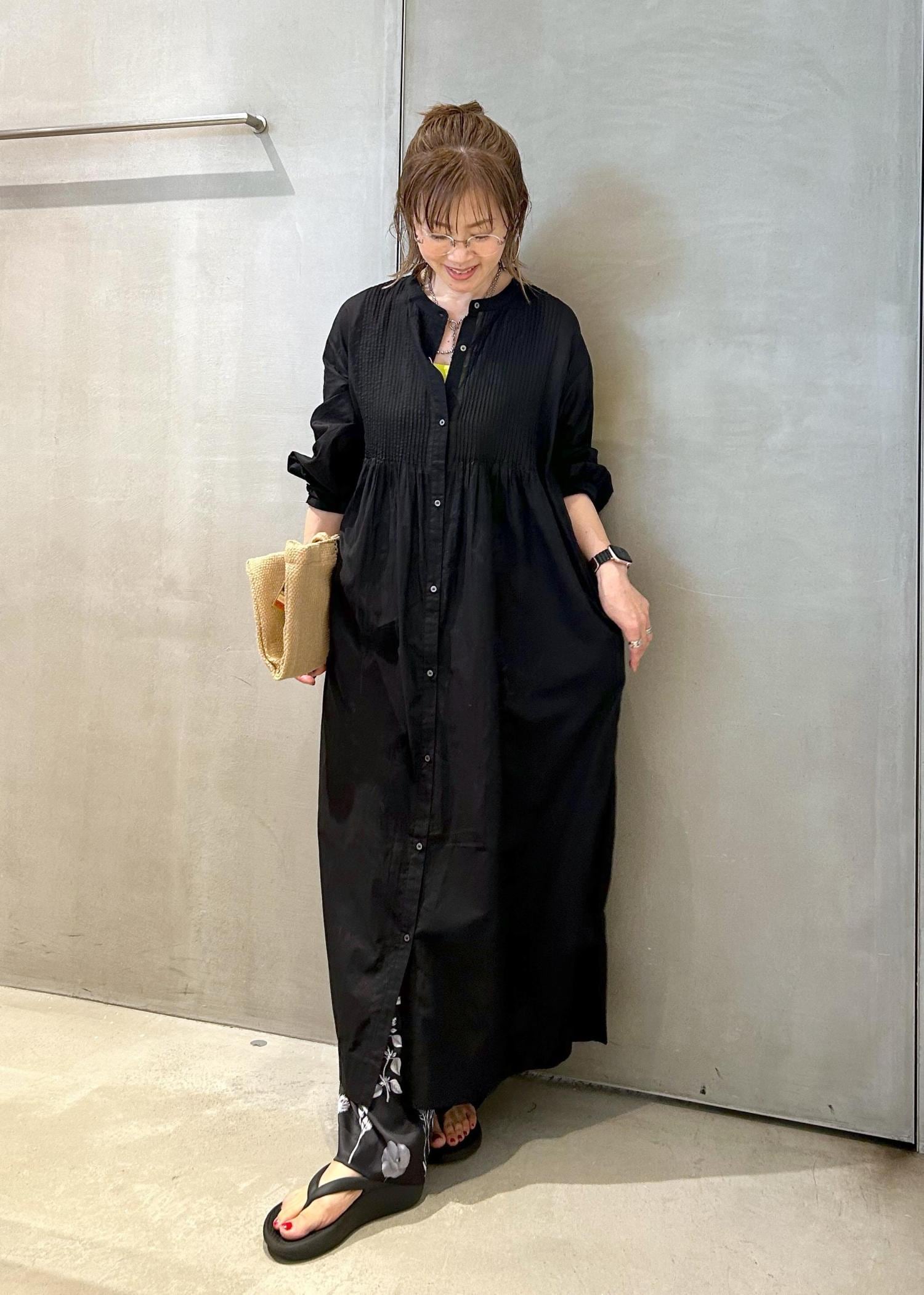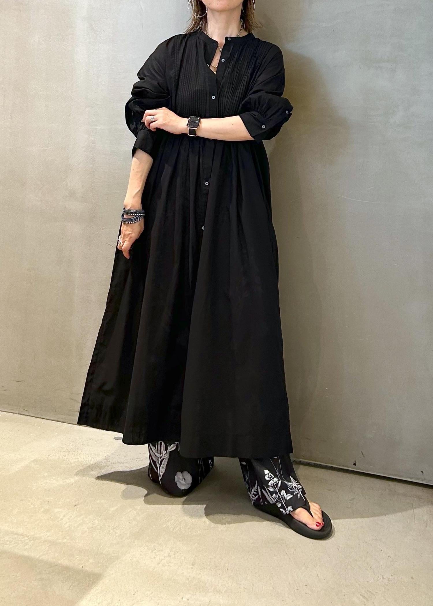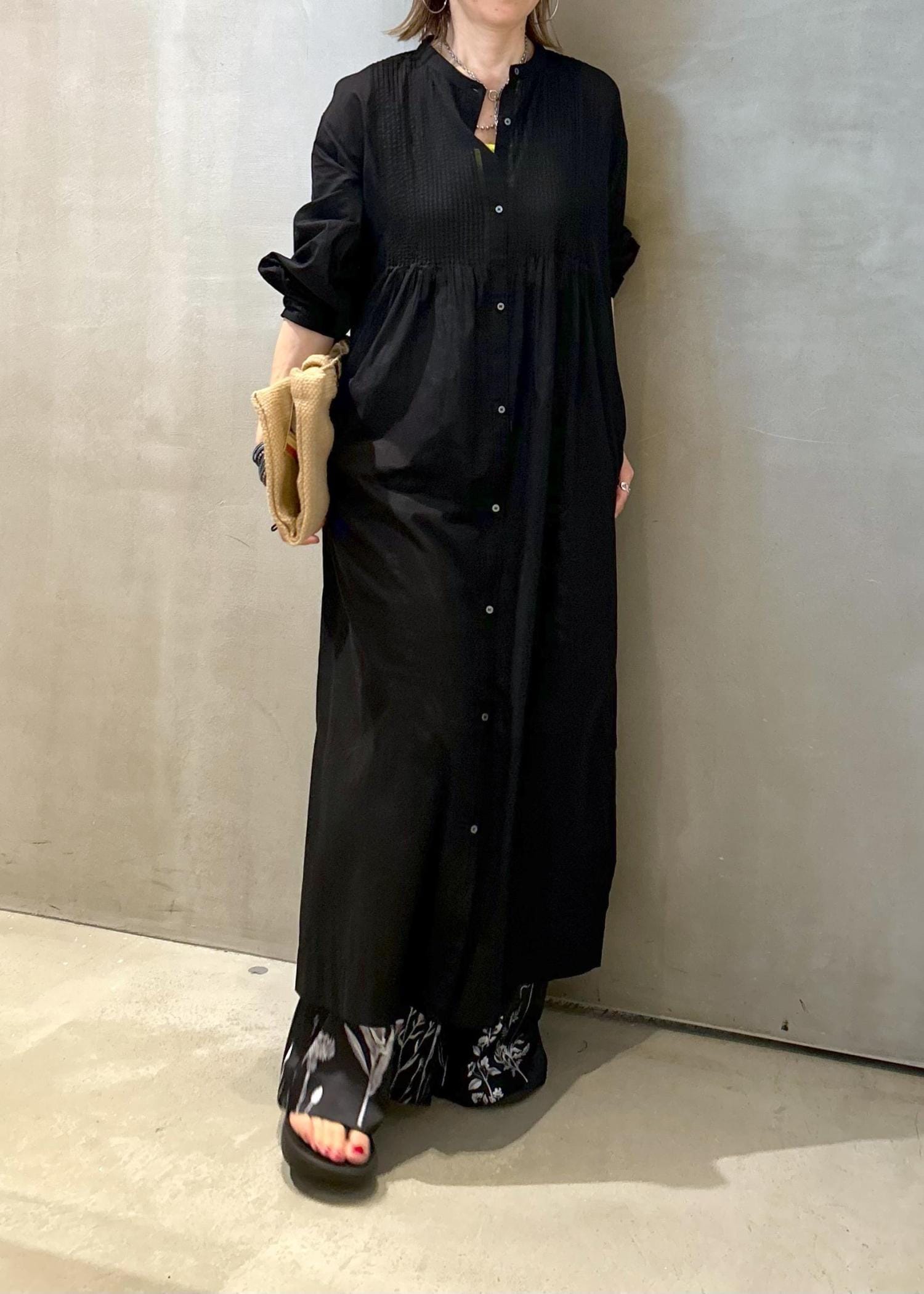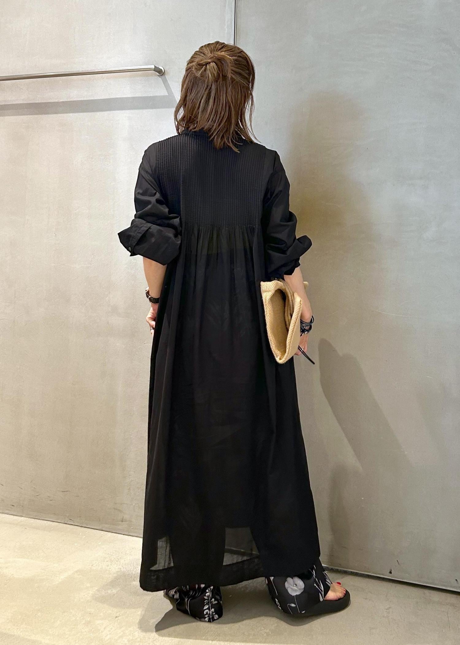 品のある胸元のピンタックがポイントのワンピースを着用しました。