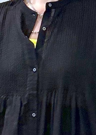 黒でもボトムの柄が透けるくらいシアーなので、ワンピース単体で着用する場合は、インナーが必須です。