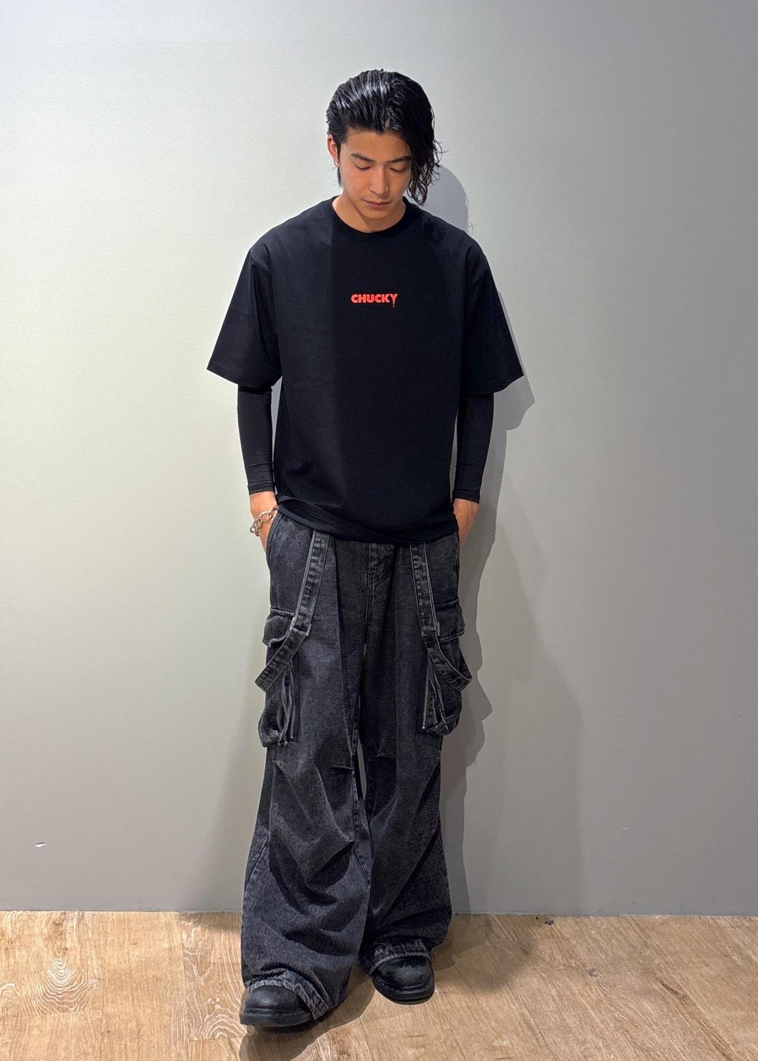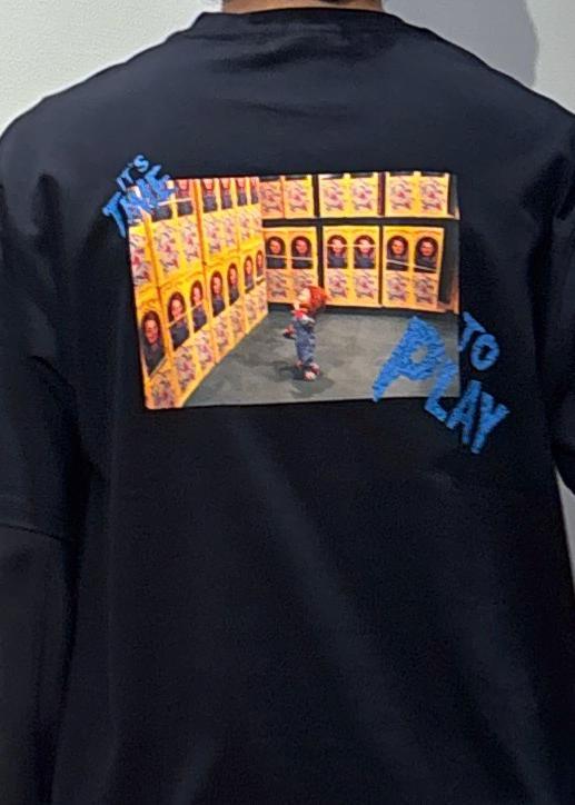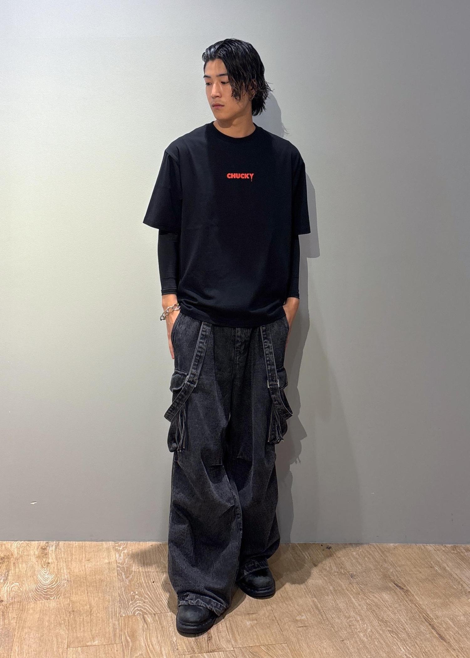 今回は、モノトーンのアイテムで合わせて映画チャッキーの映画に寄せたコーデを組んでみました。