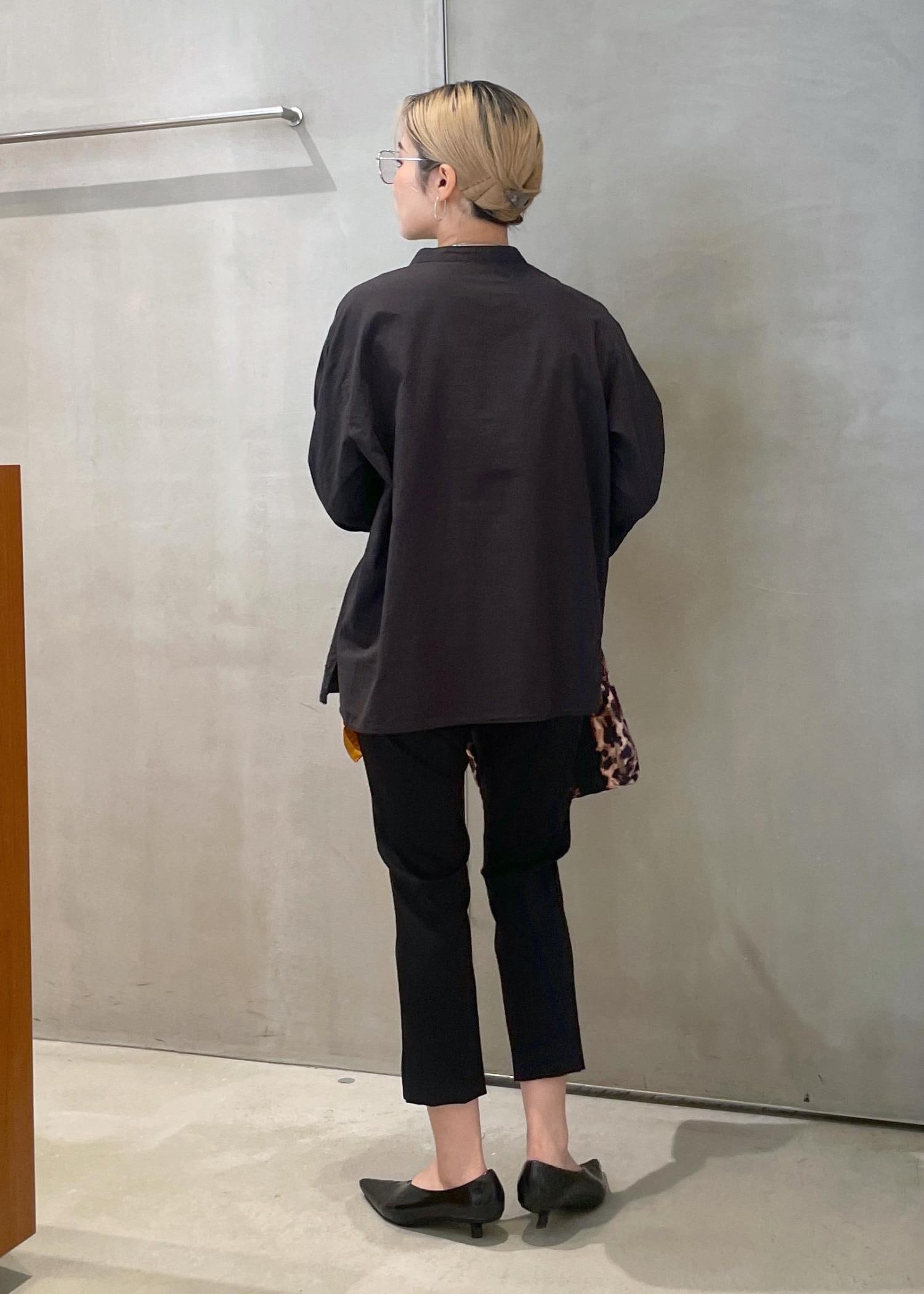 マニッシュなメンズライクな印象でデニムやスラックスに合わせていただすのがおすすめです。前釦で羽織にもなります。