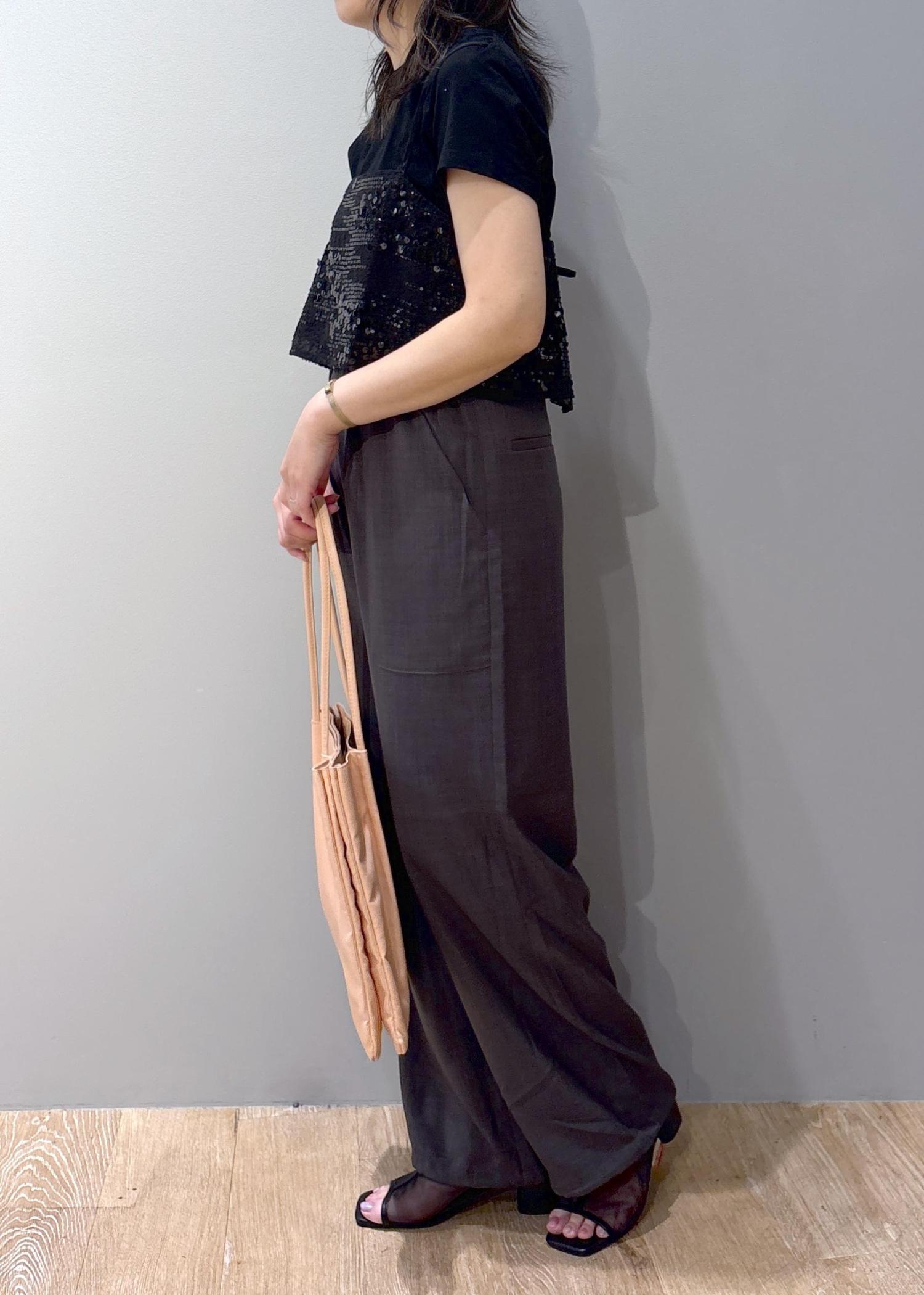 さらっとした素材なのでカジュアルになり過ぎず、ヒール合わせで大人っぽいスタイリングにもぴったり。 -