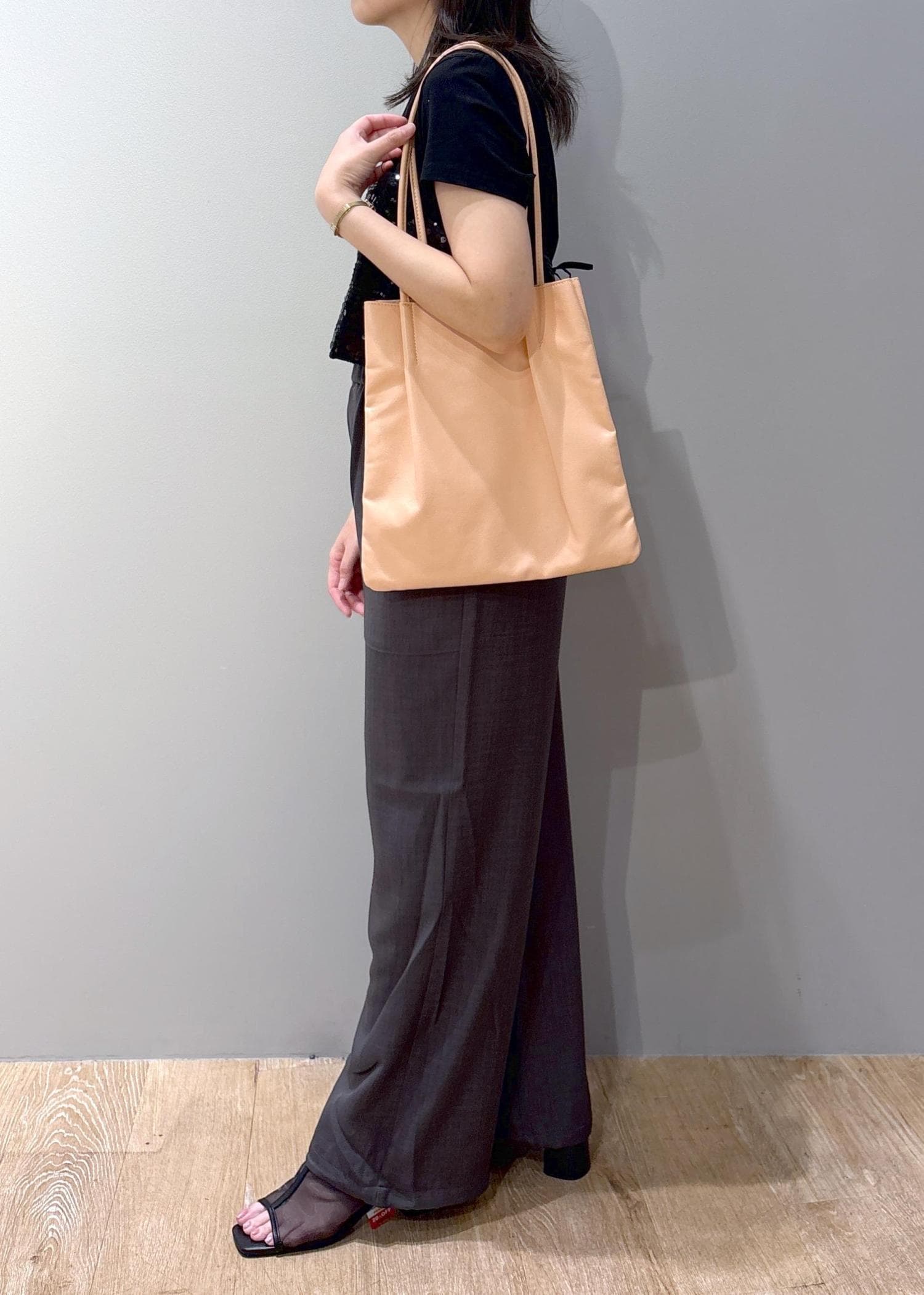 全体的にモノトーンなカラーでまとめてみましたが、ピンク色のトートバッグでちょっと可愛さもプラスしてみました♩