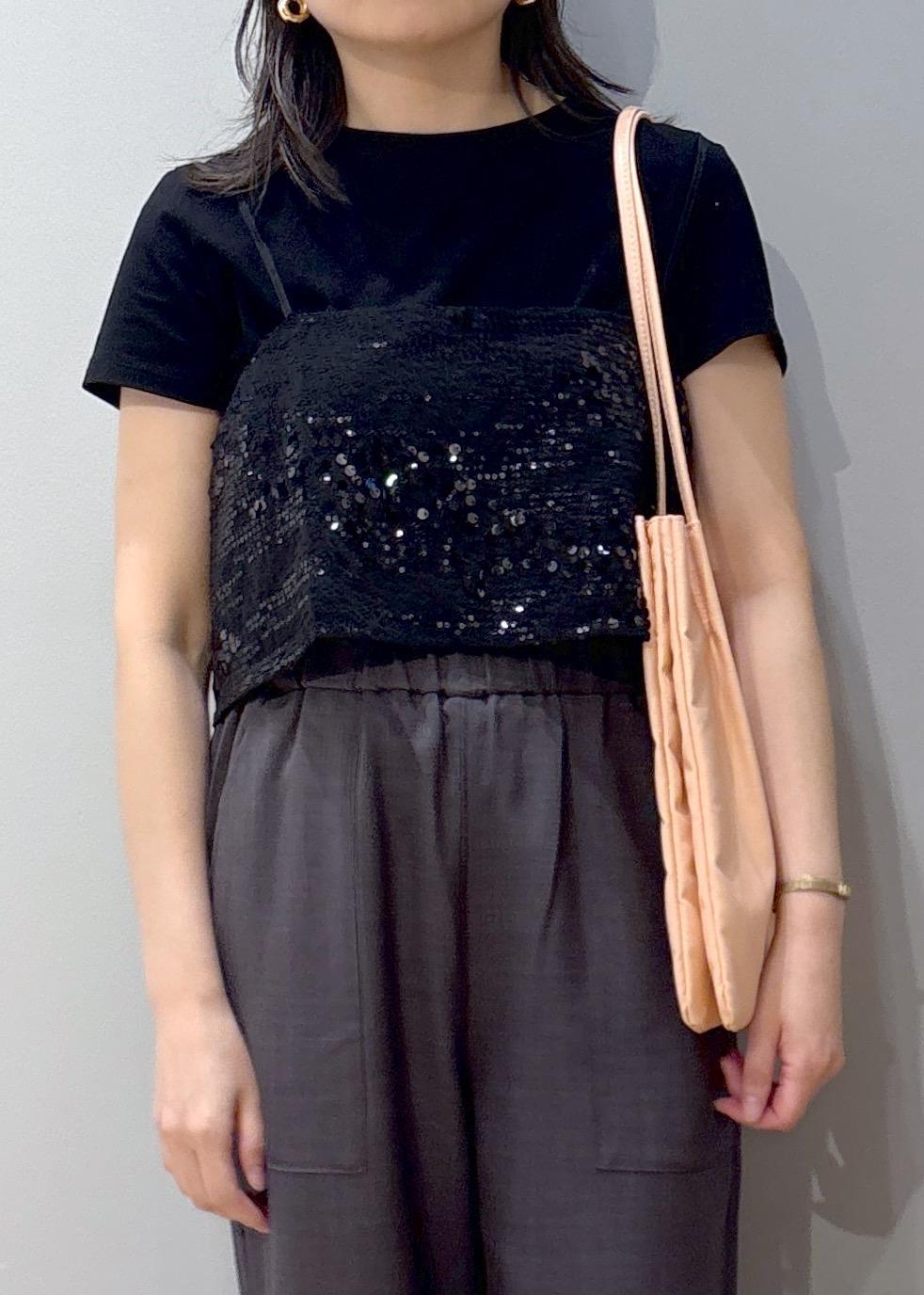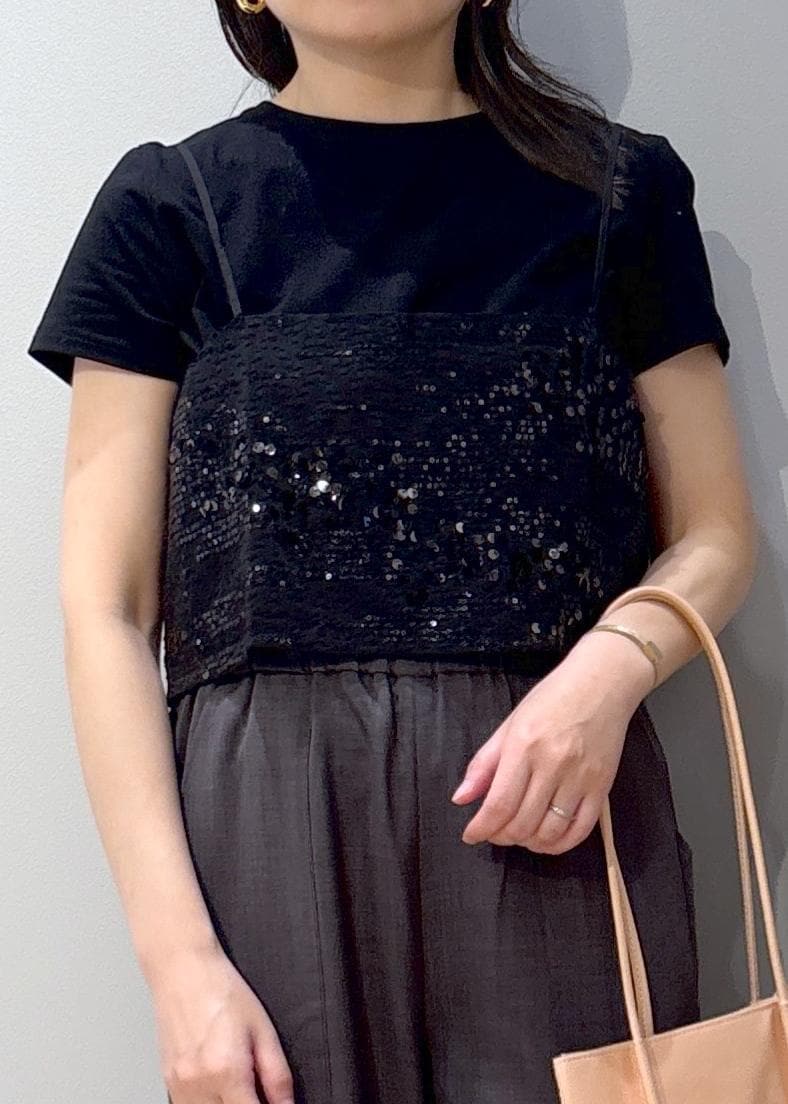 アウトレットROPÉ PICNICスパンコールビスチェ付きカットトップスブラック / 38¥2,497レビュースパンコールのビスチェとTシャツのセットアイテム。