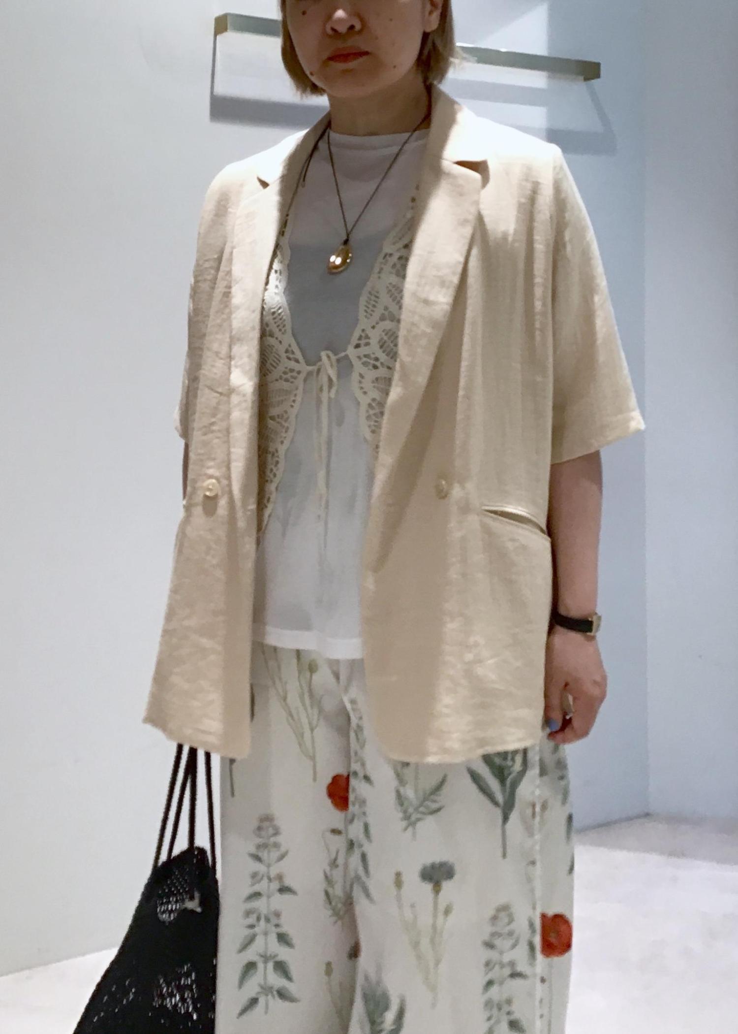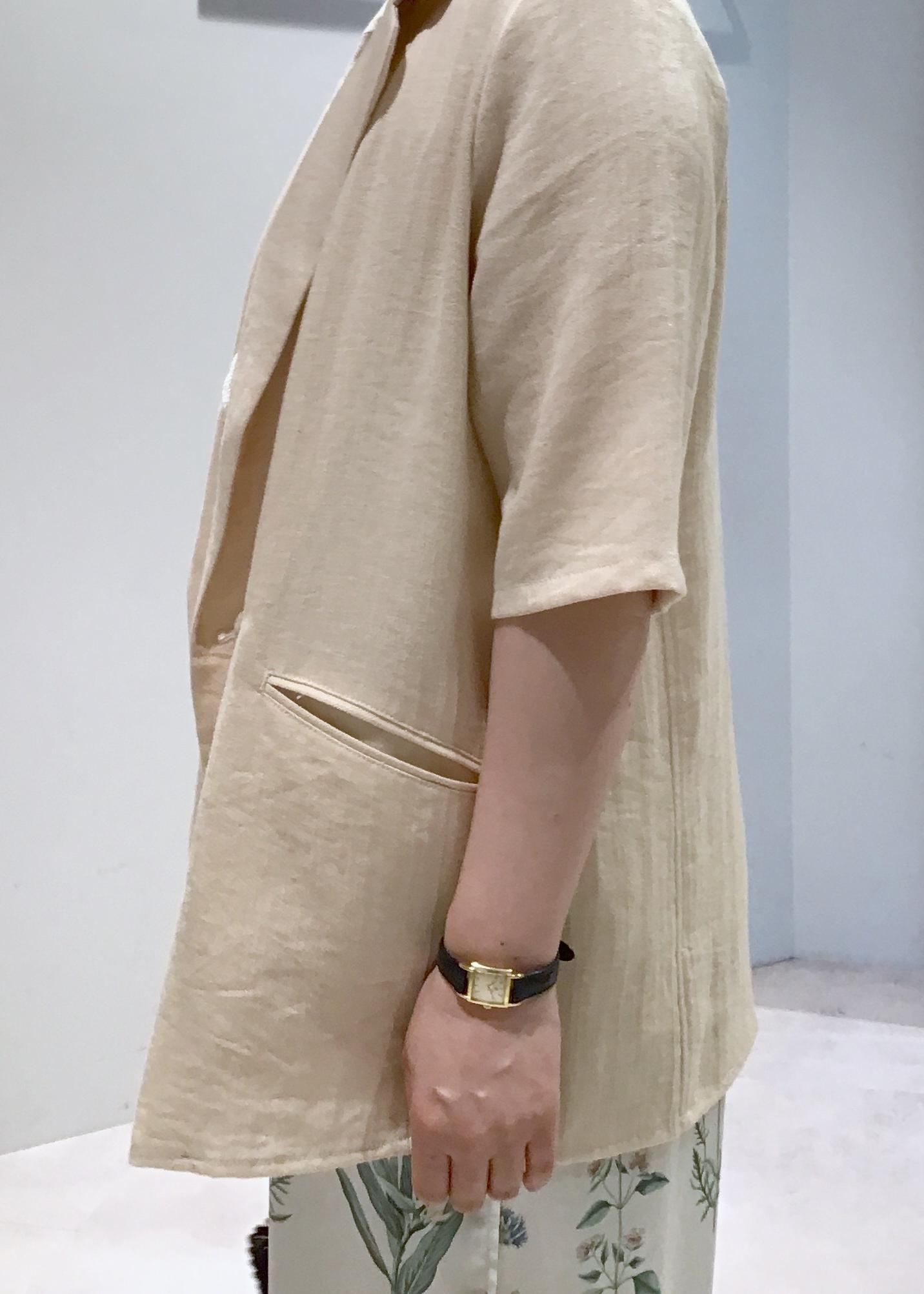 LE CERCLE par ropé麻調ダブル半袖ジャケットキナリ / F¥9,790レビュー軽くさらりとした肌触りで、暑い時期にも快適な着心地のジャケット。