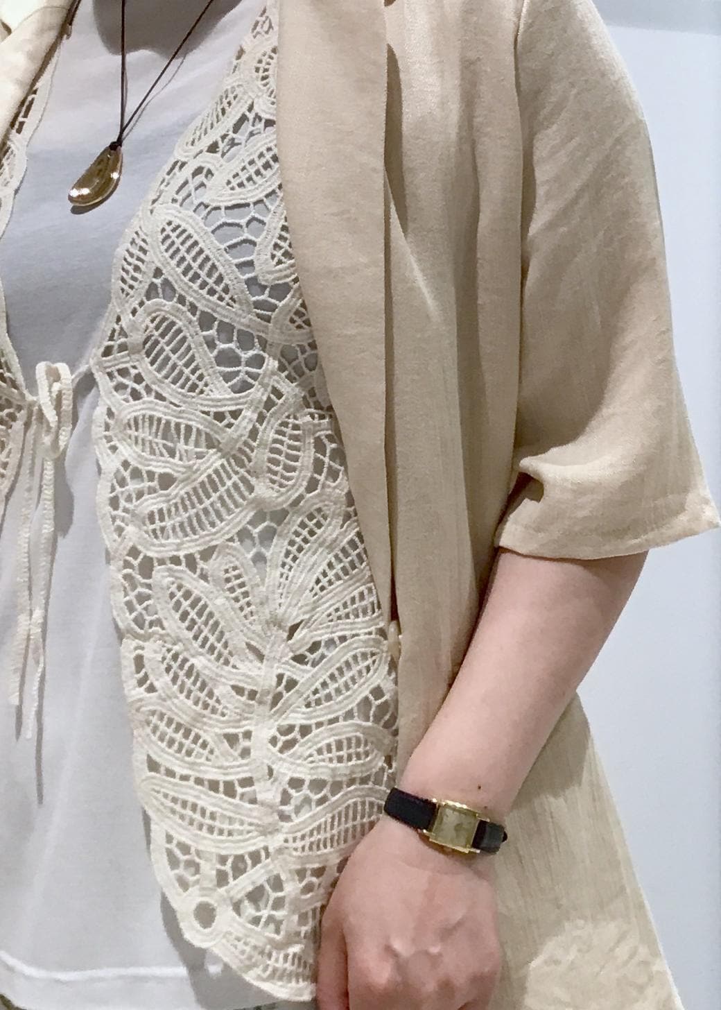LE CERCLE par ropéレースベストベージュ / F¥6,050レビュー厚みのないレース素材でレイヤードしてもすっきりと着用できます。