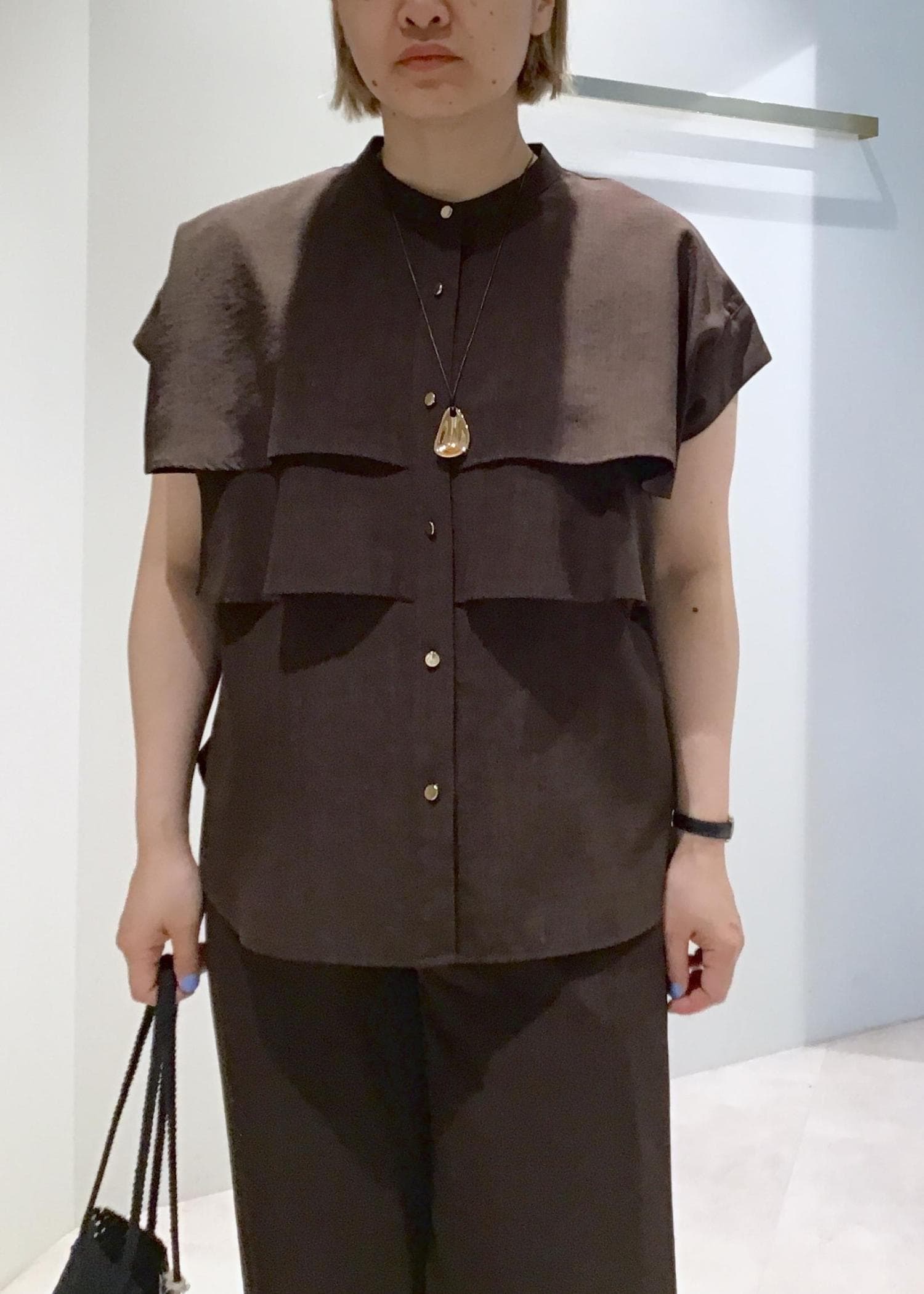LE CERCLE par ropé【セットアップ対応】タンブラーブッチャータックフリルブラウスダークブラウン / F¥8,690レビュー夏場でも風通しのいいゆったりとしたシルエット。