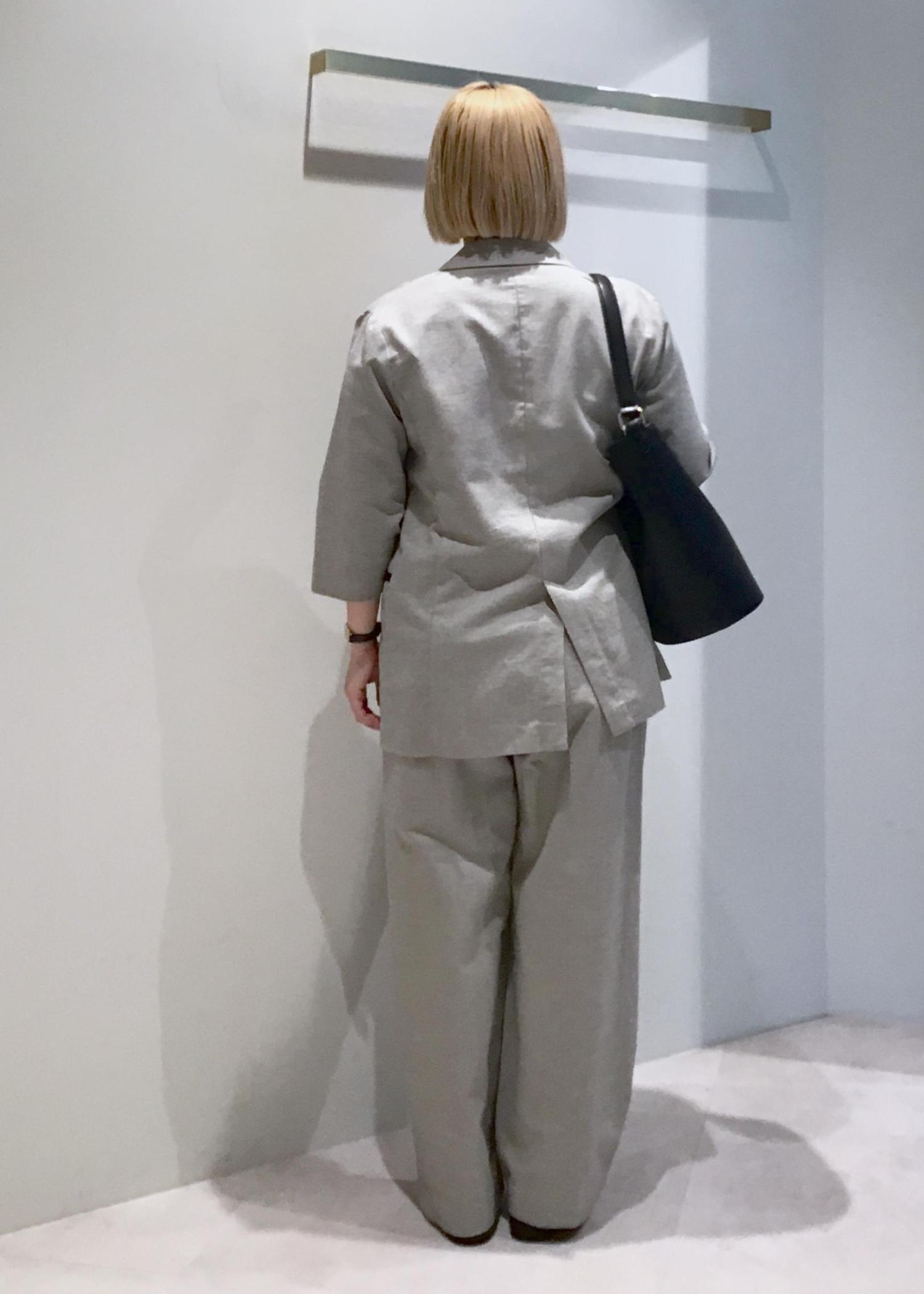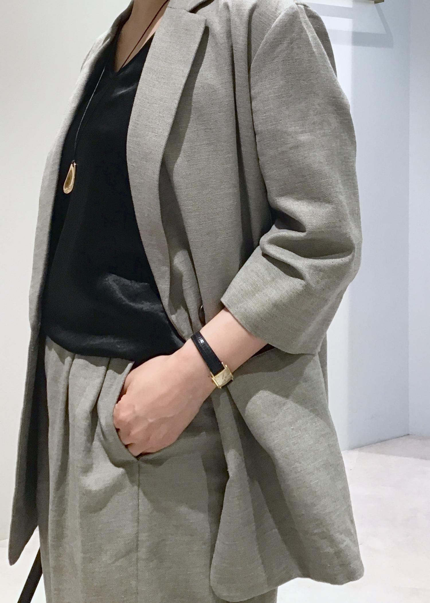 適度な張り感のある素材できれい見えしますが、ラフに着用することも出来る楽ちんな着心地です。 -
