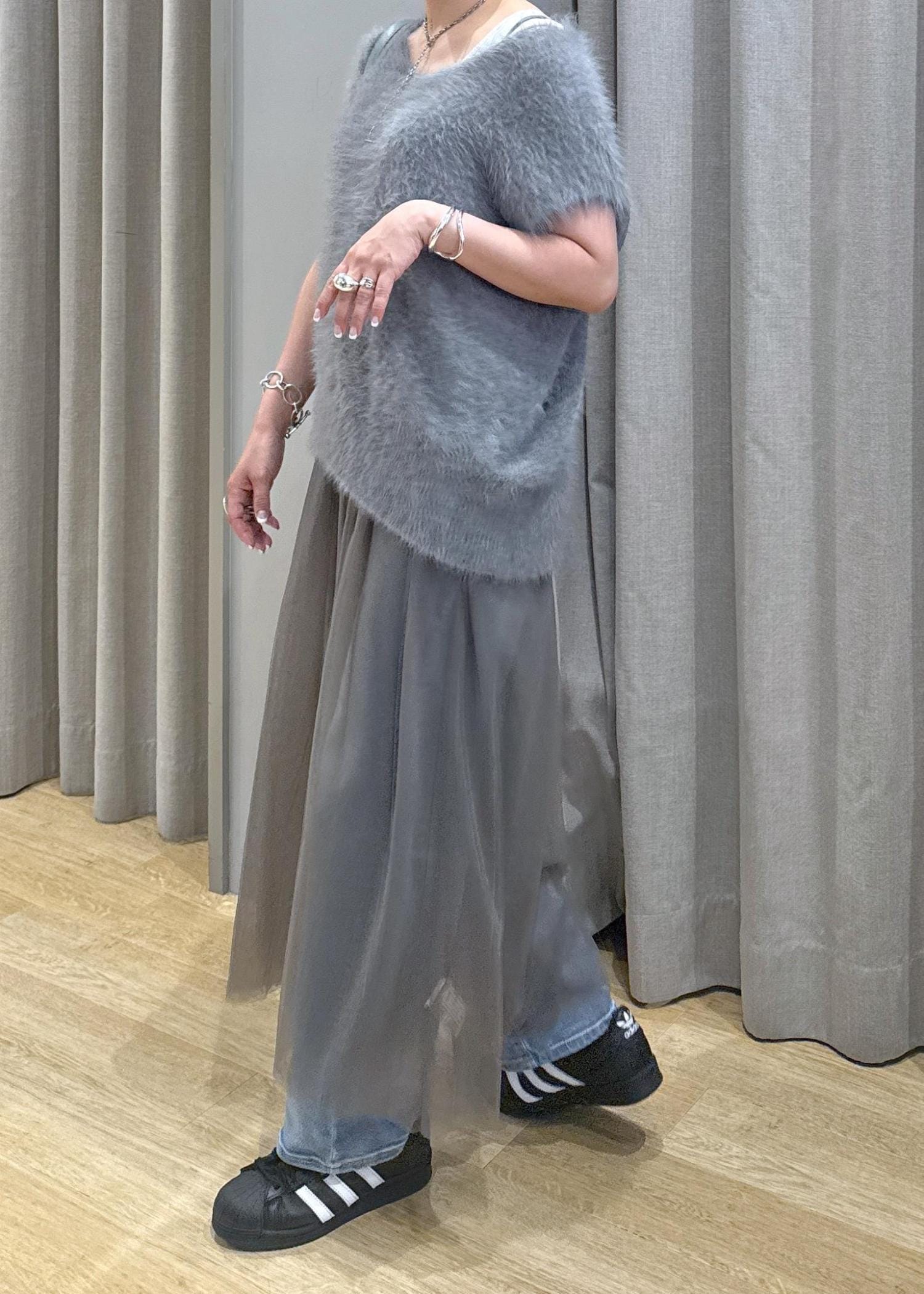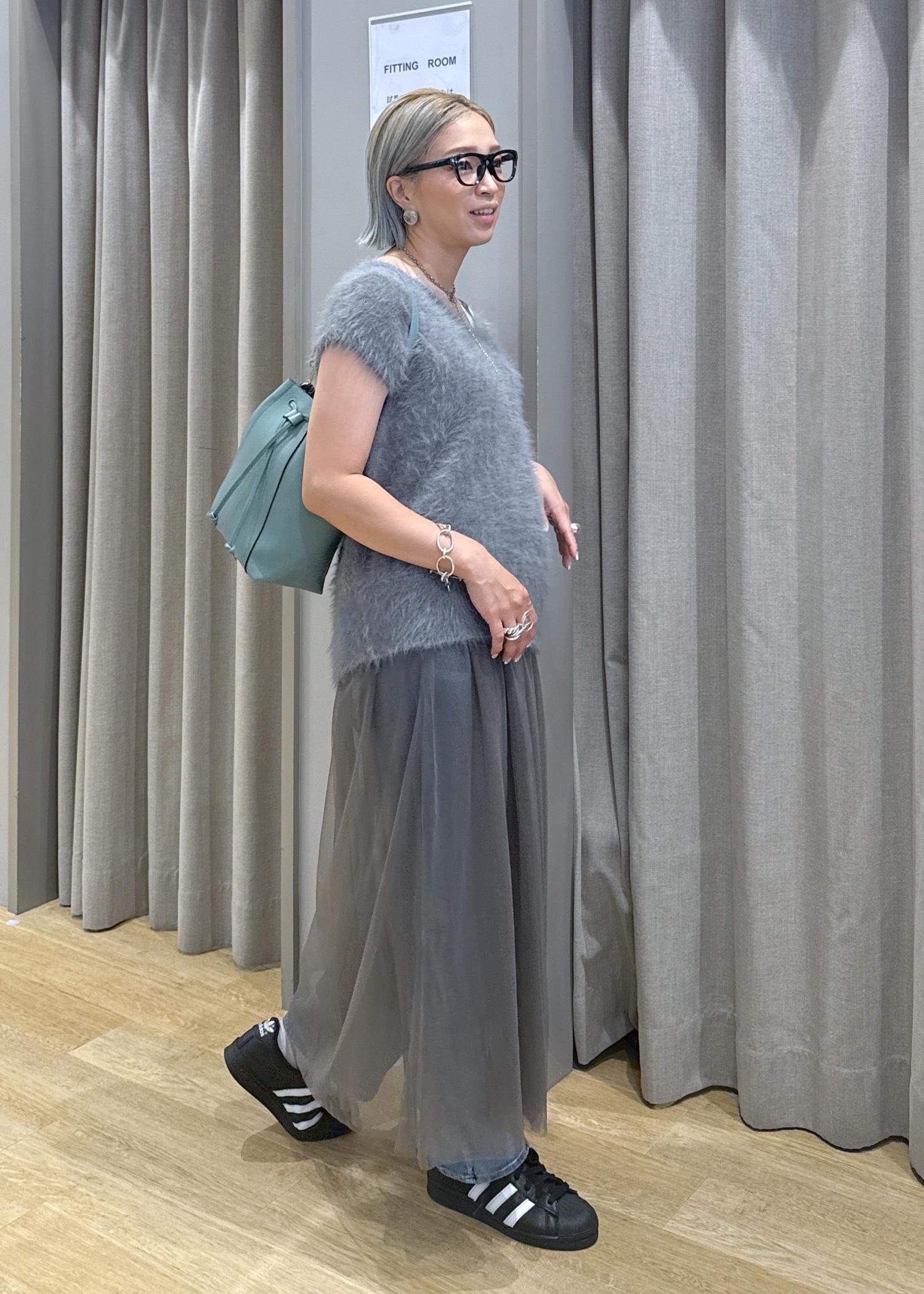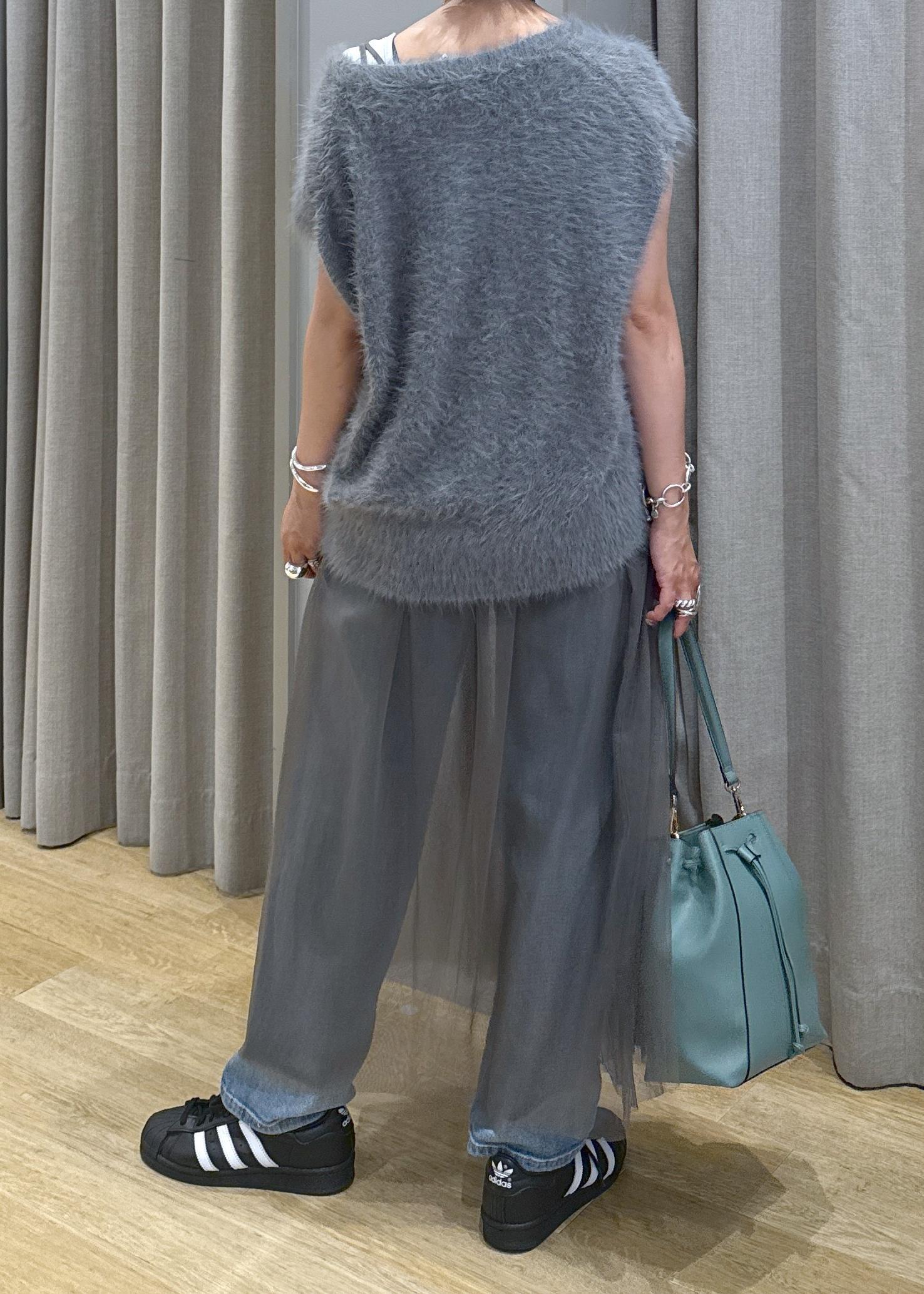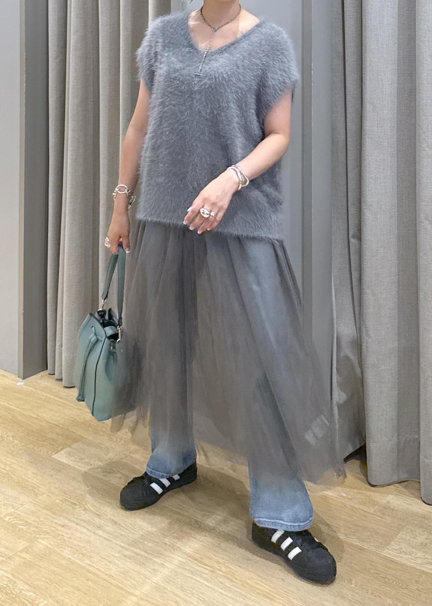 チュールとファーで、秋を意識したグレーのワントーンデニムコーデにしてみました♪