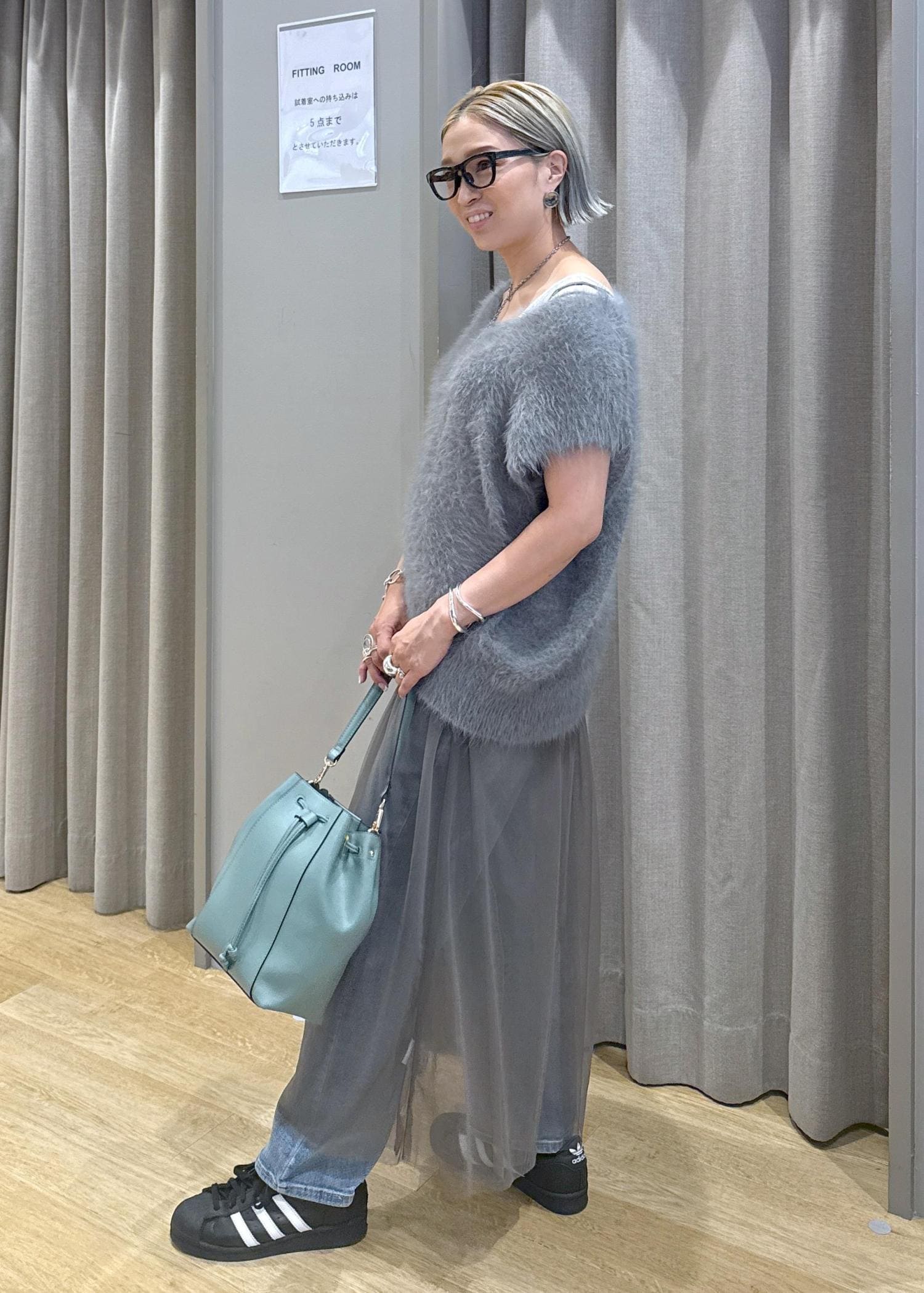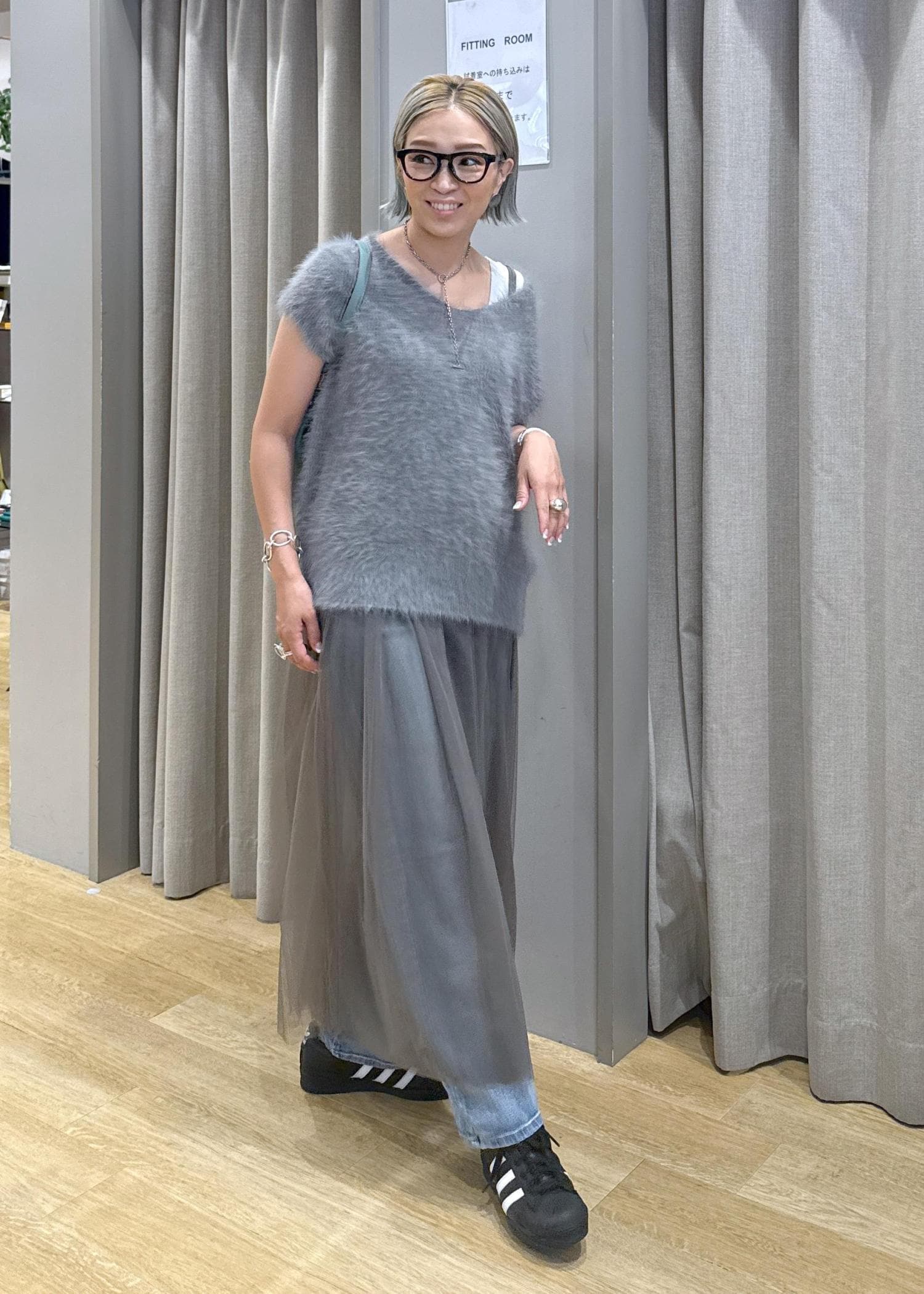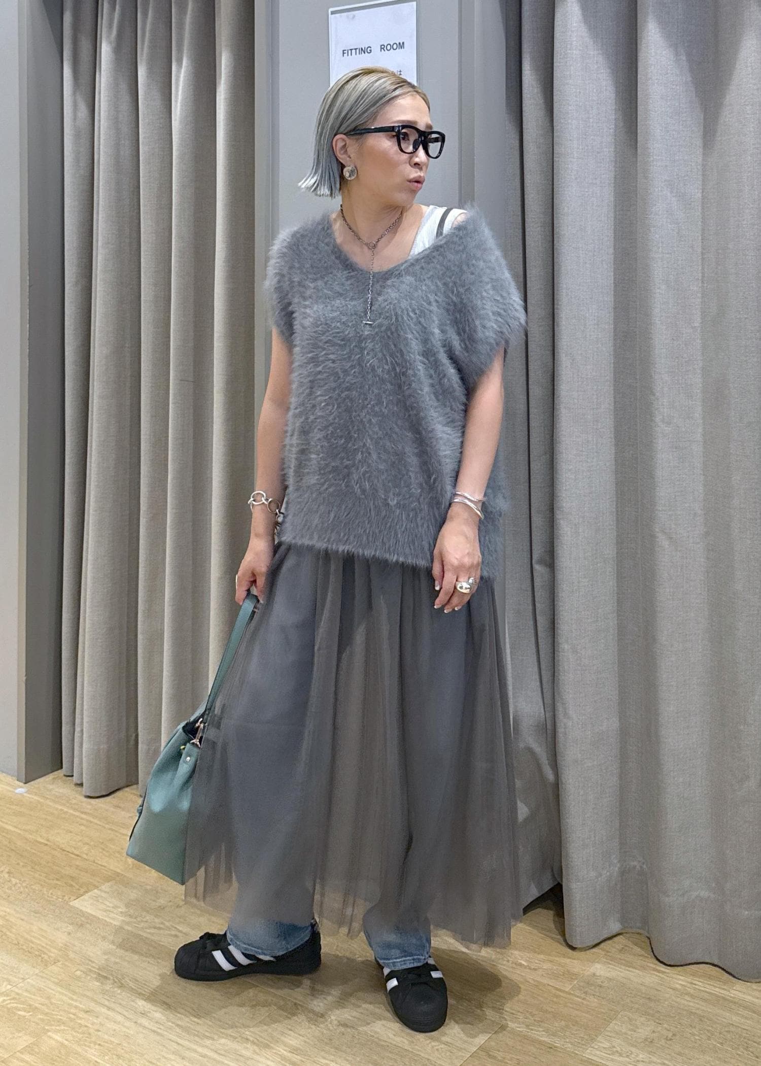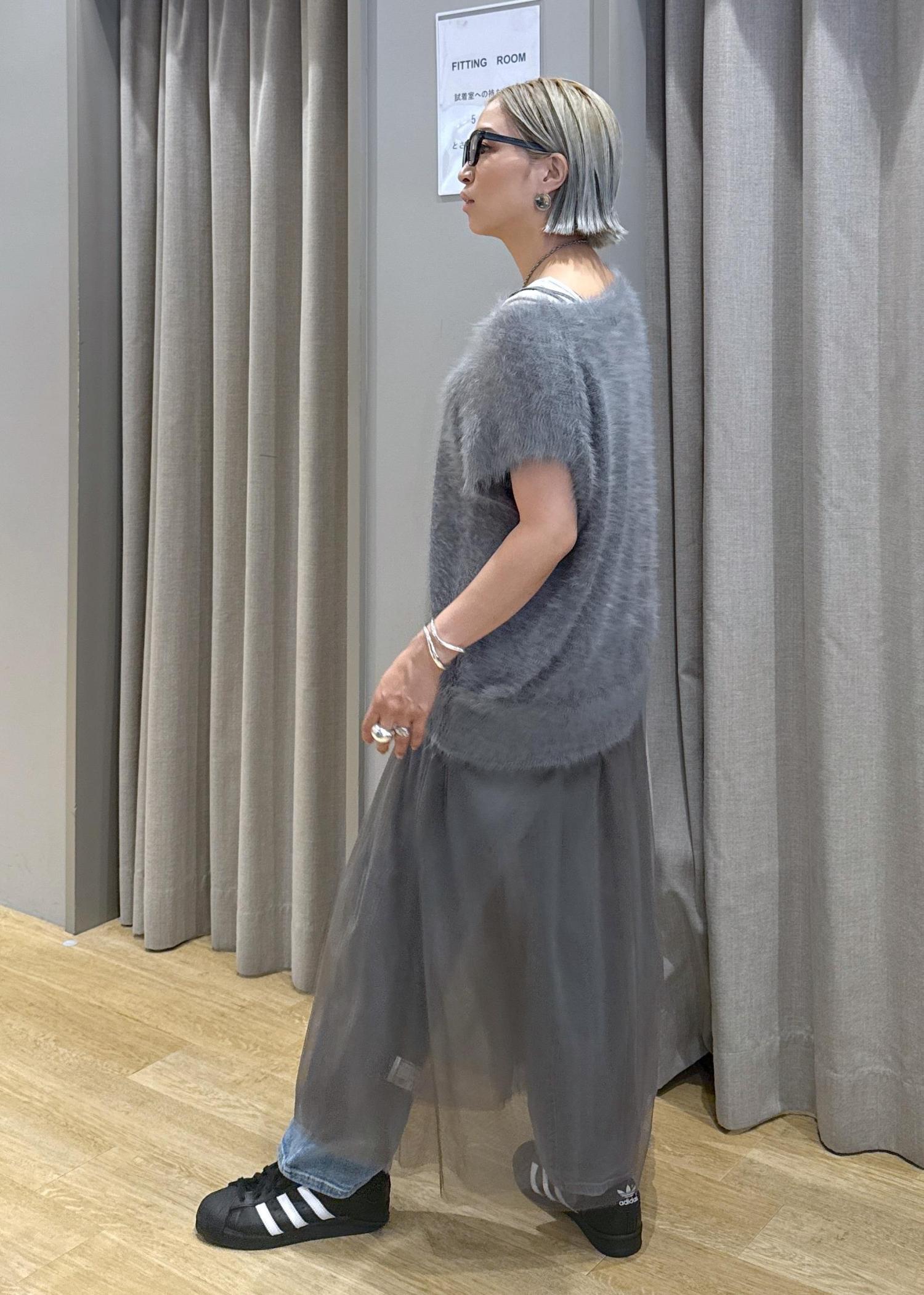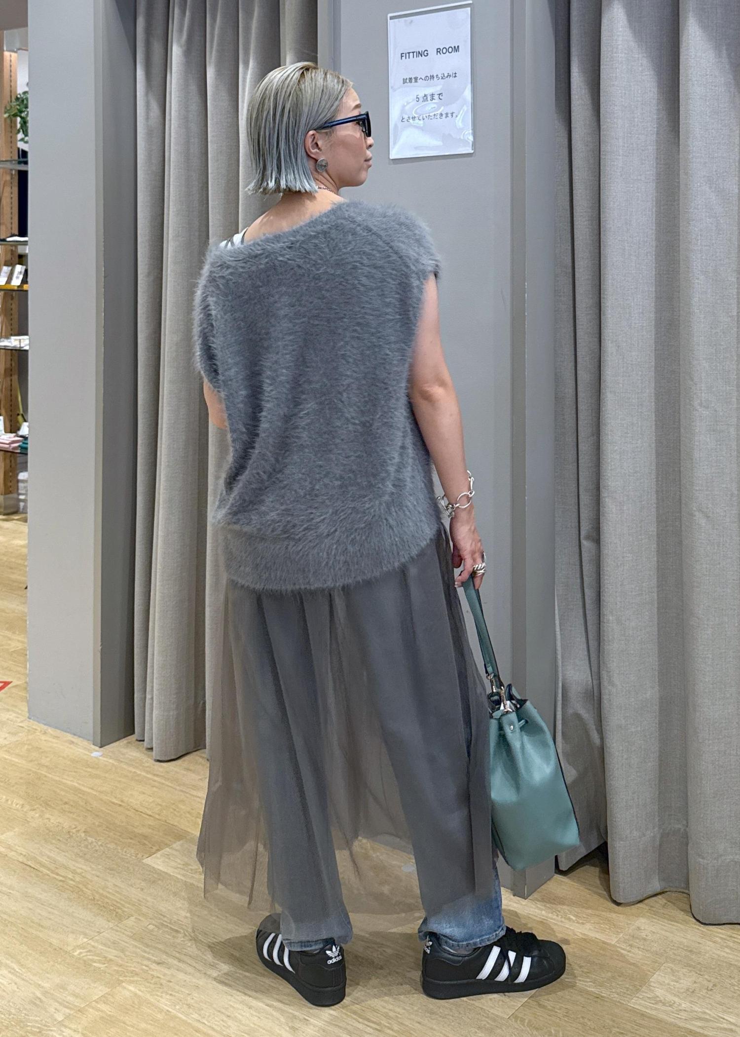チュールとファーで、秋を意識したグレーのワントーンデニムコーデにしてみました♪