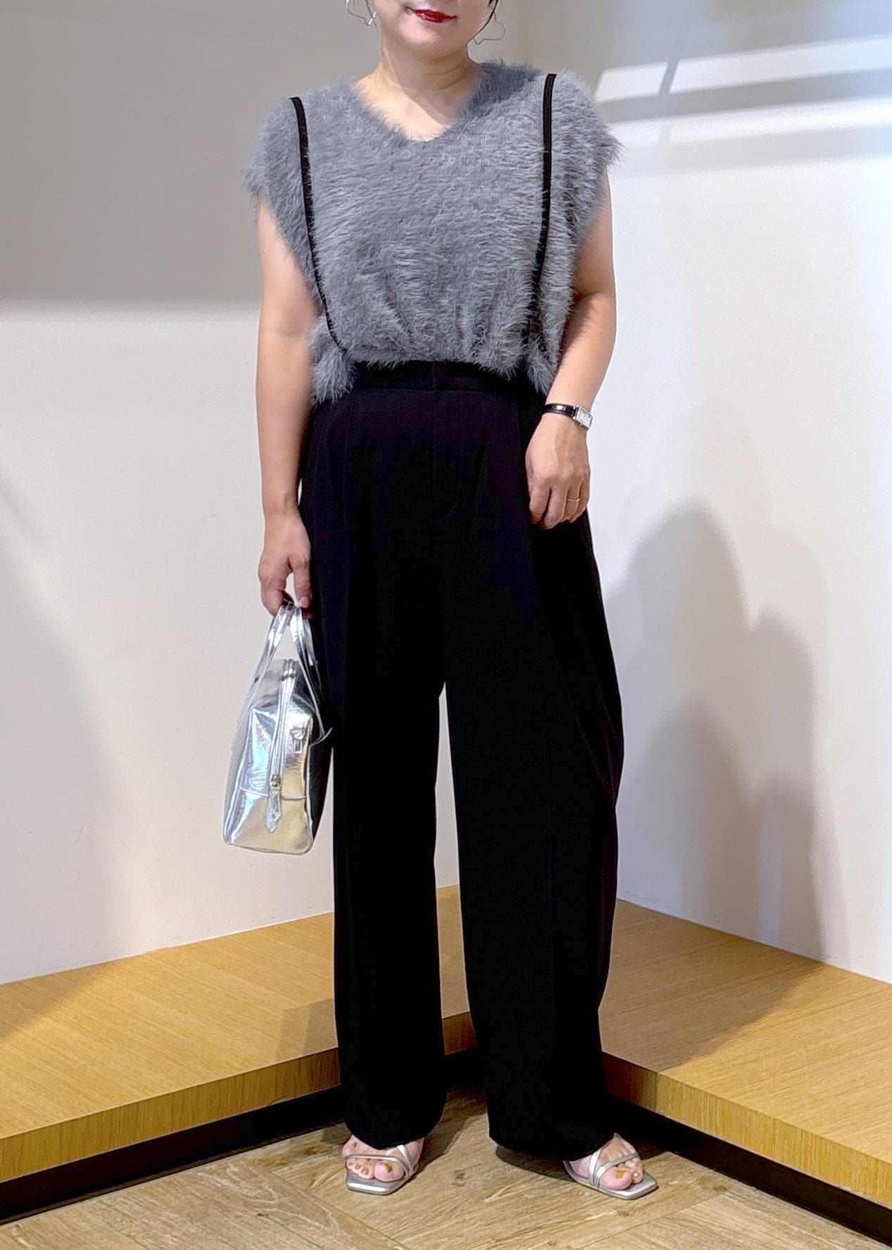 カジュアルに見えがちなサスペンダー付きパンツですが、こちらは細めのサスペンダーで女性らしく着用できるところがお気に入りです♪
