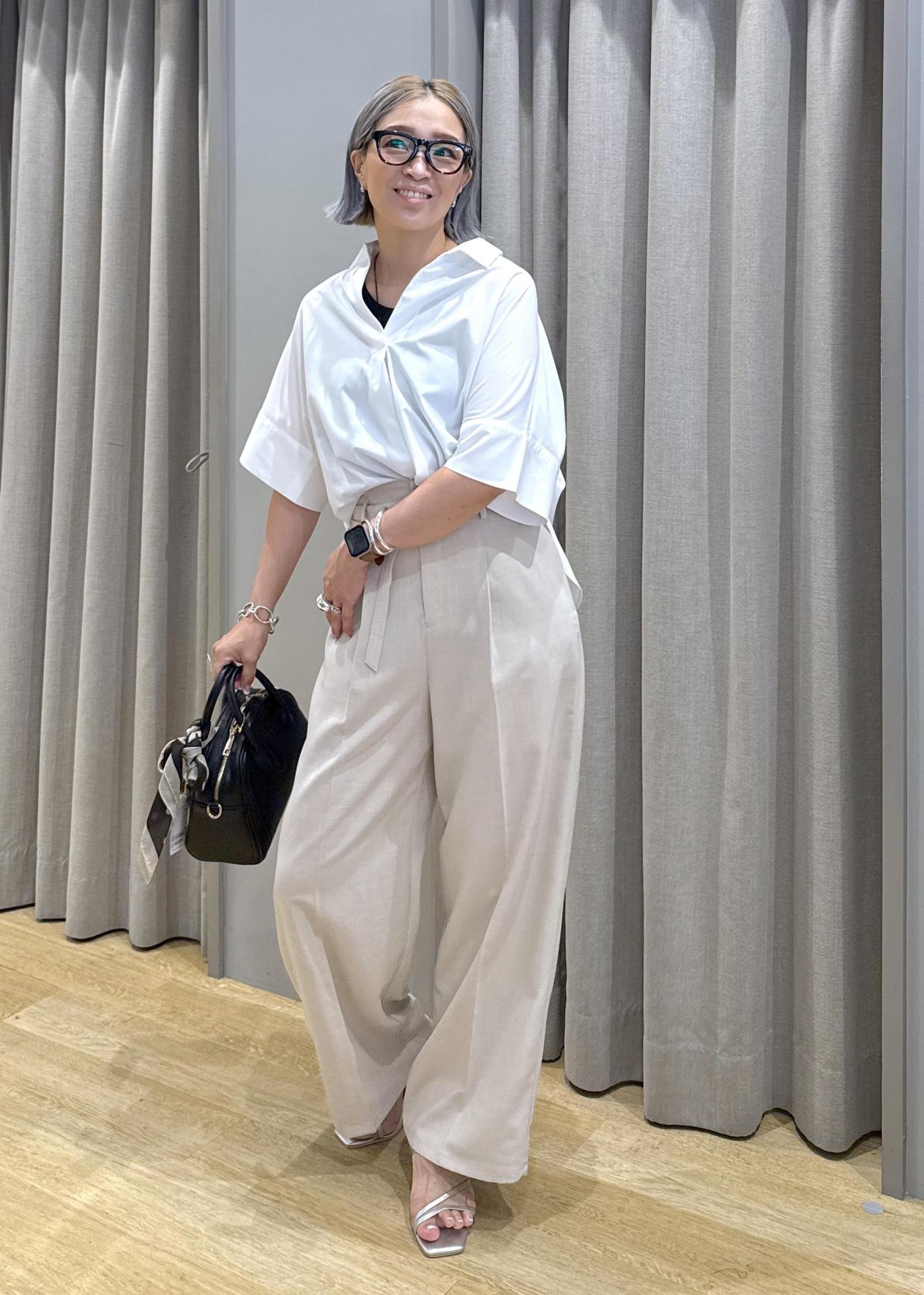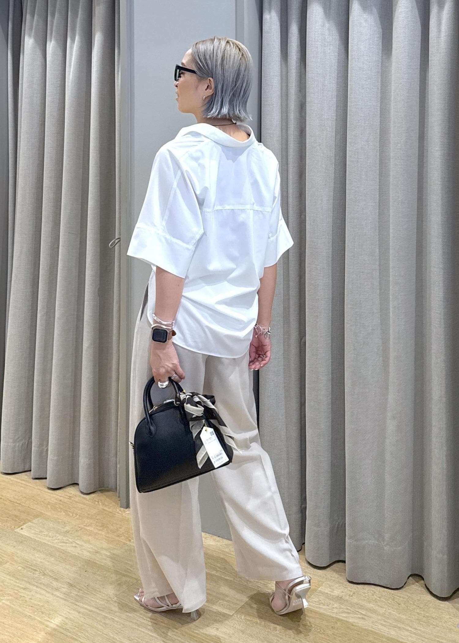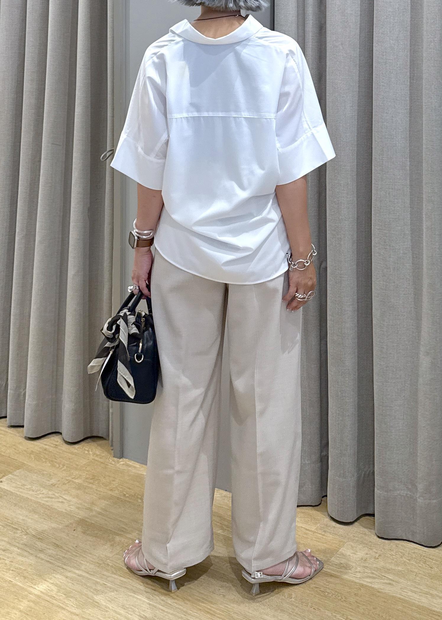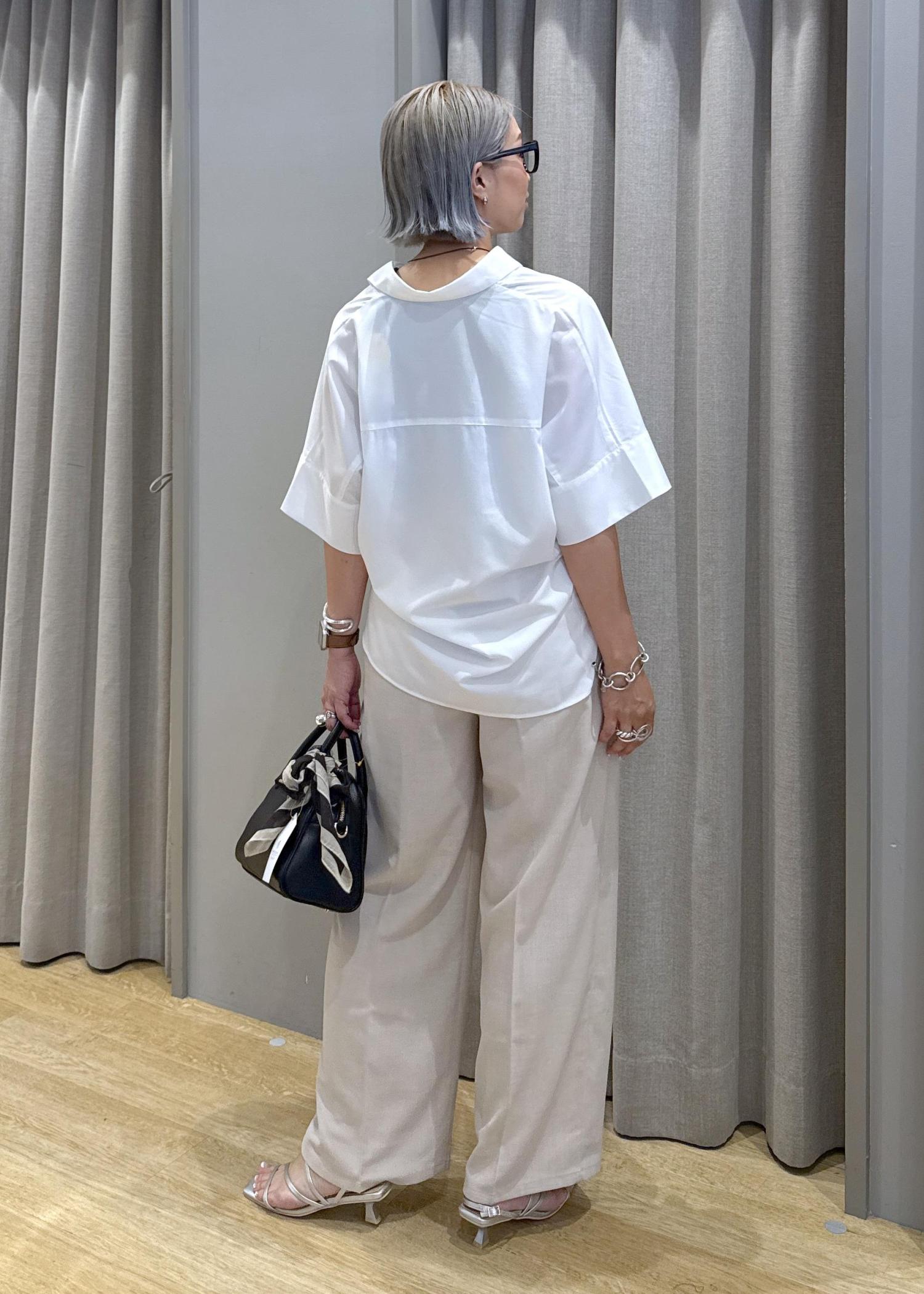さり気なくふんわりとしたシルエットで体型カバーをしてくれるスキッパーシャツ。