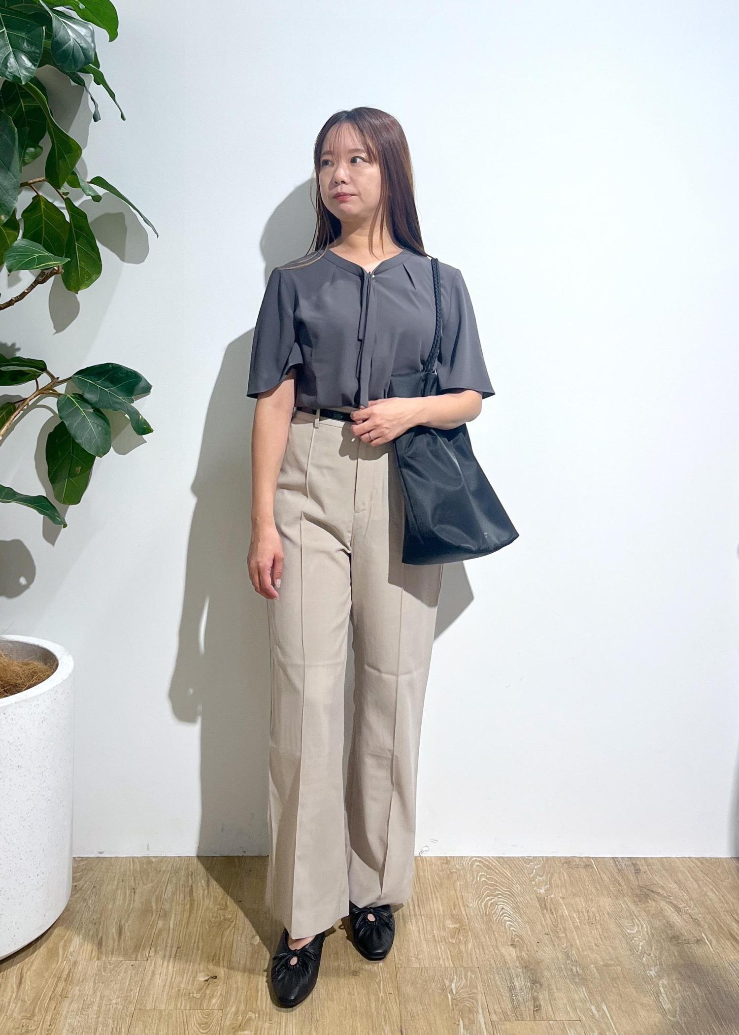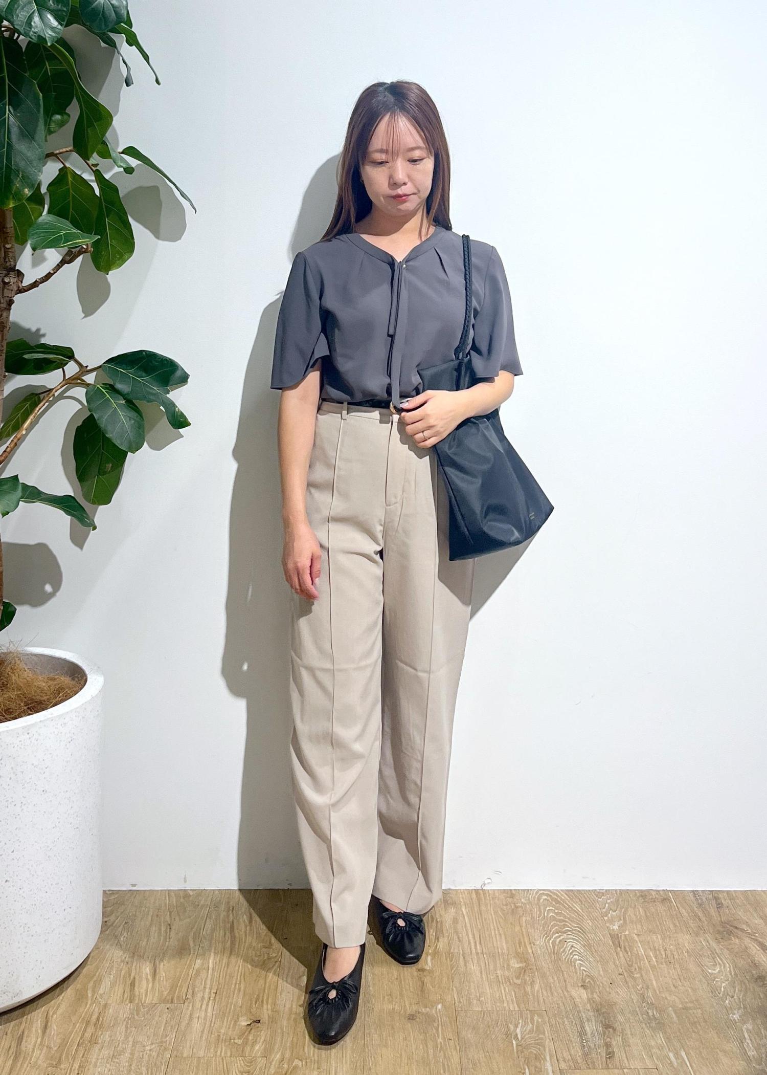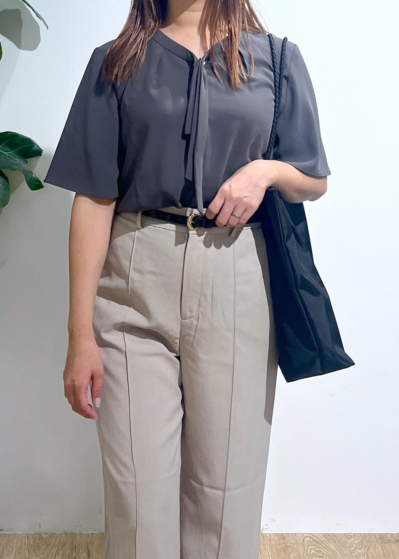 ROPÉ PICNIC2サイズ展開/メタルボタンリボンタイハーフスリーブブラウス/通勤対応チャコール / 38¥4,389レビュー程よくゆとりがあり身体のラインを拾いにくいです。骨格ストレートの私ですが首元がvになっておりすっきりとして見えます。