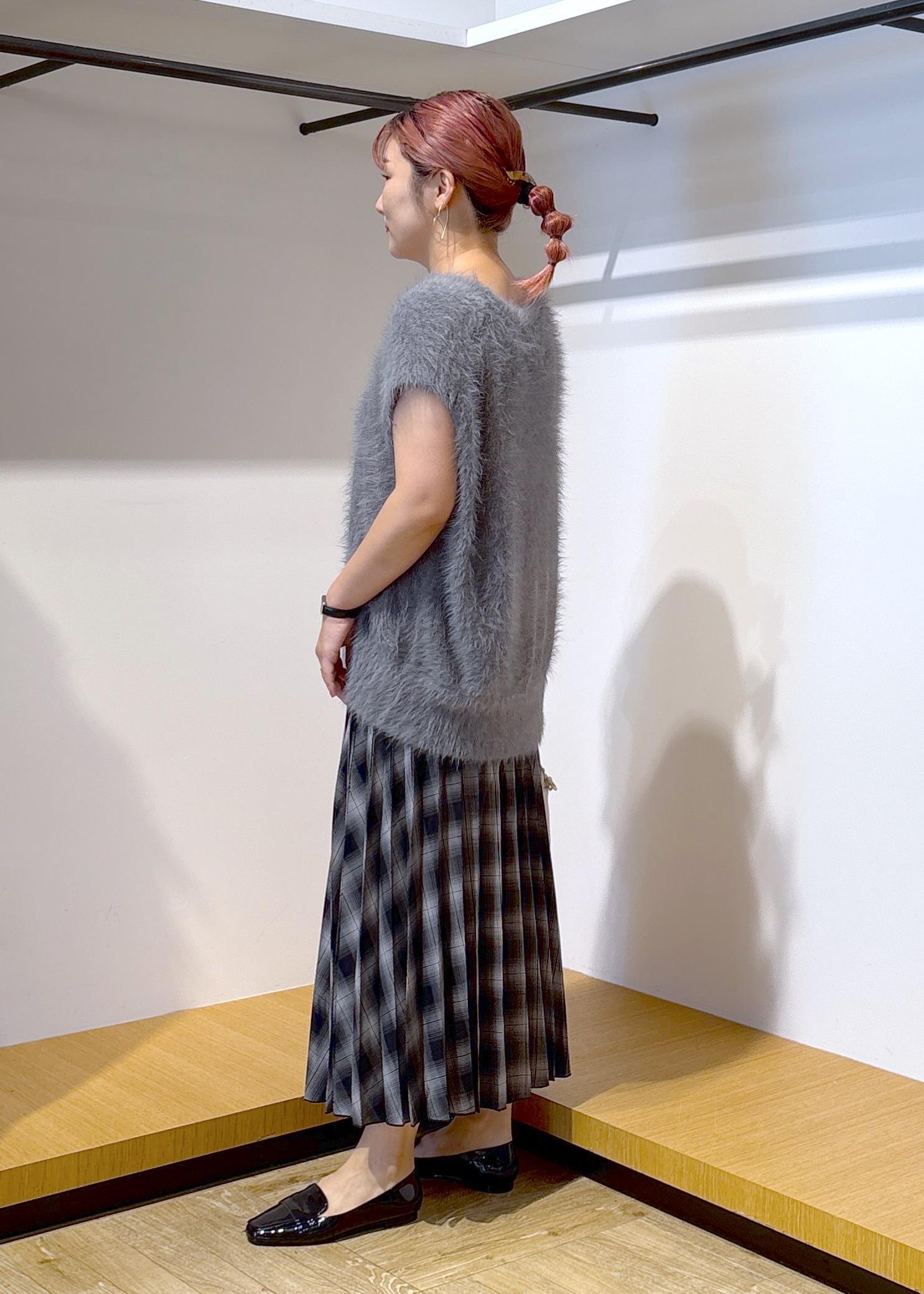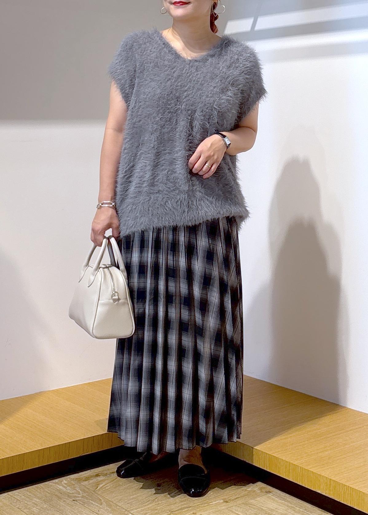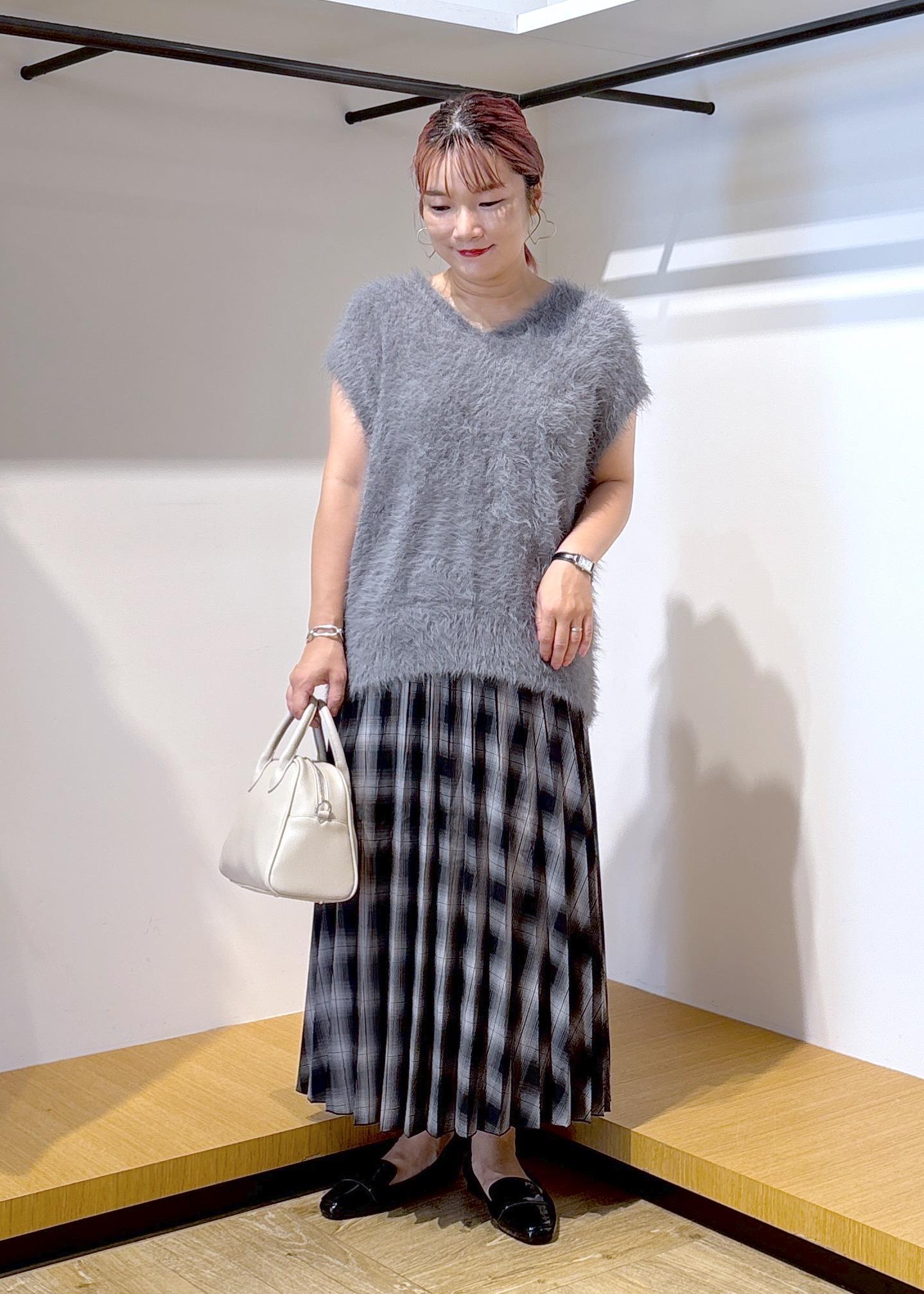 まだまだ暑い日が続いていますが、少し秋を意識してファーベストをチェック柄スカートで合わせました☆