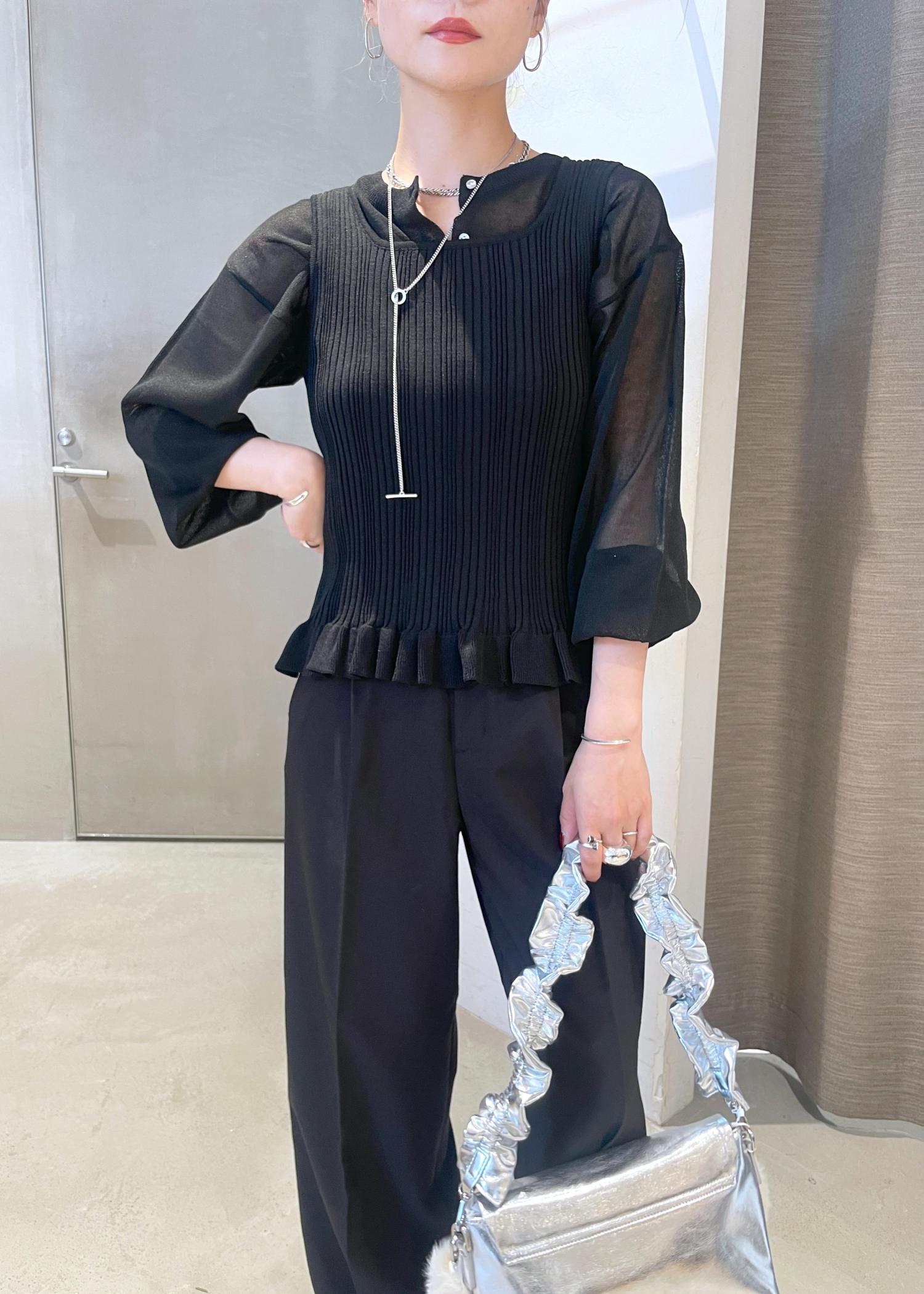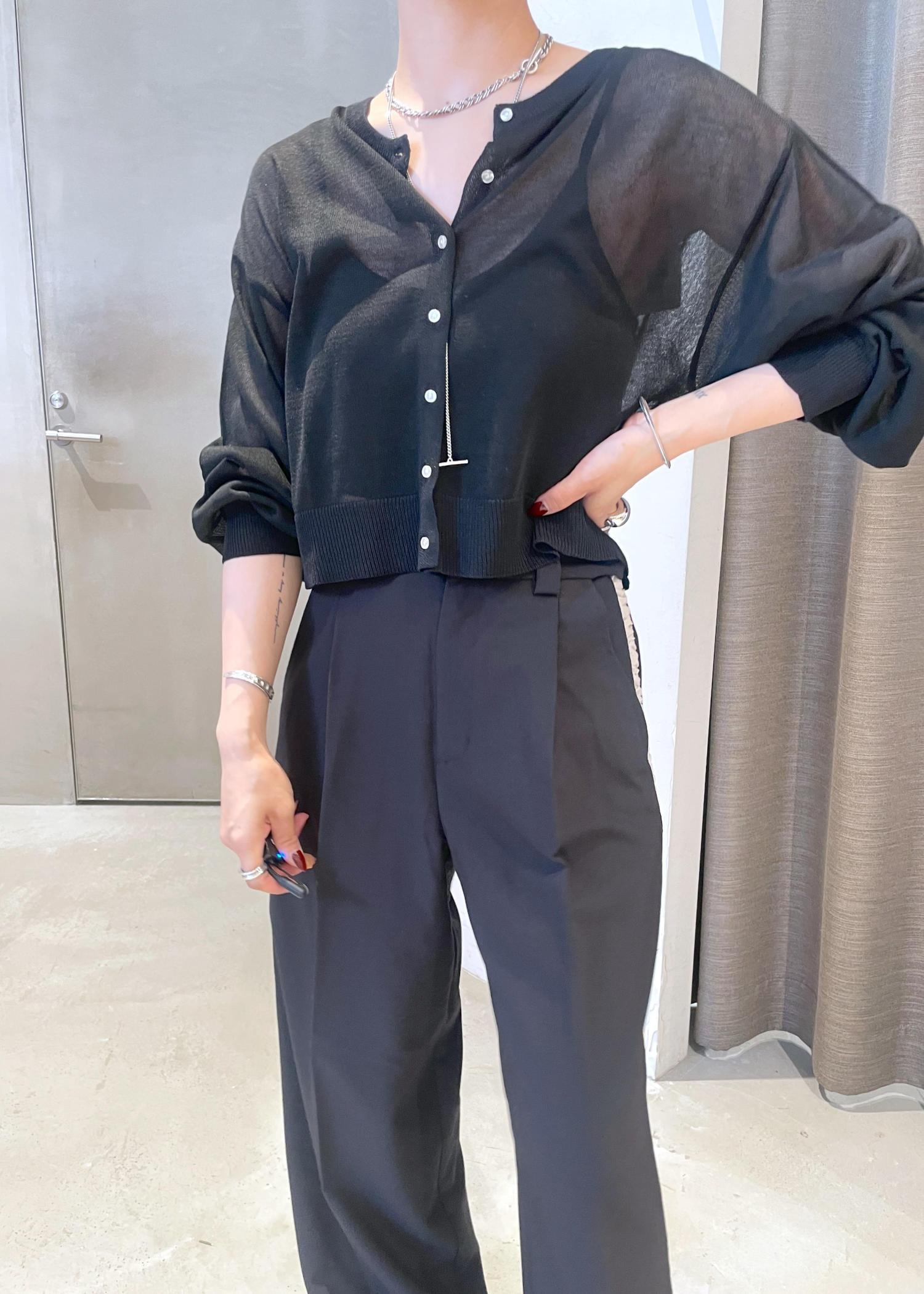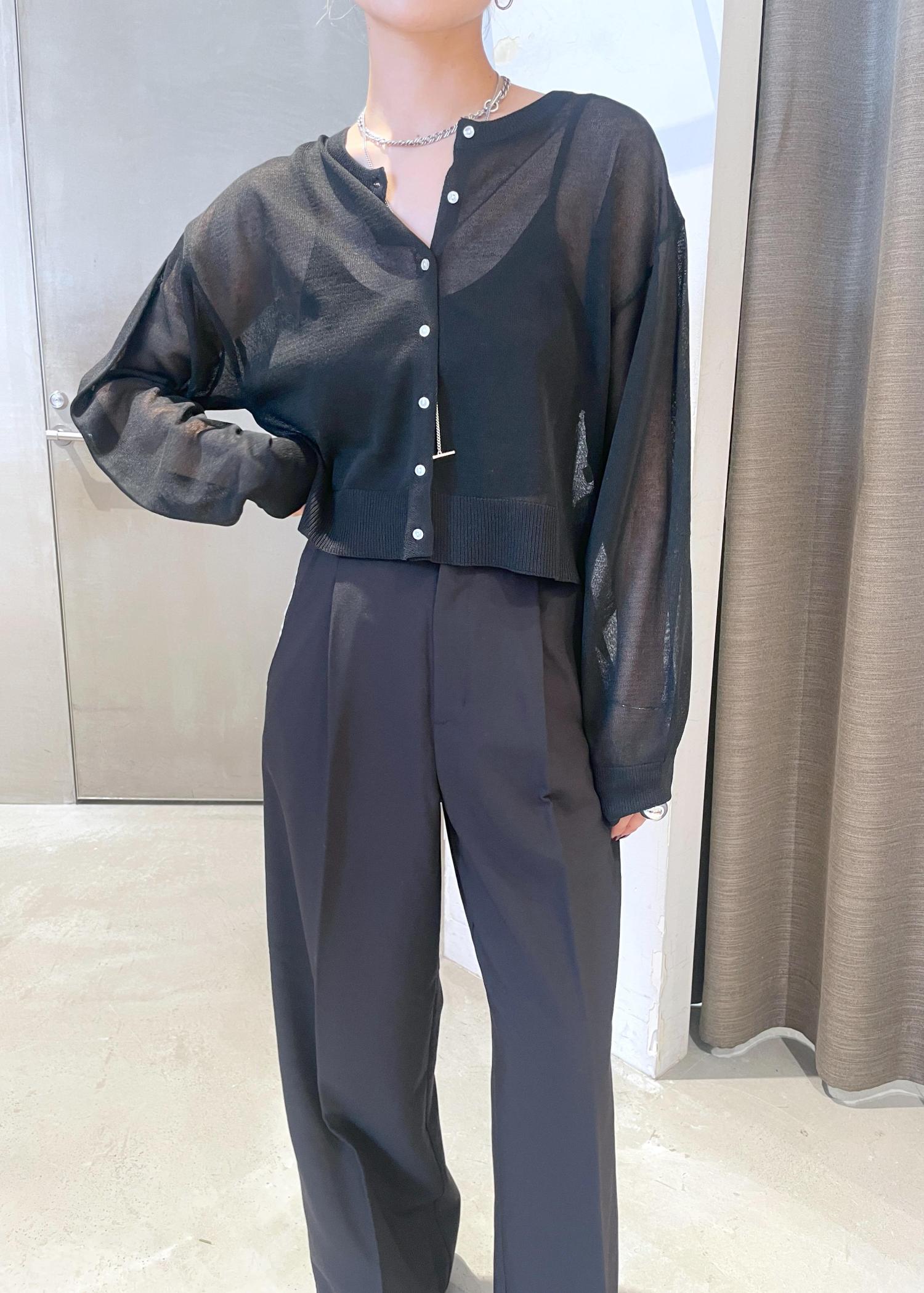 LE CERCLE par ropéフリルアンサンブルブラック系 / F¥9,790レビューさらっと程よいシアー感でアンサンブルにお召しいただけるカーディガン。