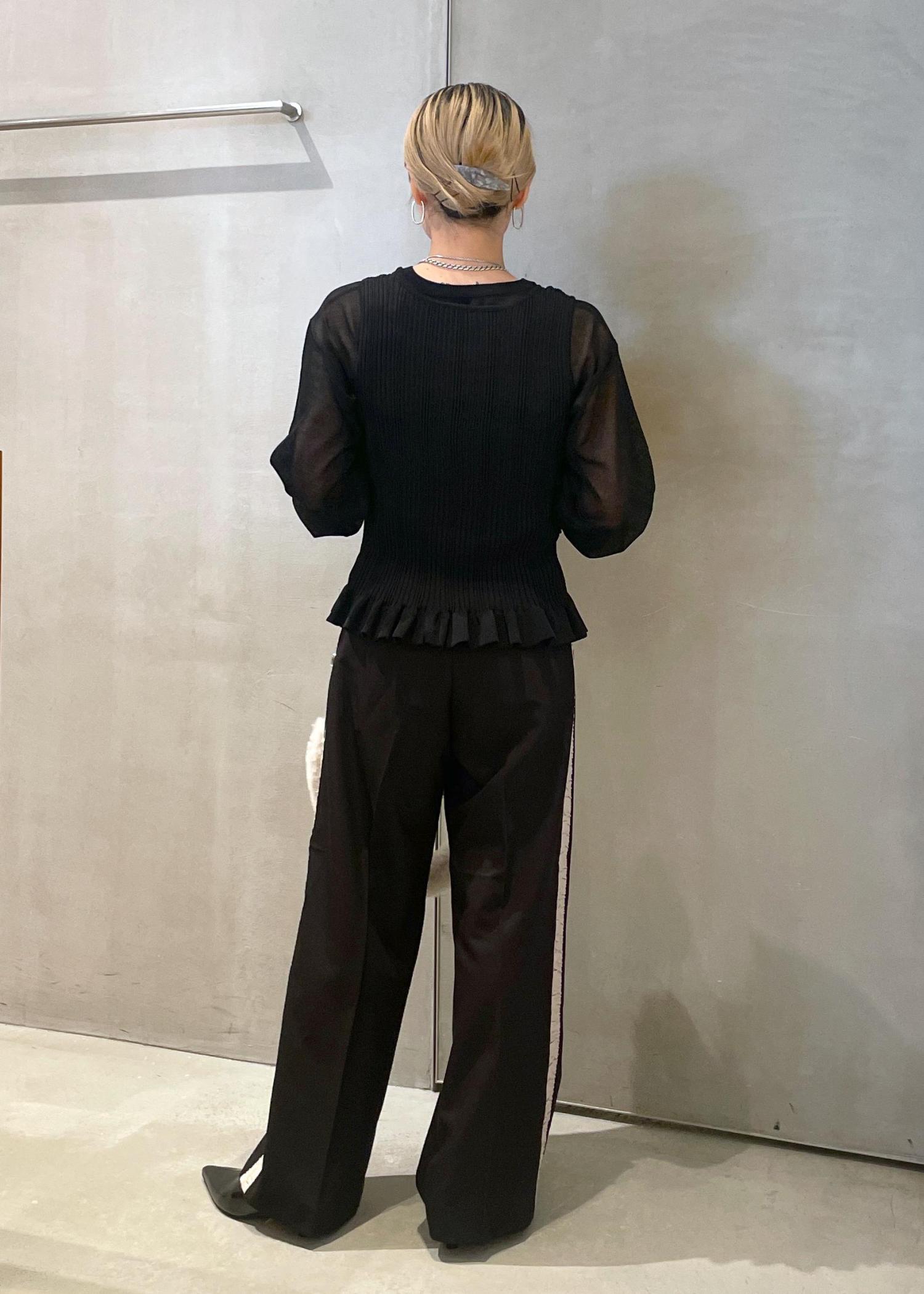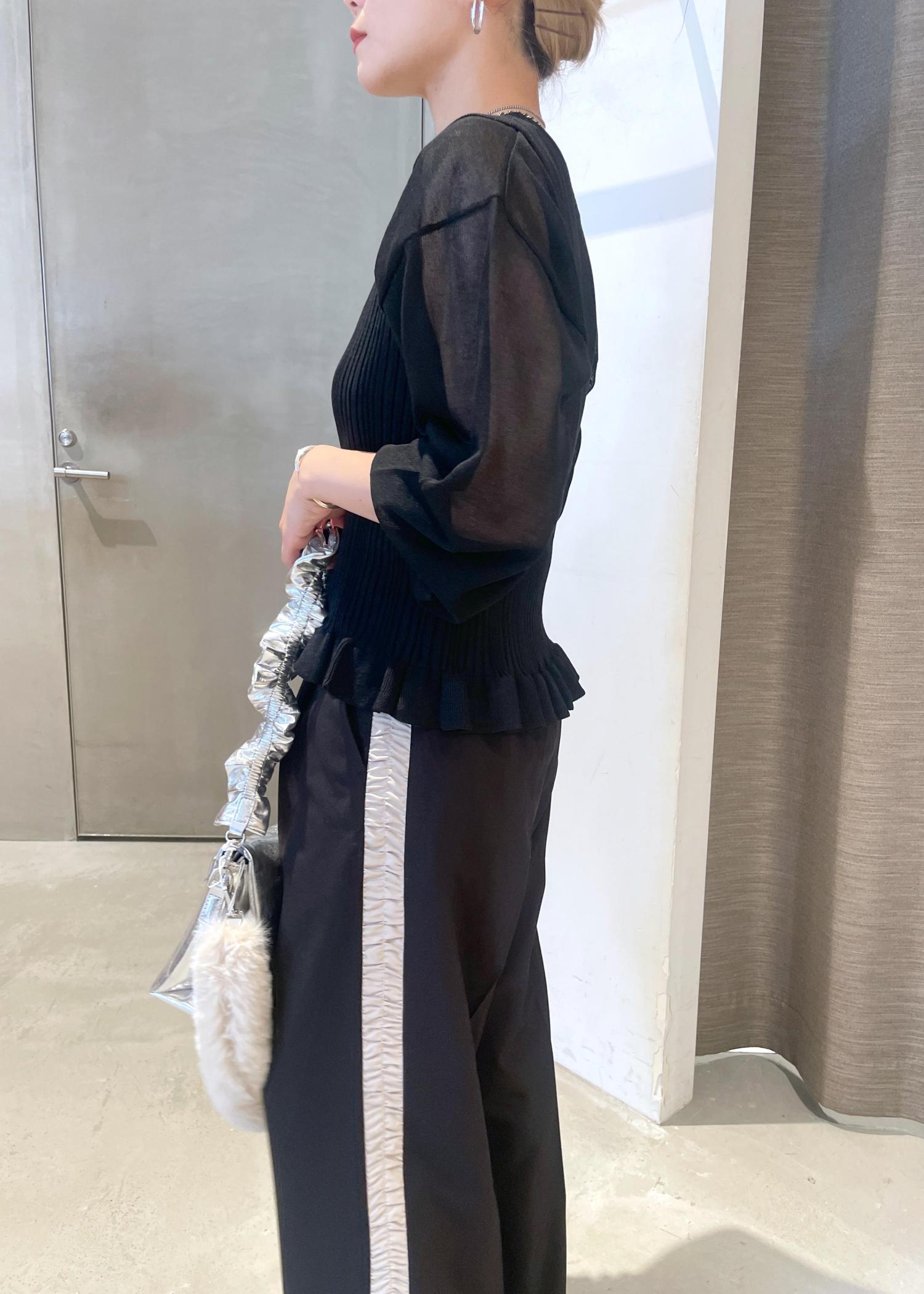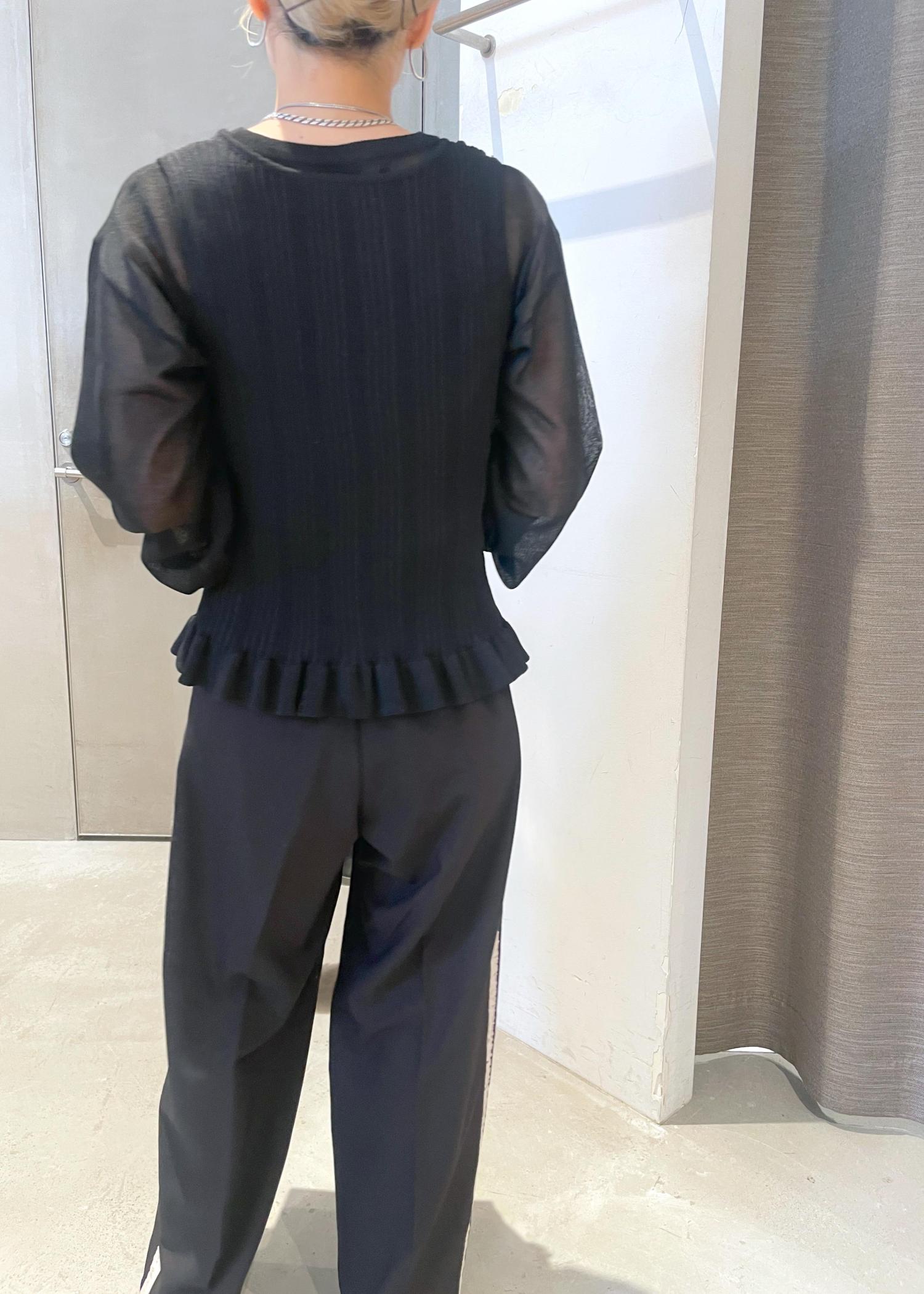 LE CERCLE par ropéフリルアンサンブルブラック系 / F¥9,790レビューさらっと程よいシアー感でアンサンブルにお召しいただけるカーディガン。
