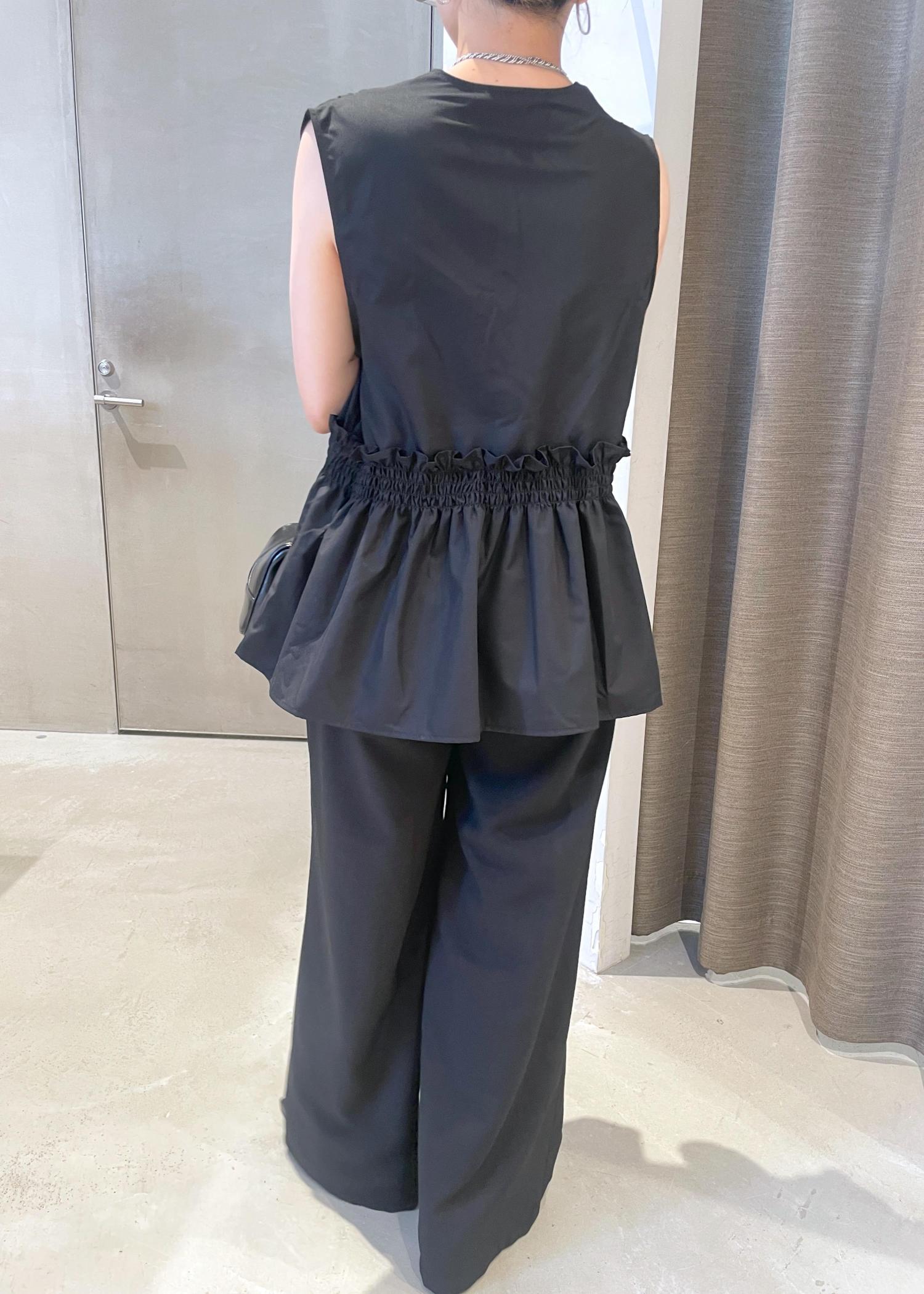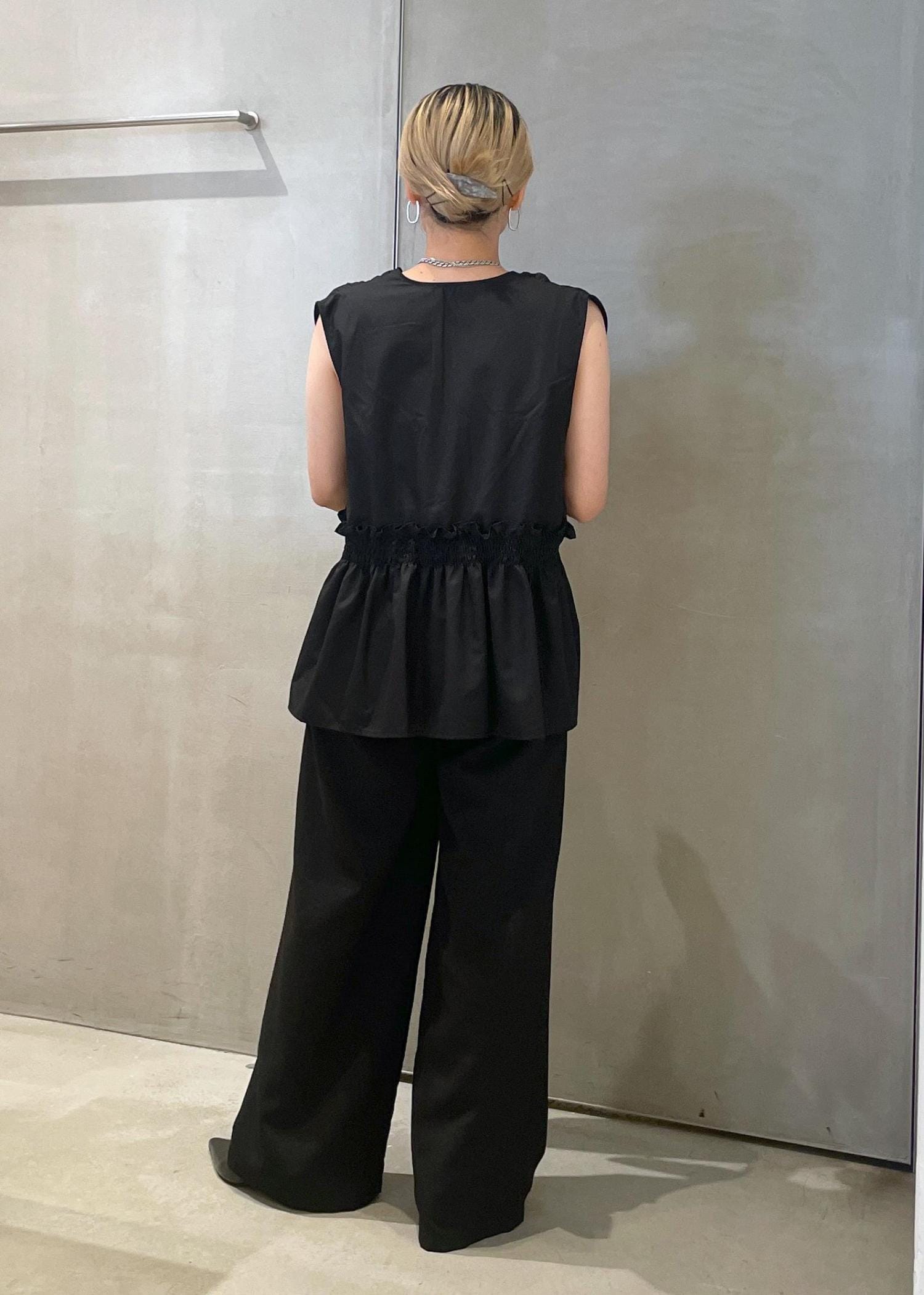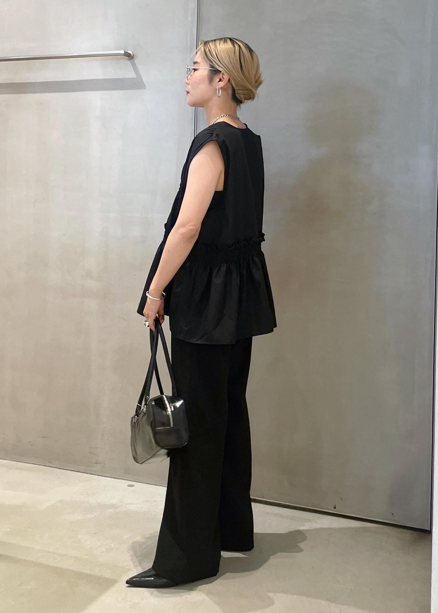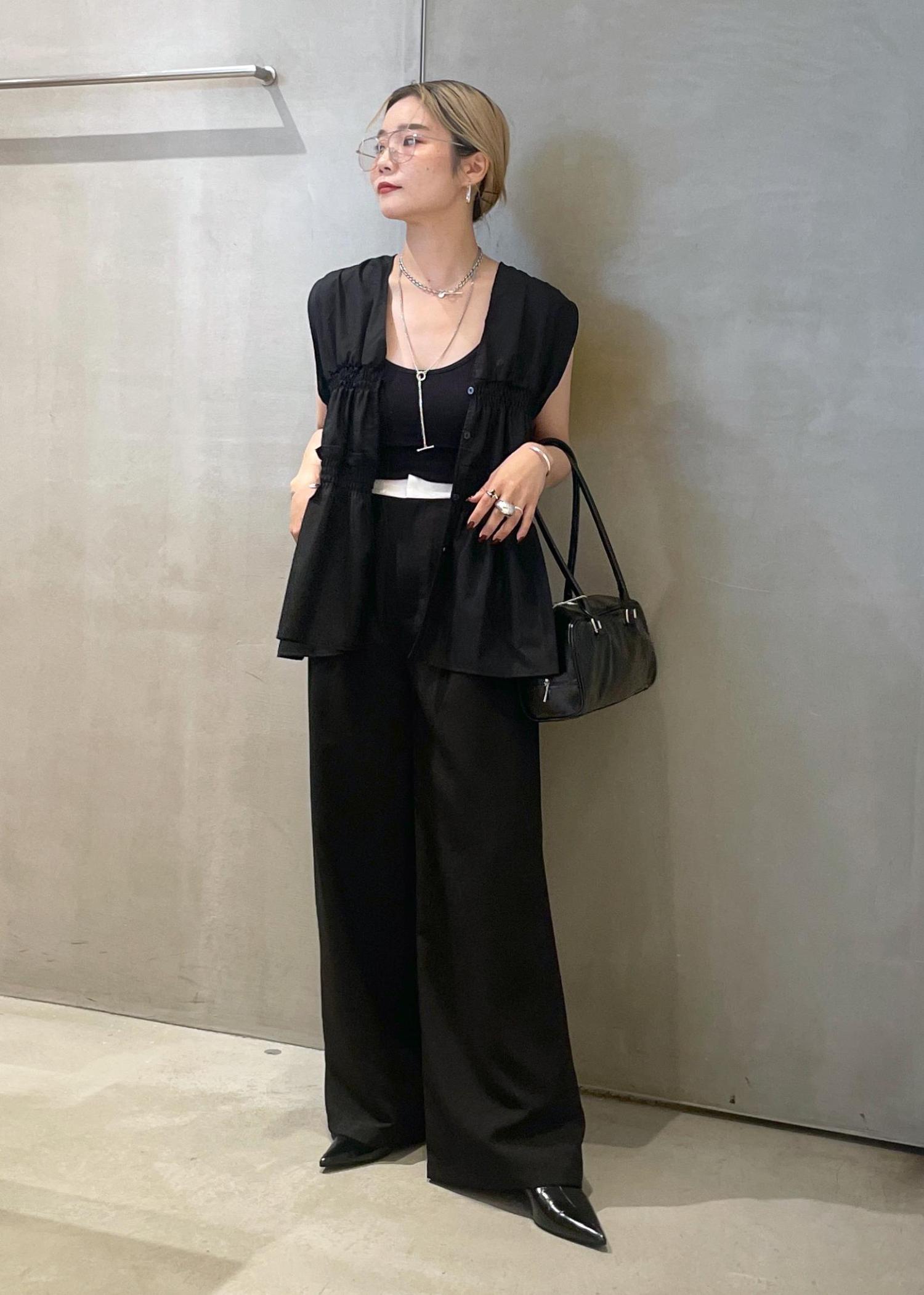 SALEアイテムのスラックスで透け感や軽さをなくして少し重めな印象とのMIXで夏らしさ半減な組み合わせです!