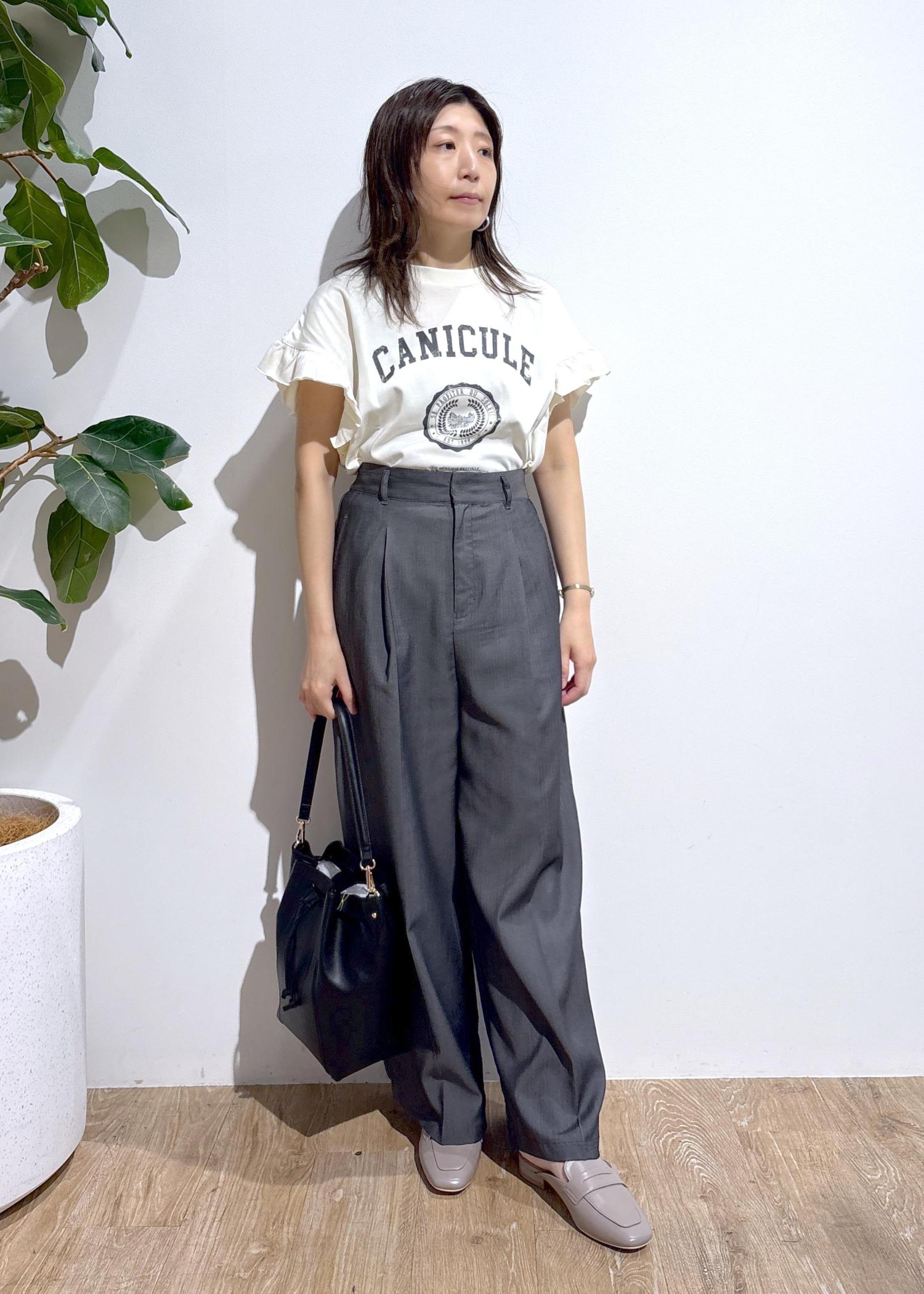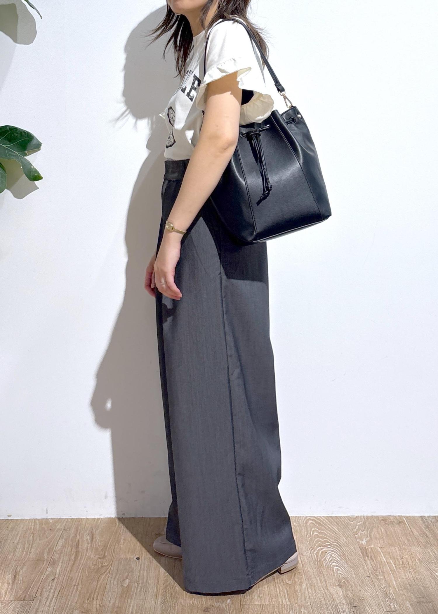 落ち感のあるシャンブレー素材のワイドパンツを合わせて、大人可愛いコーデにしてみました♩