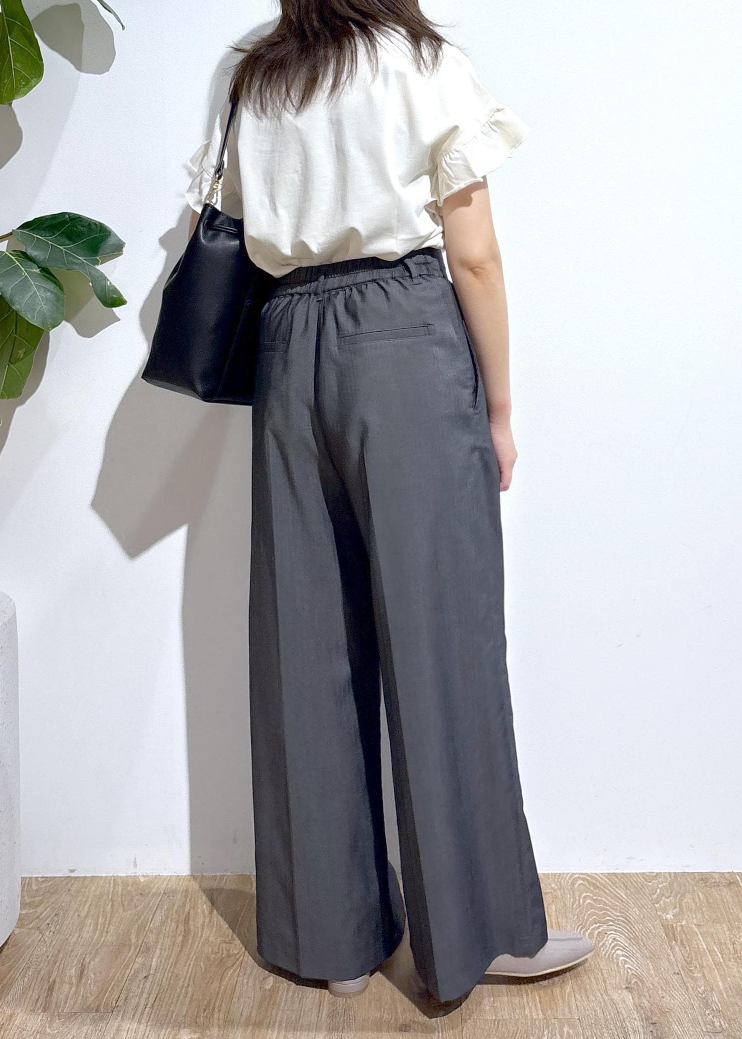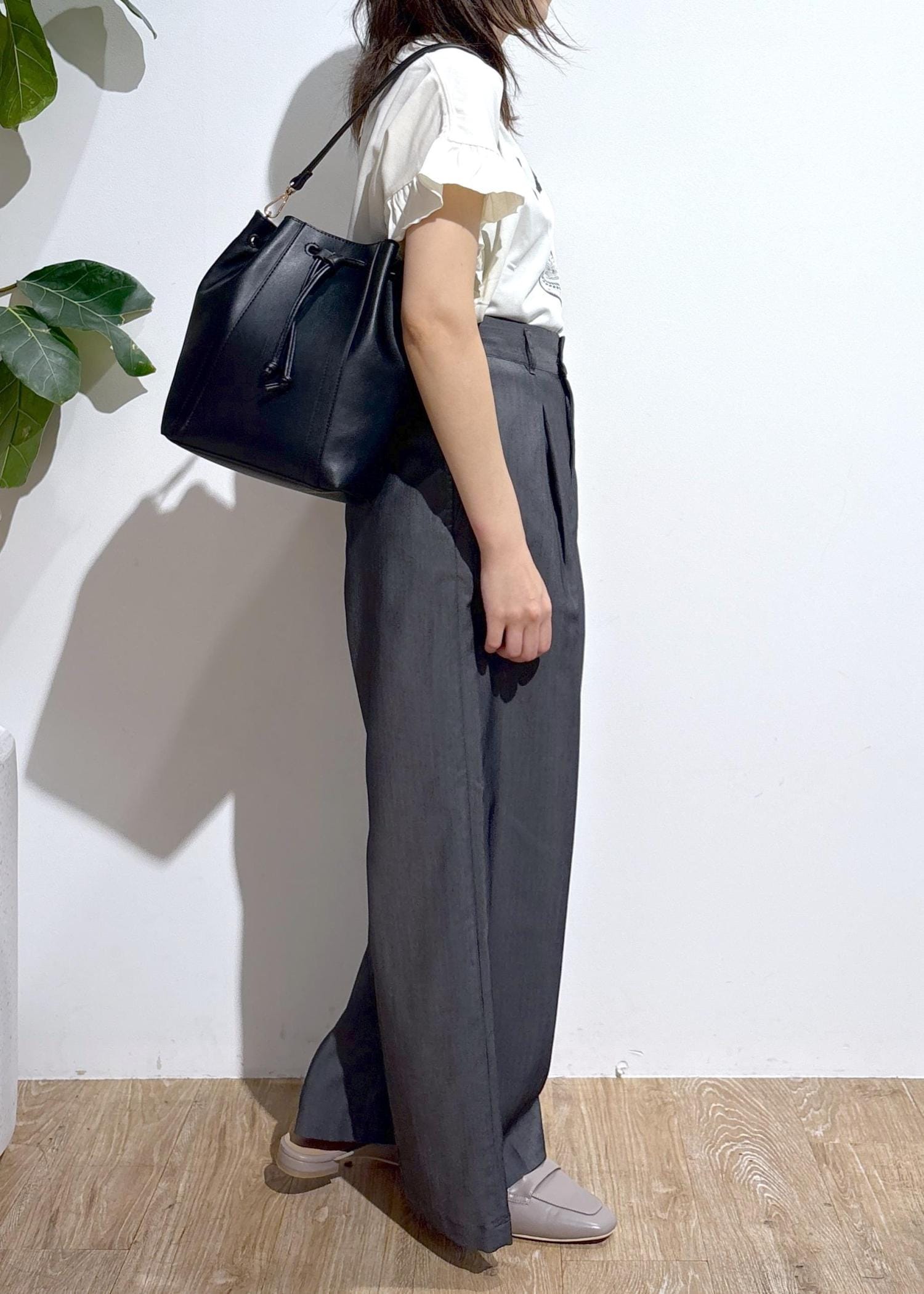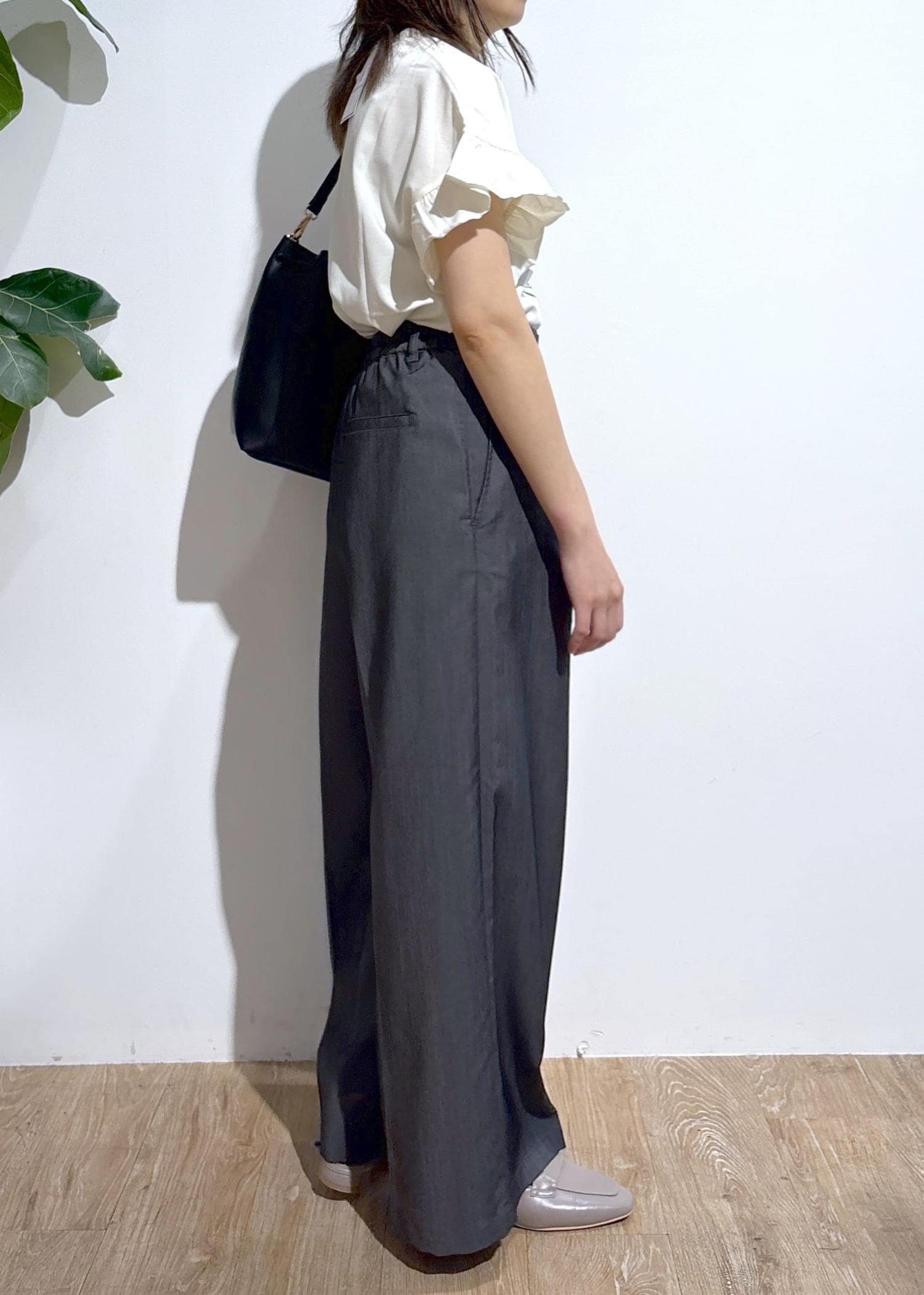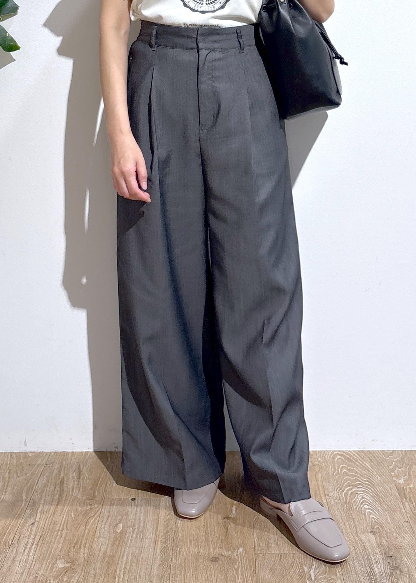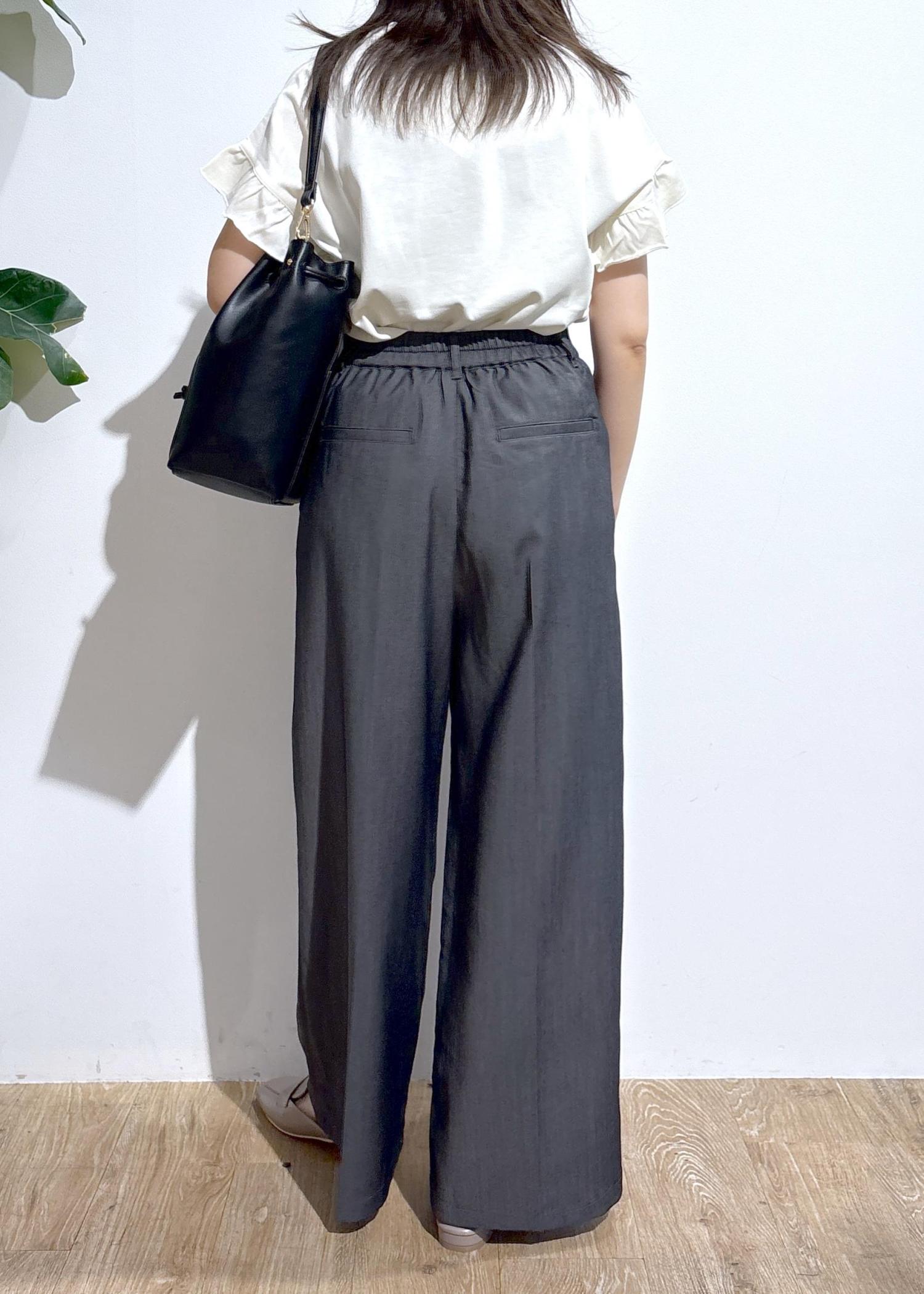 ワイドシルエットですが、タックラインが入っているので大きく見えずすっきり◎